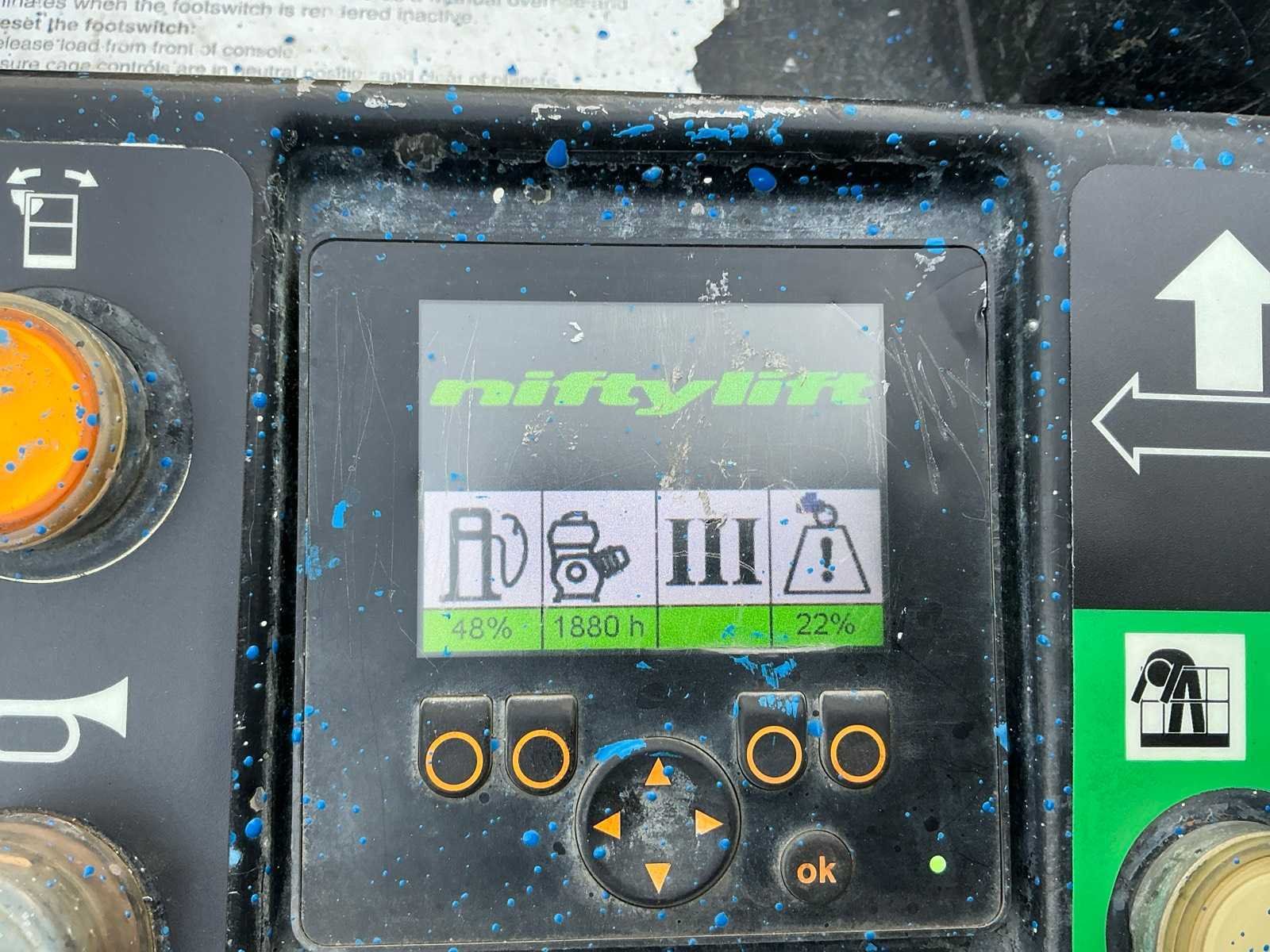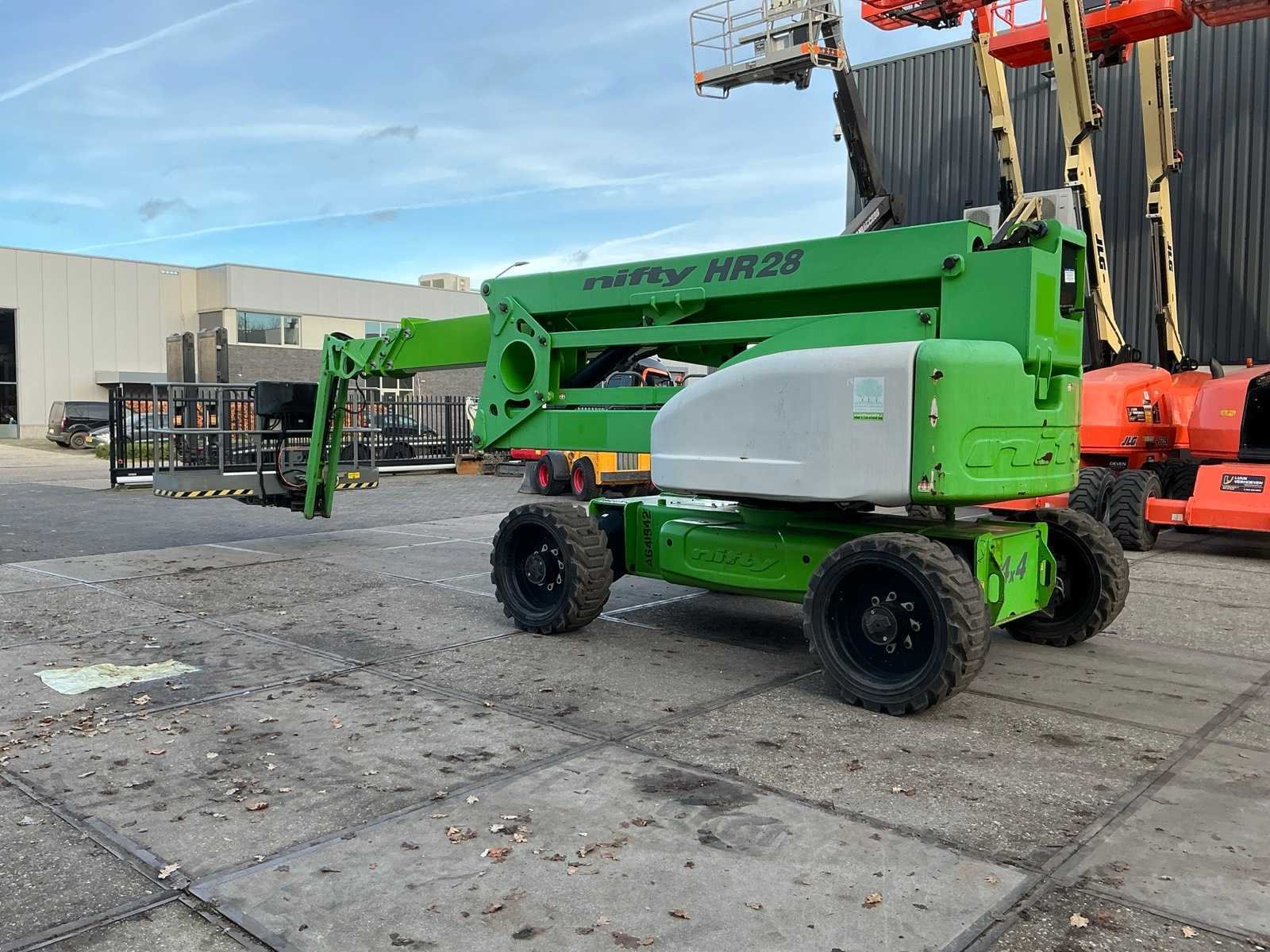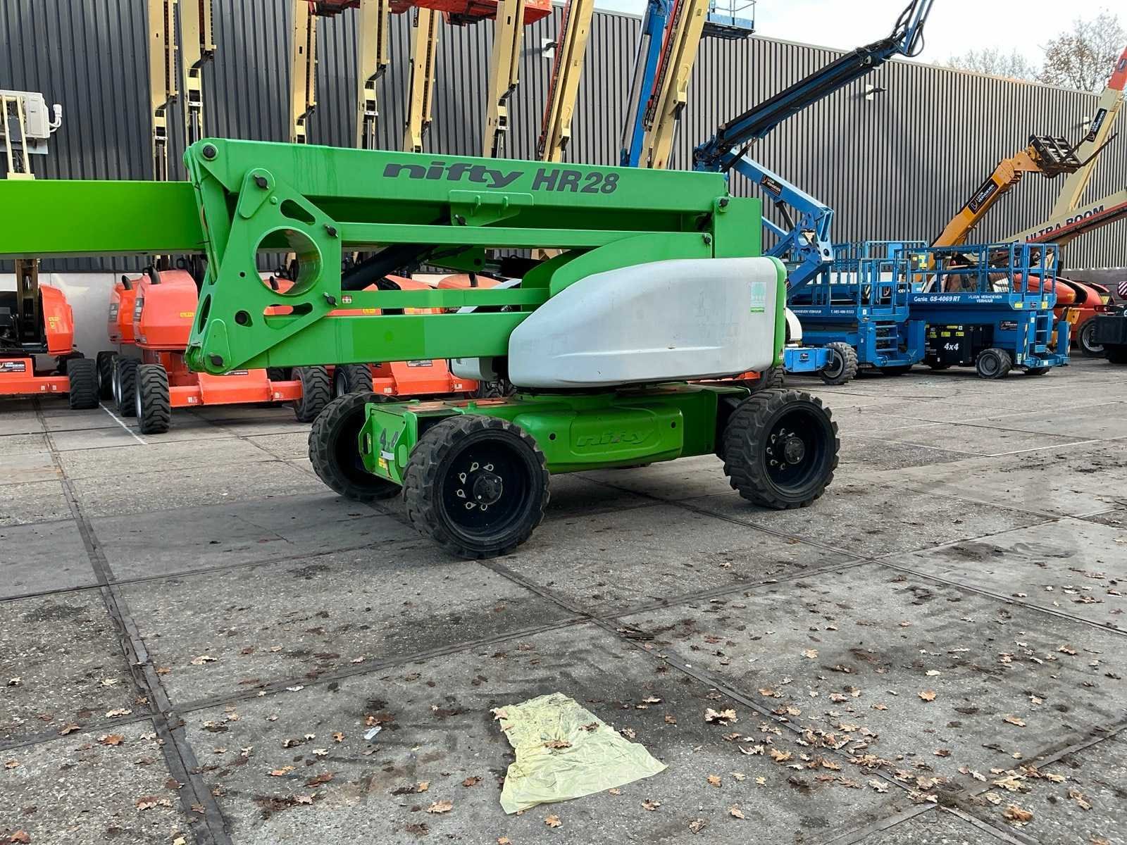 4WD, asstabilisatie, roterende opbouw, roterende werkbak, 110V stekker, 3 delige telescoop mast, max hefhoogte 28000mm, max hefvermogen 280kg Nee Merk: Nifty Type: HR28 Bouwjaar: 2015 Serienummer: 28986 Diesel: true Motorvermogen (kW): 48kW Knikarm hoogwerker: true Werkhoogte: 28000mm Horizontale rijkwijdte: 19000mm Plateau afm. l: 900mm Plateau afm. b: 2400mm Platform capaciteit: 280kg Afgelezen urenstand: 1879 Eigen gewicht: 14660kg Totale afmeting L: 9300mm Totale afmeting Breedte: 2500mm Totale afmeting Hoogte: 2700mm