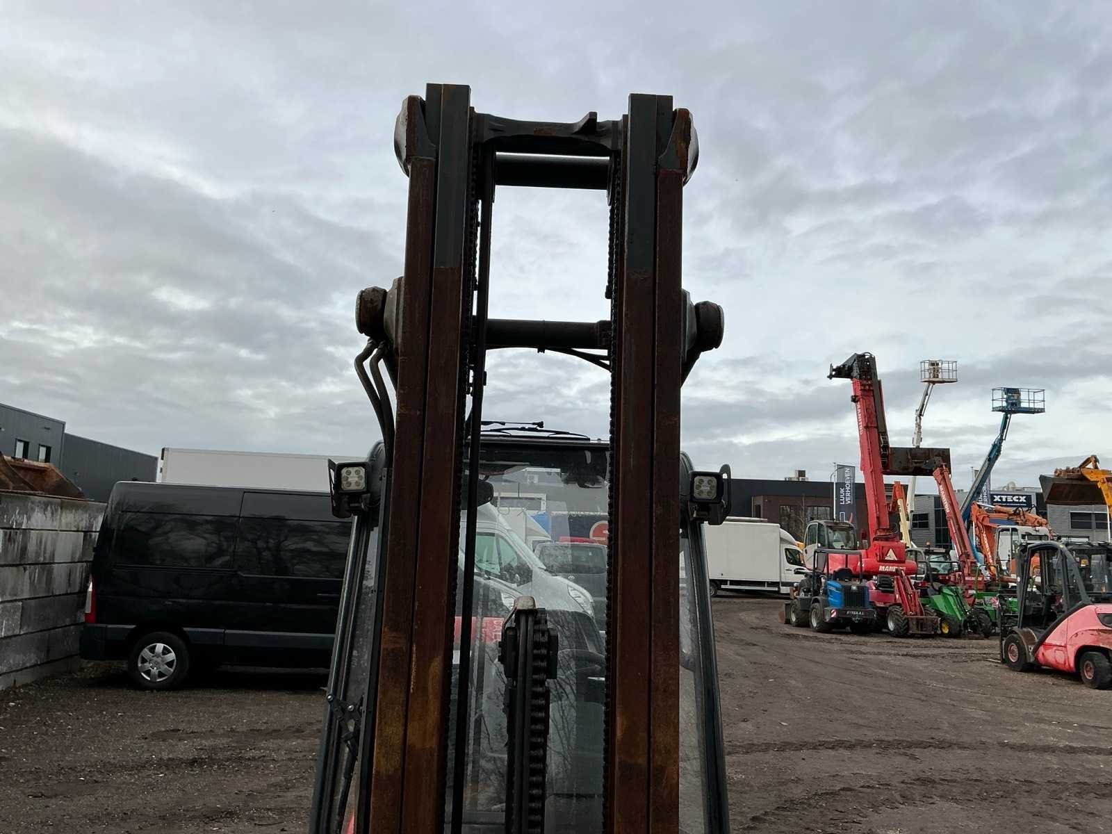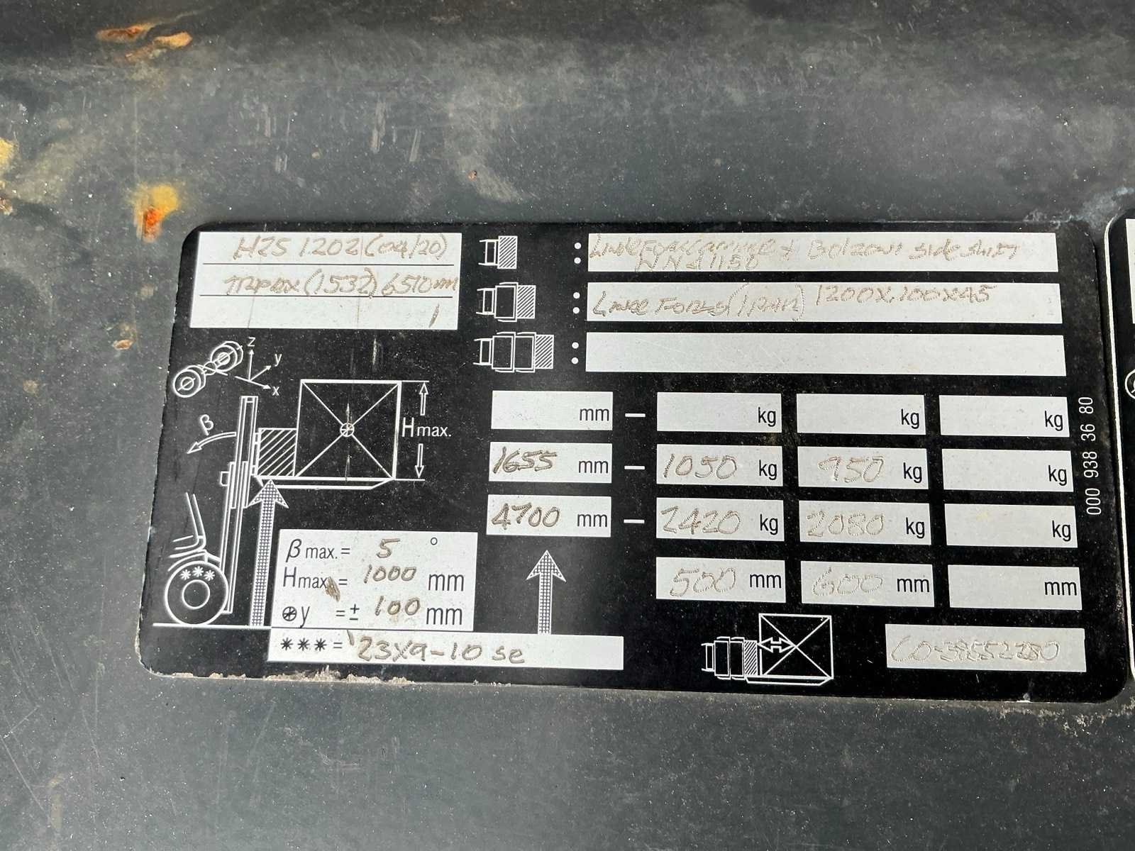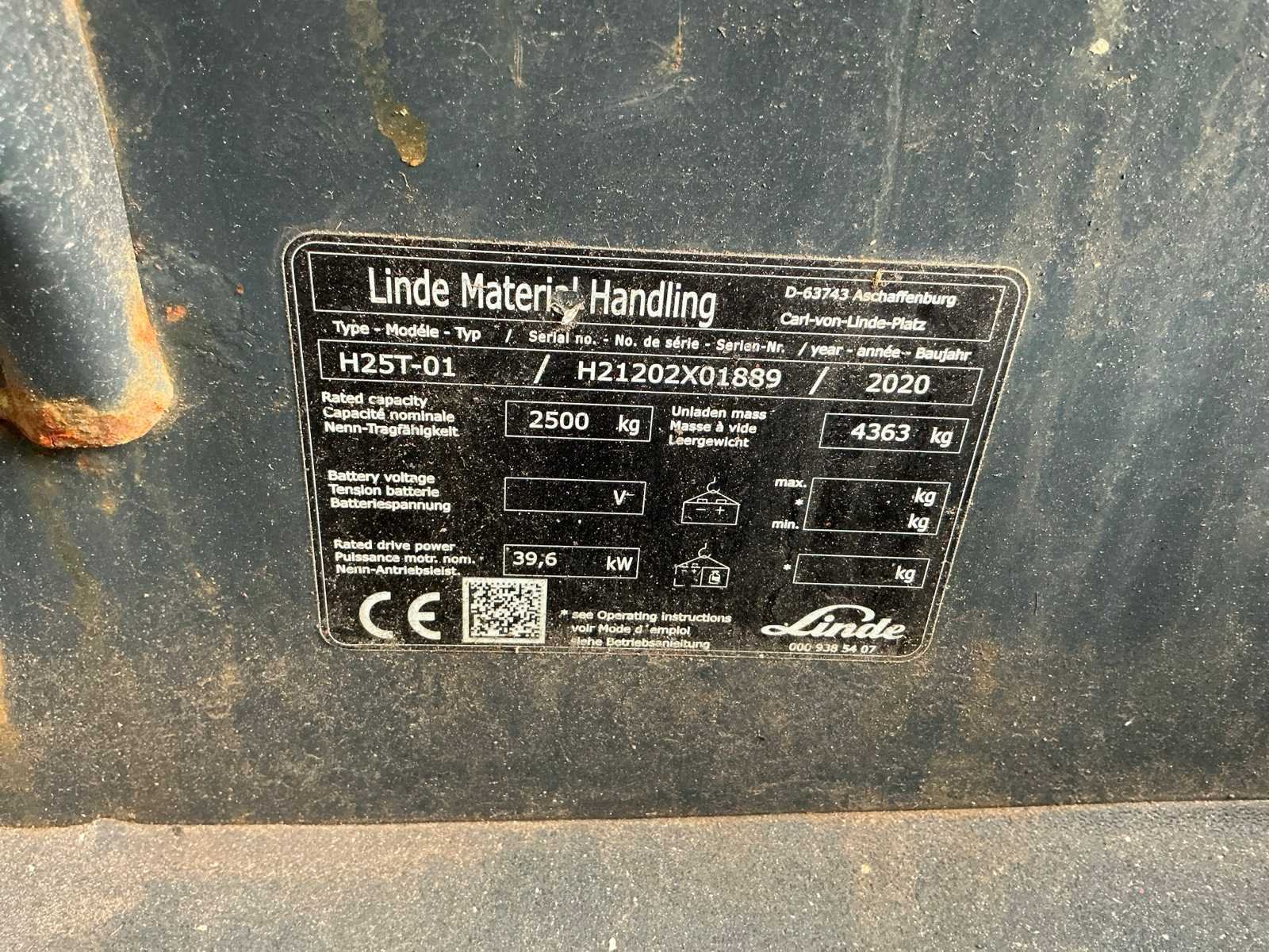 Lepels 1200mm, lepelbord 1180mm, Side shift, free lift, triplex mast, trekoog met pin 25mm, led werkverlichting, max hefhoogte 4700mm, max hefvermogen 2500kg, No Merk: Linde Type: H25T-01 Bouwjaar: 2020 Serienummer: H21202X01889 Brandstof: LPG Mast: Triple Soort band: Volrubber banden Aantal wielen: 4 Afgelezen urenstand: 3879 Free-lift: true Side-shift: true Triple mast: true Eigen gewicht: 4363kg Hefvermogen: 2500kg Lepellengte: 1200mm Max. hefhoogte: 4700mm Vol rubber banden: true Minimale doorrijhoogte: 2900mm Totale afmeting L: 3950mm Totale afmeting Breedte: 1180mm Totale afmeting Hoogte: 2850mm