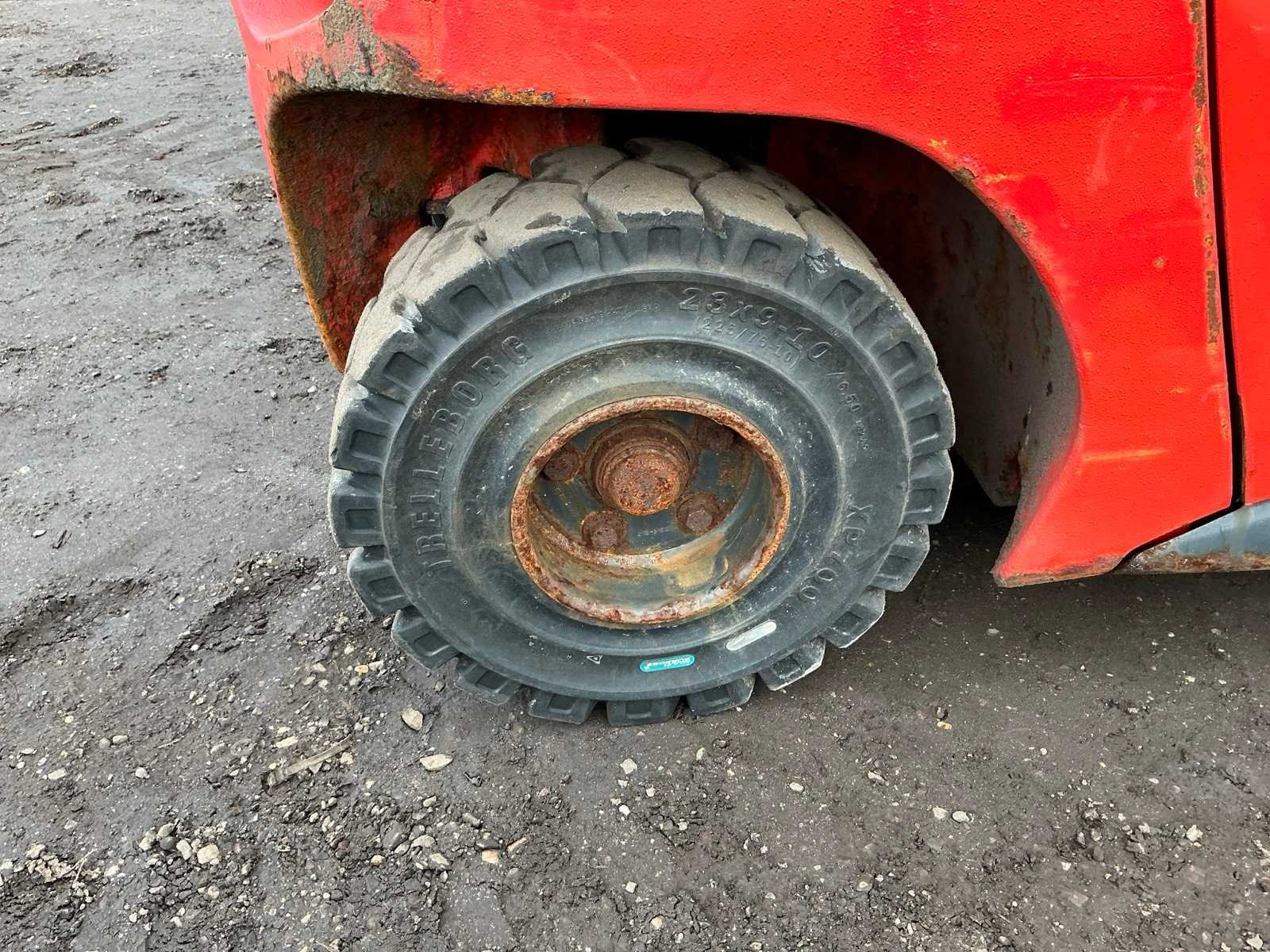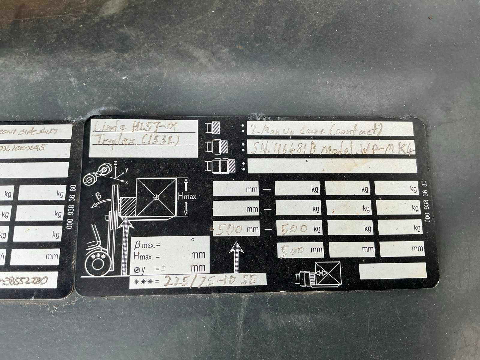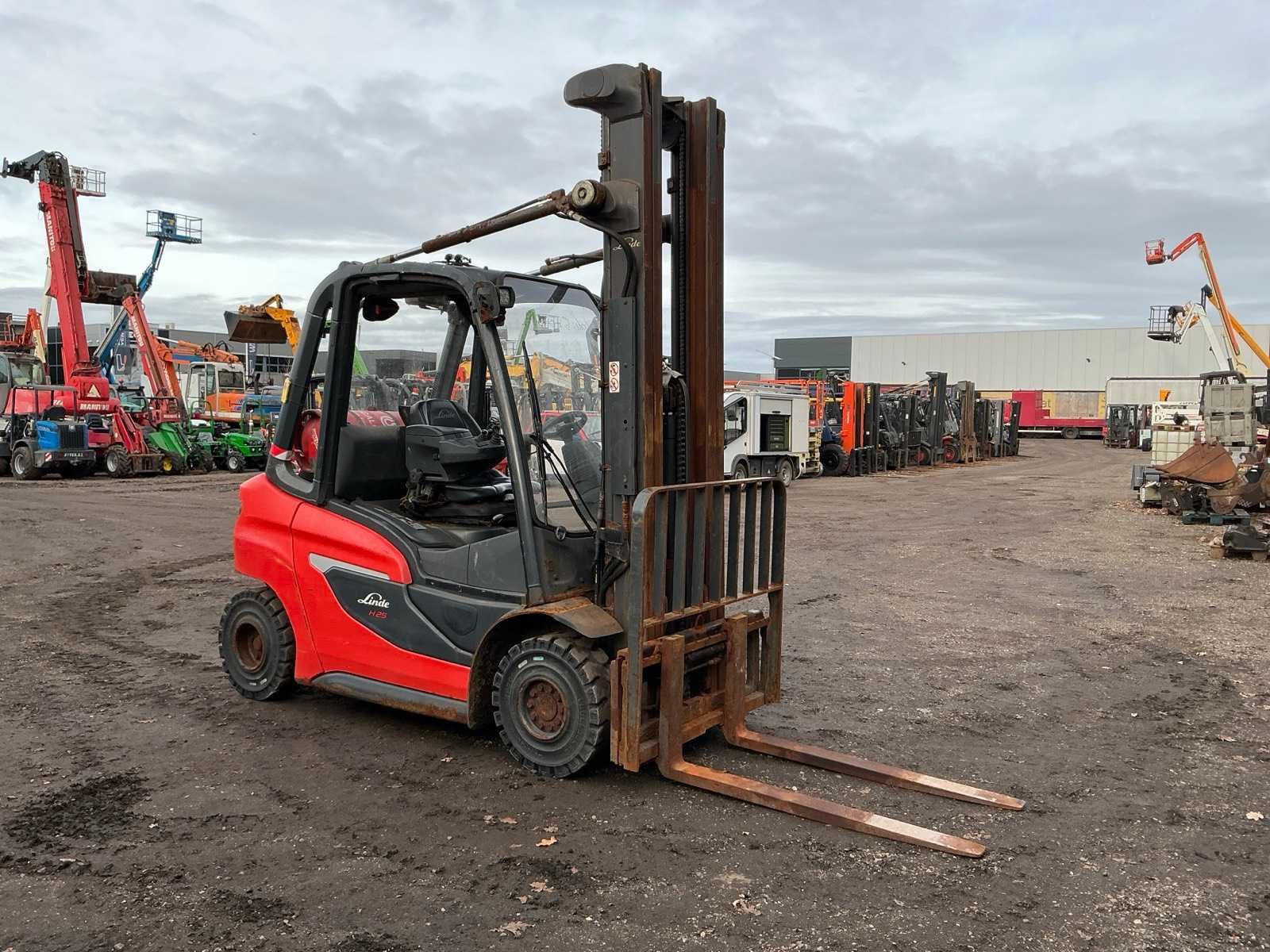Lepels 1200mm, lepelbord 1180mm, Side shift, free lift, triplex mast, trekoog met pin 25mm, led werkverlichting, max hefhoogte 4700mm, max hefvermogen 2500kg, No Merk: Linde Type: H25T-01 Bouwjaar: 2020 Serienummer: H21202X01889 Brandstof: LPG Mast: Triple Soort band: Volrubber banden Aantal wielen: 4 Afgelezen urenstand: 3879 Free-lift: true Side-shift: true Triple mast: true Eigen gewicht: 4363kg Hefvermogen: 2500kg Lepellengte: 1200mm Max. hefhoogte: 4700mm Vol rubber banden: true Minimale doorrijhoogte: 2900mm Totale afmeting L: 3950mm Totale afmeting Breedte: 1180mm Totale afmeting Hoogte: 2850mm