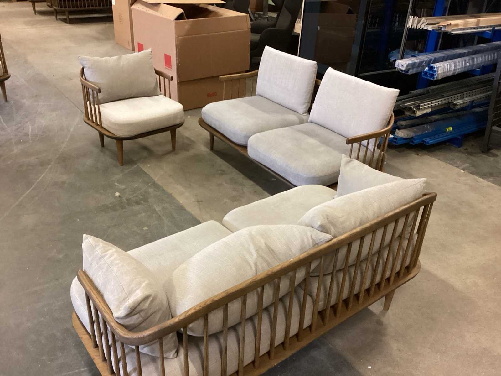 1 stoel - 2 x 2 zitsbank Nee Kussens: true Stoelen: 1 Kleur: Creme hout Diepte: 80 Zithoogte: 48