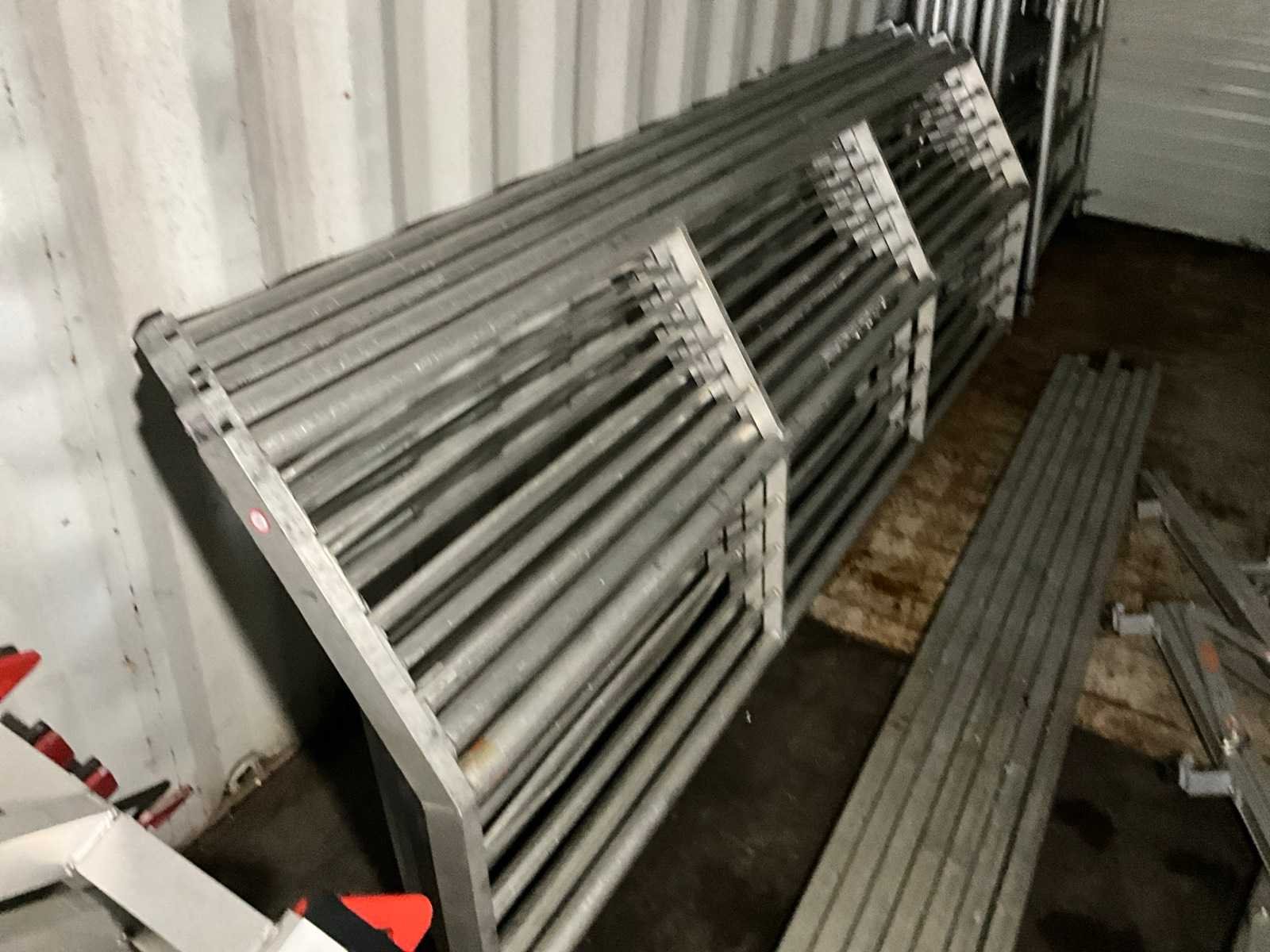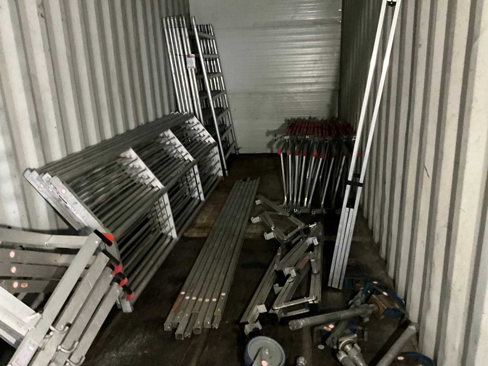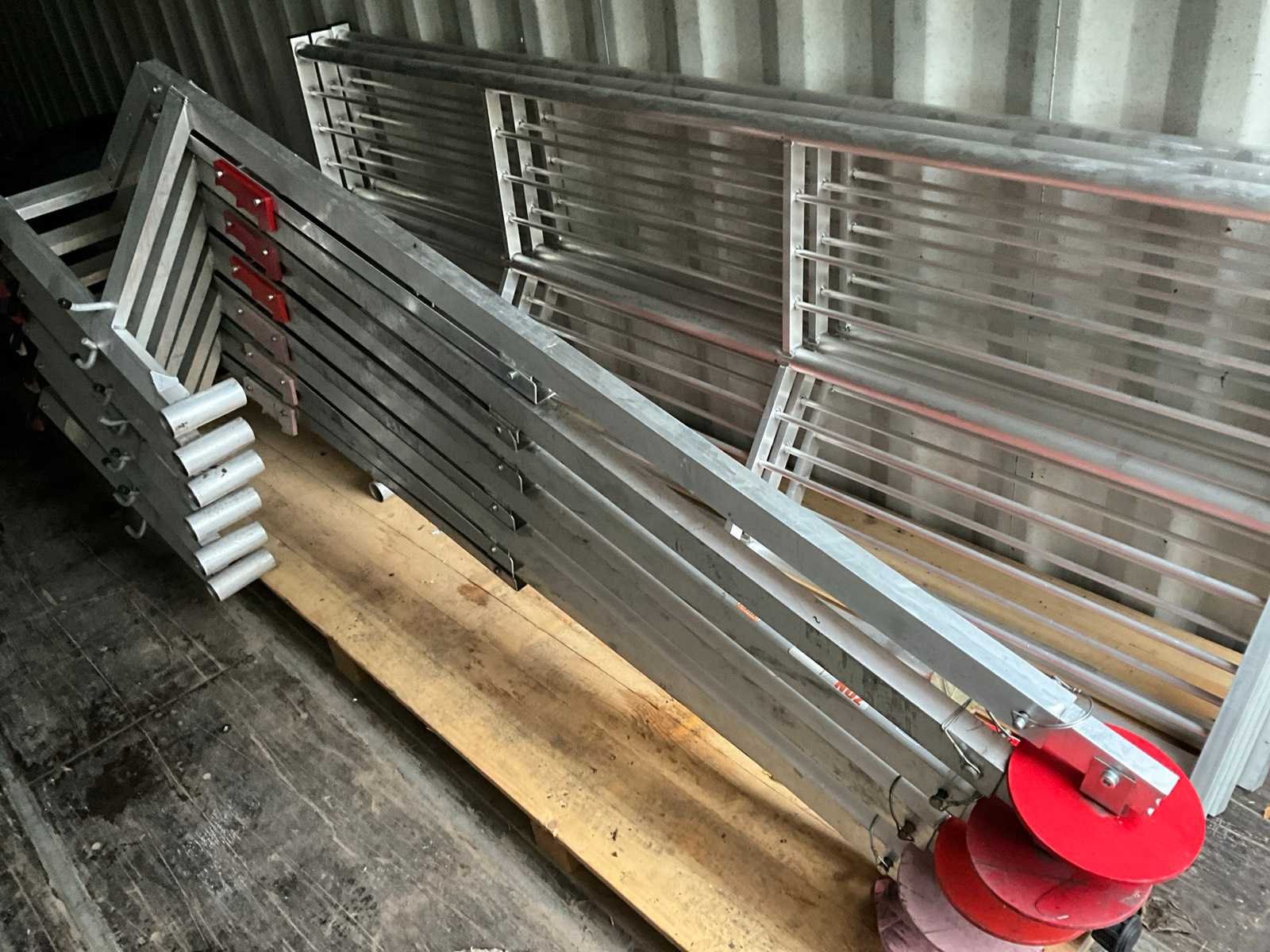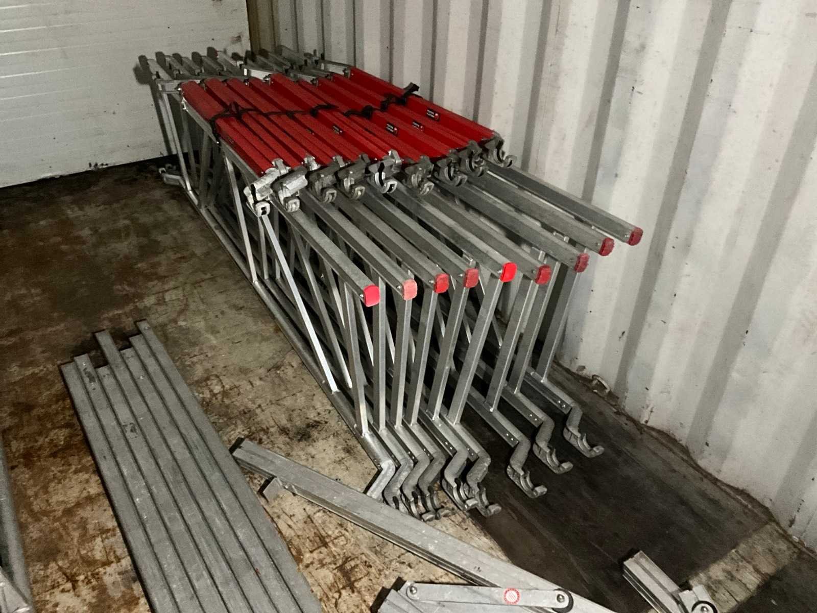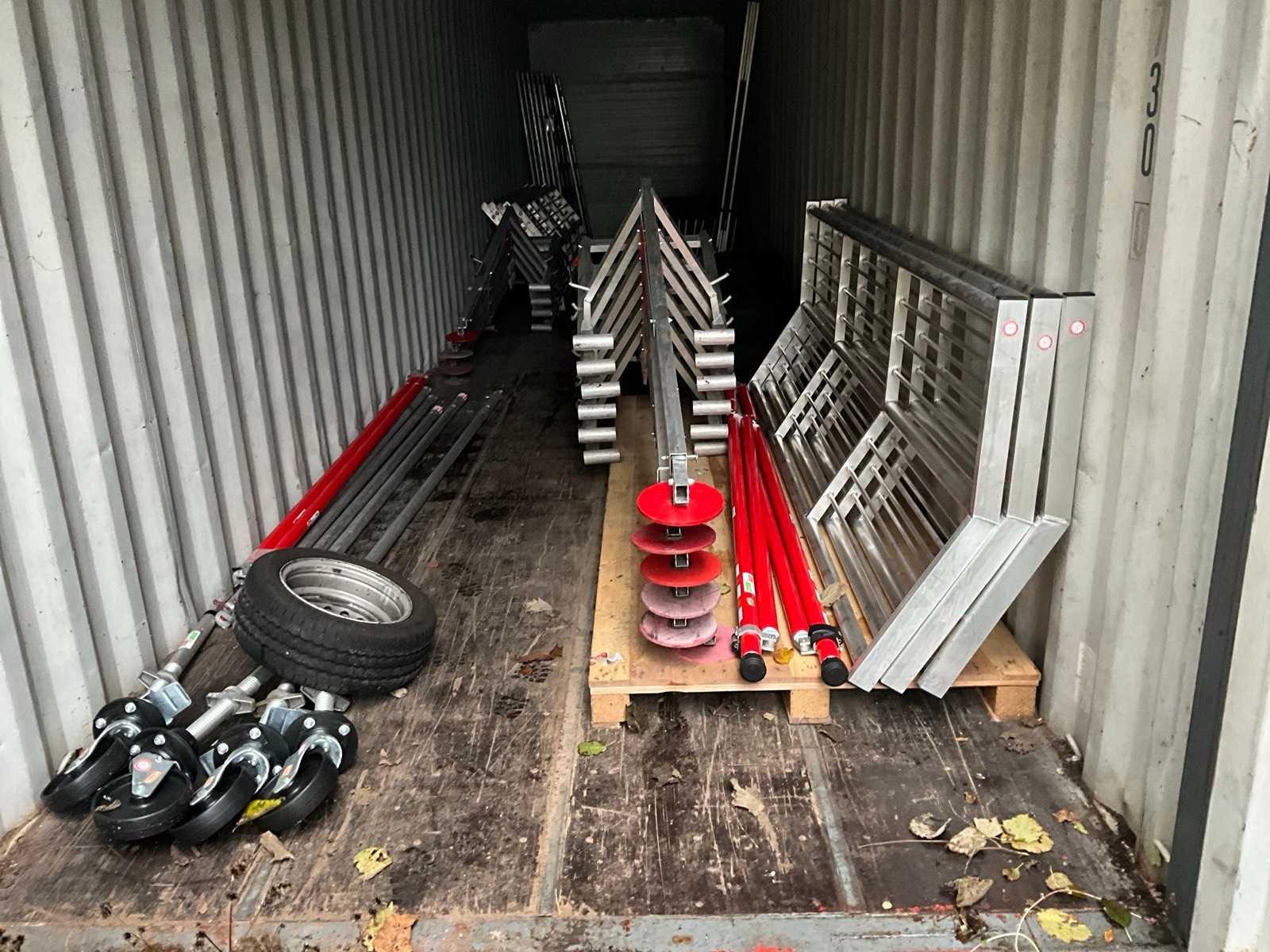 Waaronder: 10x RSS Staander schuindak, 8x Dakrandbeveiliging. Inclusief divers steigermateriaal, aanhanger wielen en divers, 40 ft zeecontainer niet inbegrepen. Nee