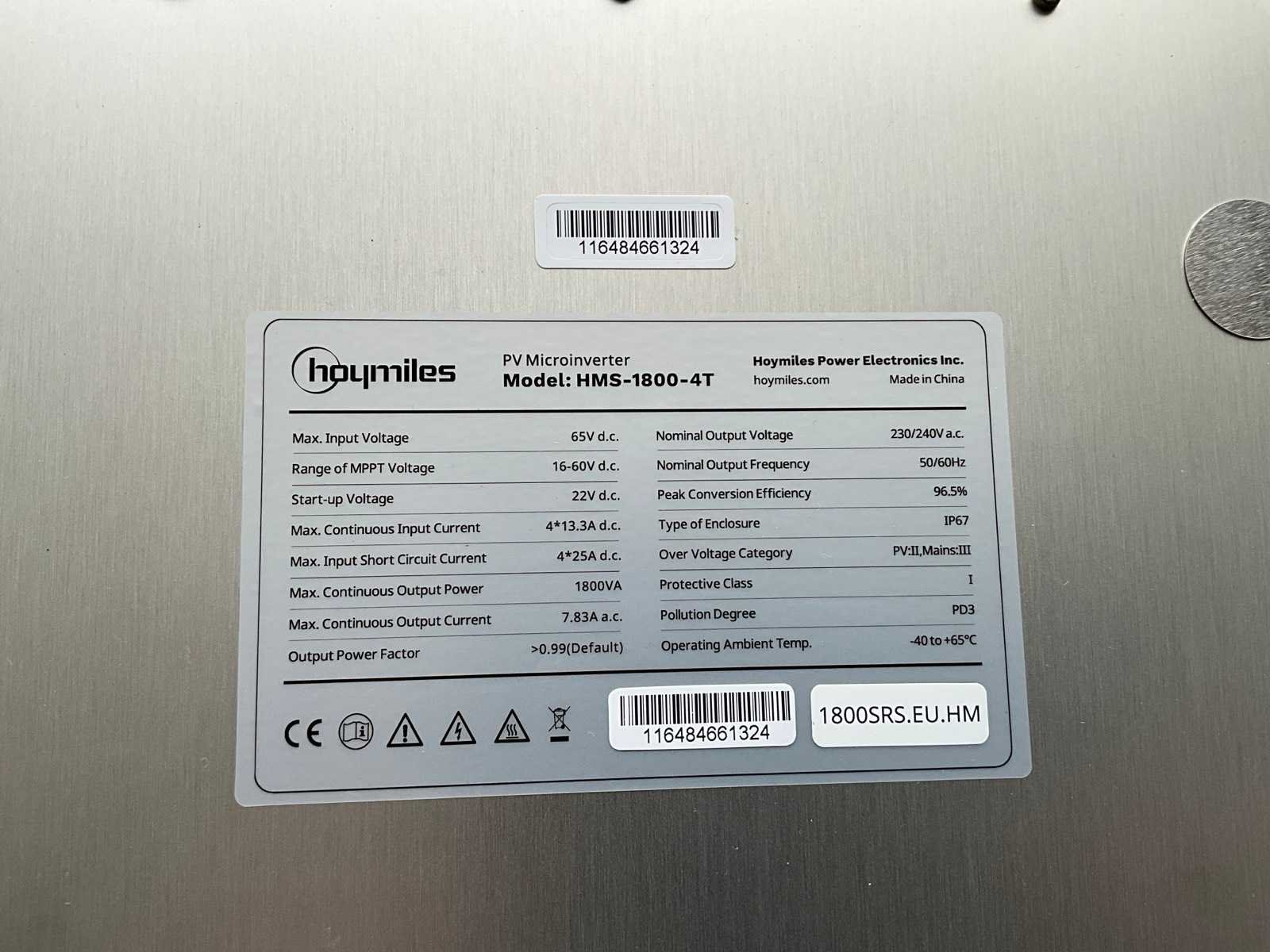Nee Merk: HOYMILES Type: HMS-1800-4T Serienummer: 116484661324