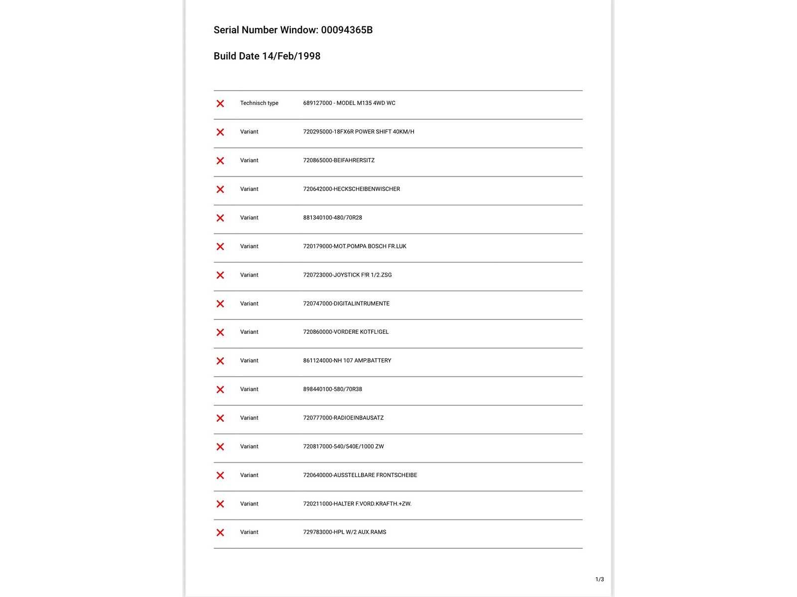 Joystick Nee Merk: New Holland Type: TM135 Bouwjaar: 1998 Serienummer: 00094365B Kenteken: TTD-81-L Motorvermogen (kW): 100.7kW Afgelezen urenstand: 5180 Versnellingsbaktype: Power Shift 18x6 Aantal hydraulische ventielen achter: 4 Bandenmaat voor: 540/65R28 Bandenmaat achter: 650/65R38 Cabine: true Kentekenpapieren compleet?: true Datum eerste toelating: 1998-02-14