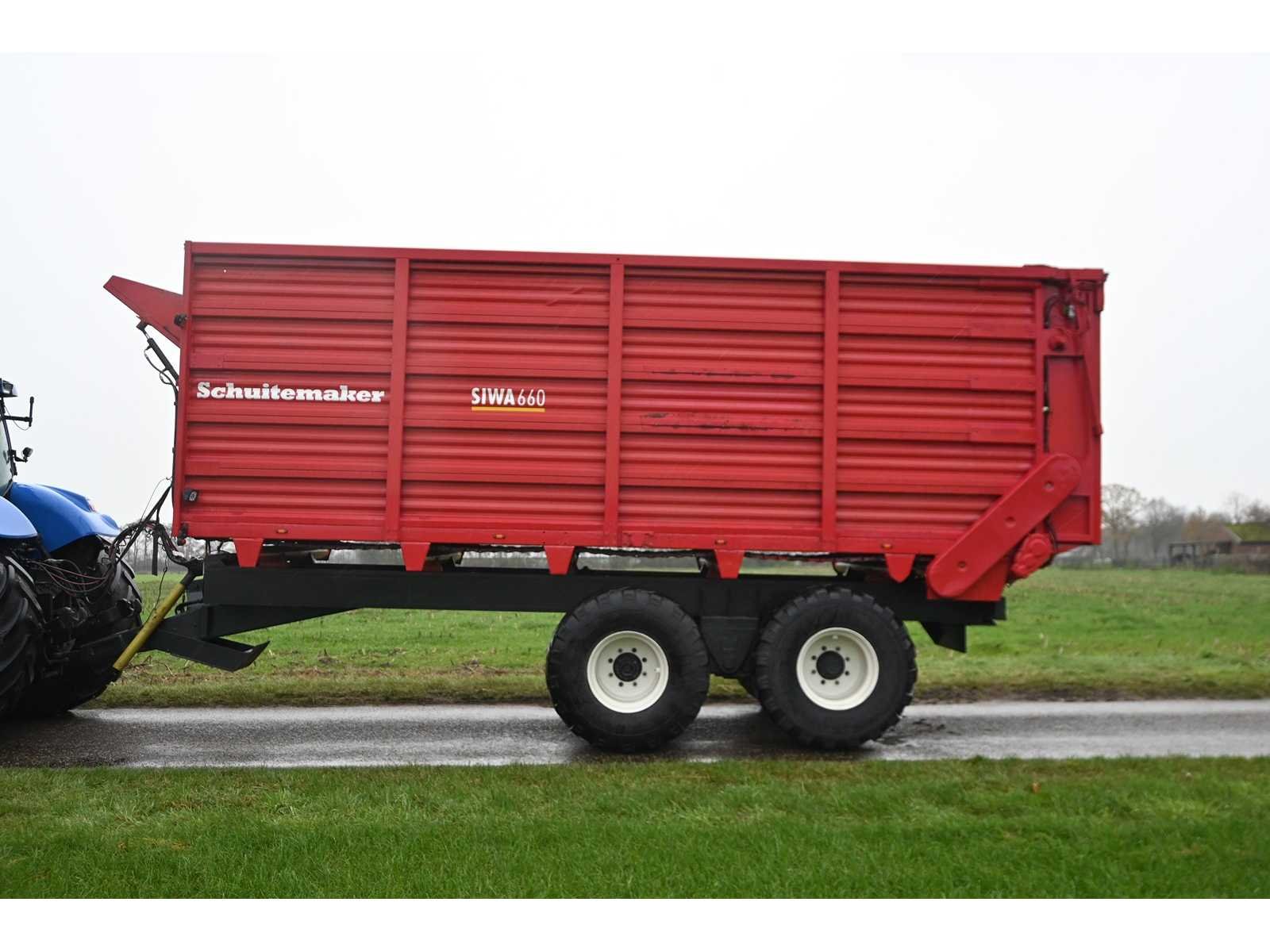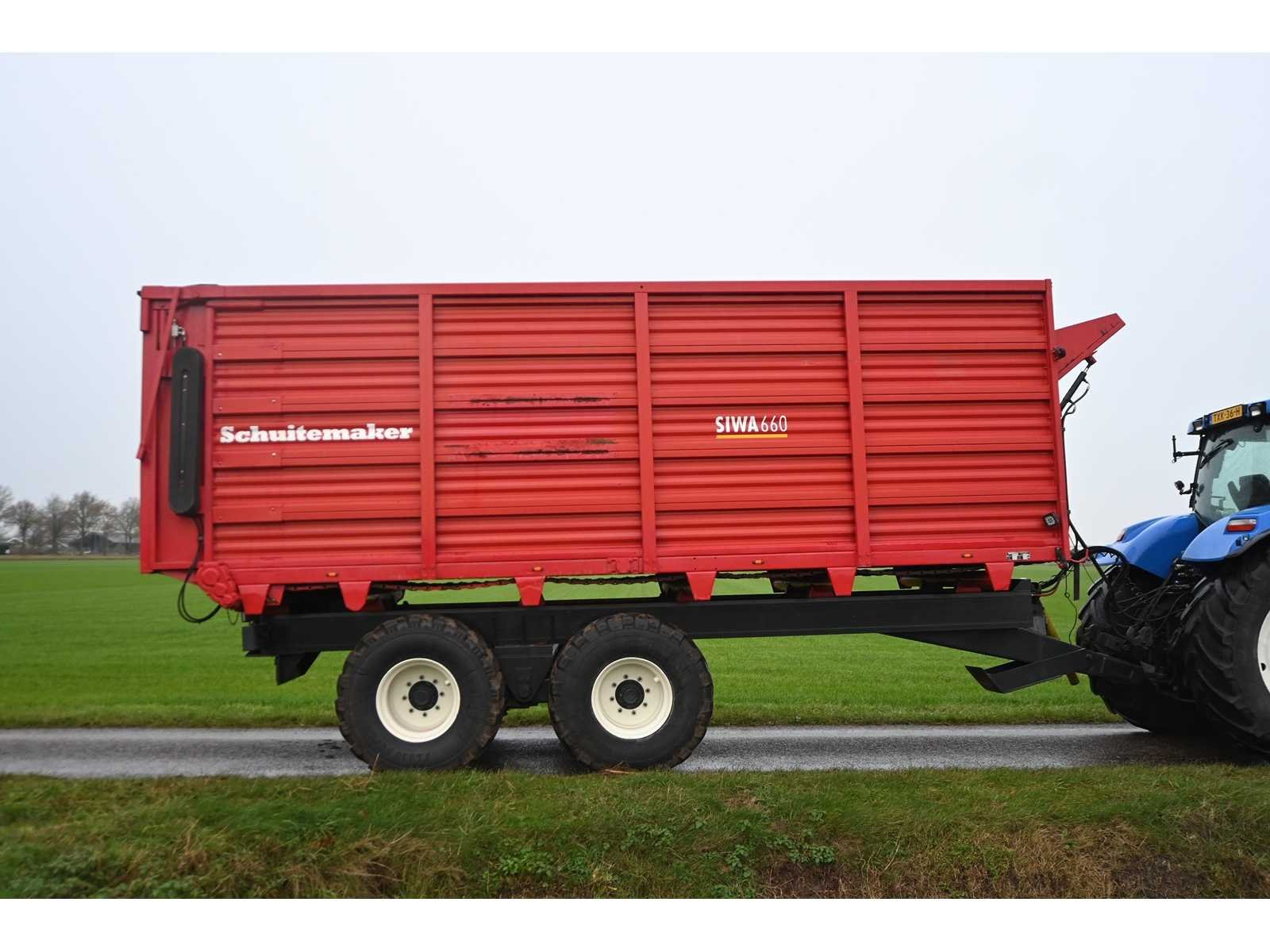 Afmeting bak ca. L700 x B230 x H210 cm. Totaal gewicht: 21030KG. Naloop gestuurd Nee Merk: Schuitemaker Type: SIWA 180 Serienummer: 6422.343 Kenteken: LKJ-14-B Hydraulische remmen: true Eigen gewicht: 5700kg