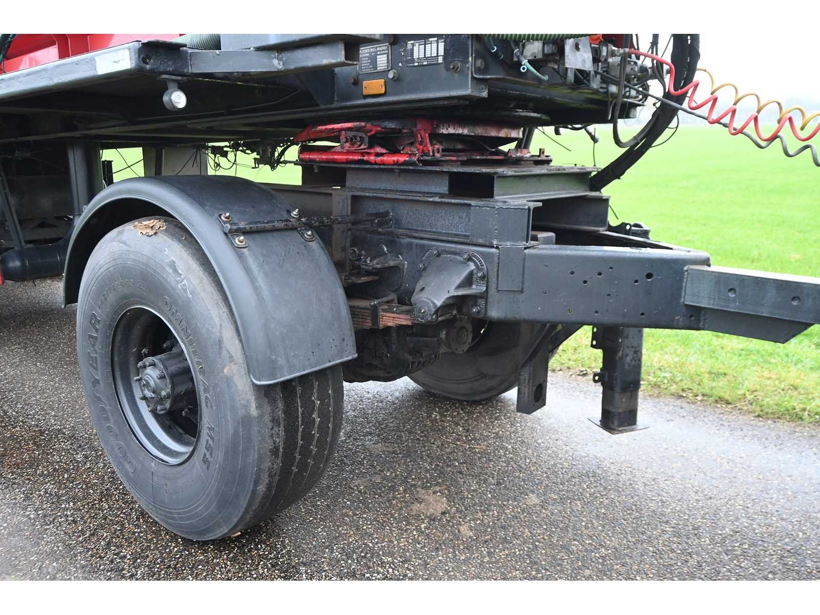 Voorzien van 3 gestuurde assen. Nee Merk: Veenhuis / Floor Type: 25.000/FLO 17-28 Serienummer: 20668/762 Kenteken: LKJ-17-H Bandenmaat: 445/75R22.5