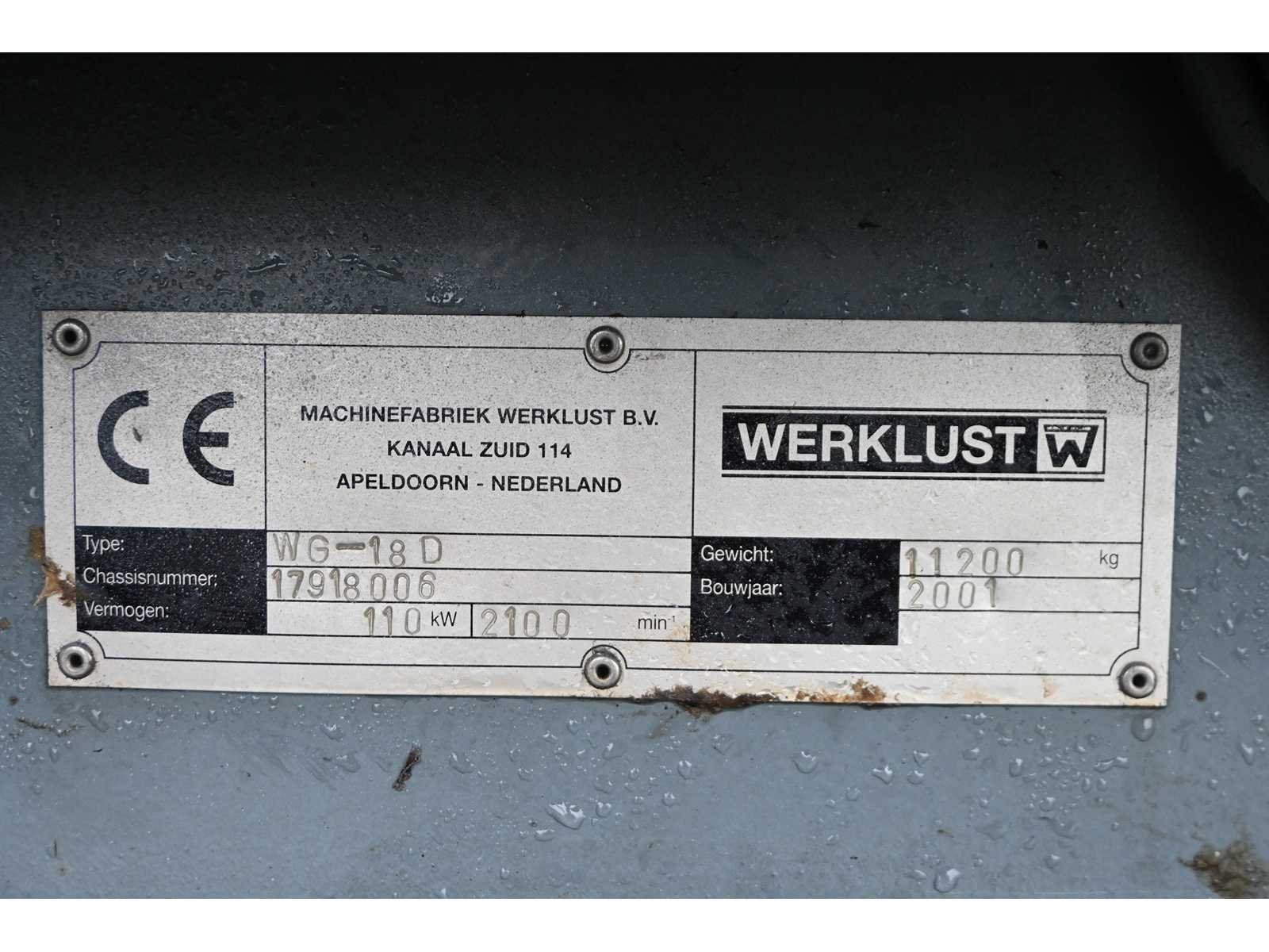 Nee Merk: Werklust Type: WG18D Bouwjaar: 2001 Serienummer: 17918006 Merk motor: Cummins Kenteken: TTD-21-P Motorvermogen (kW): 110kW Aantal cilinders: 6 Brandstof: Diesel Cabine: true Eigen gewicht: 11200kg