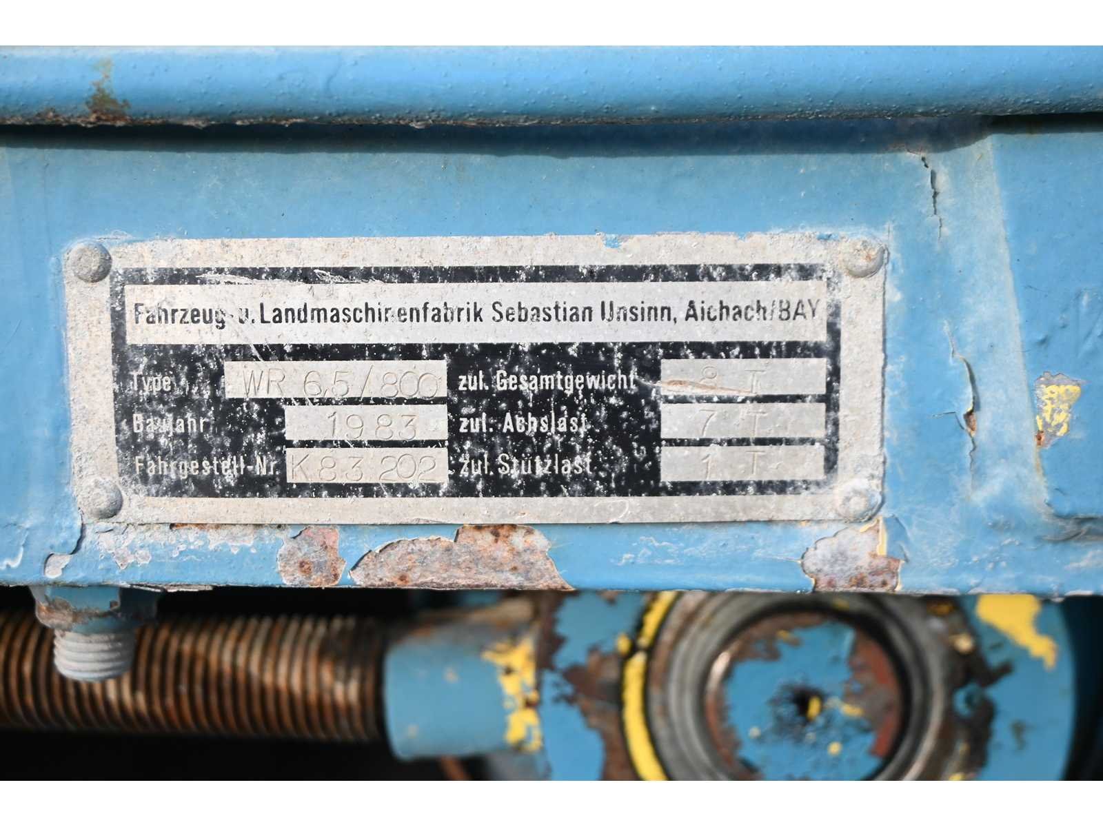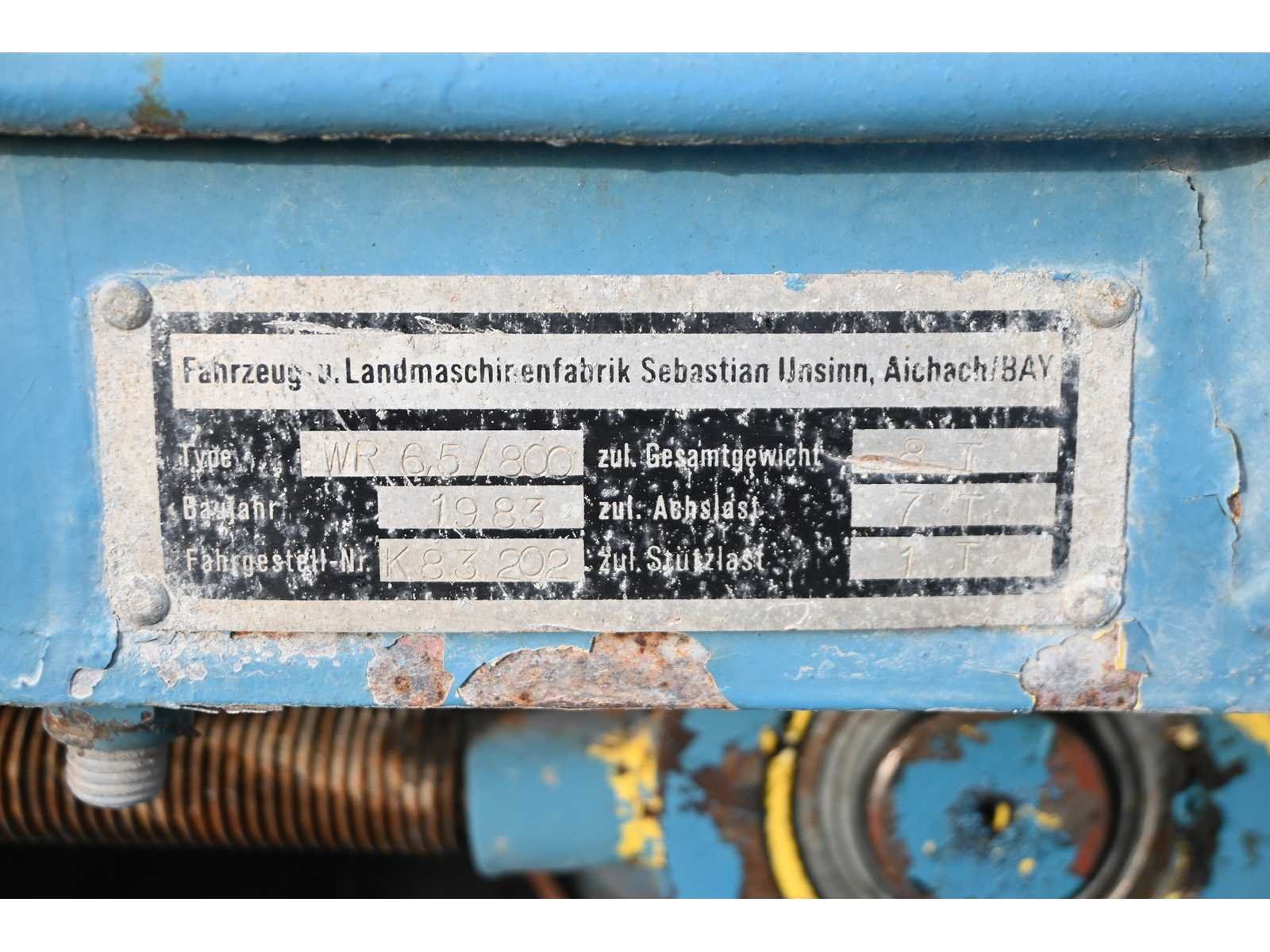 Capaciteit totaalgewicht ca. 8000KG. Nee Merk: Unsinn Type: WR6,5/800 Worker 8T Kenteken: LKH-08-Z Totale afmeting L: 5000mm Totale afmeting Breedte: 2500mm Totale afmeting Hoogte: 2700mm