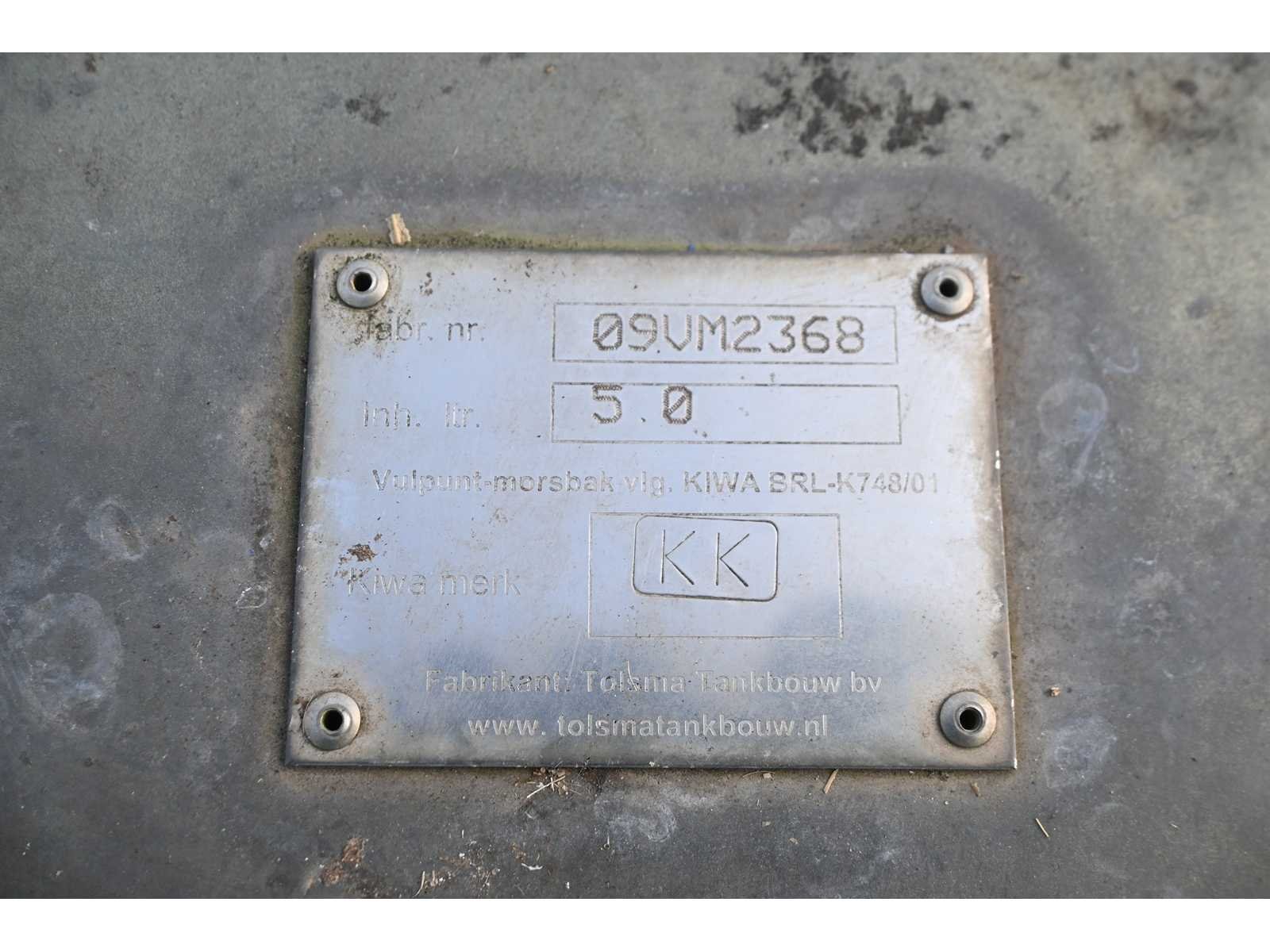 Voorzien van KK Kiwa-merk. Nee Merk: Tolsma Tankbouw Type: 5.0 M3 Serienummer: 09vm2368 Totale afmeting L: 3500mm Totale afmeting Breedte: 2000mm Totale afmeting Hoogte: 2700mm