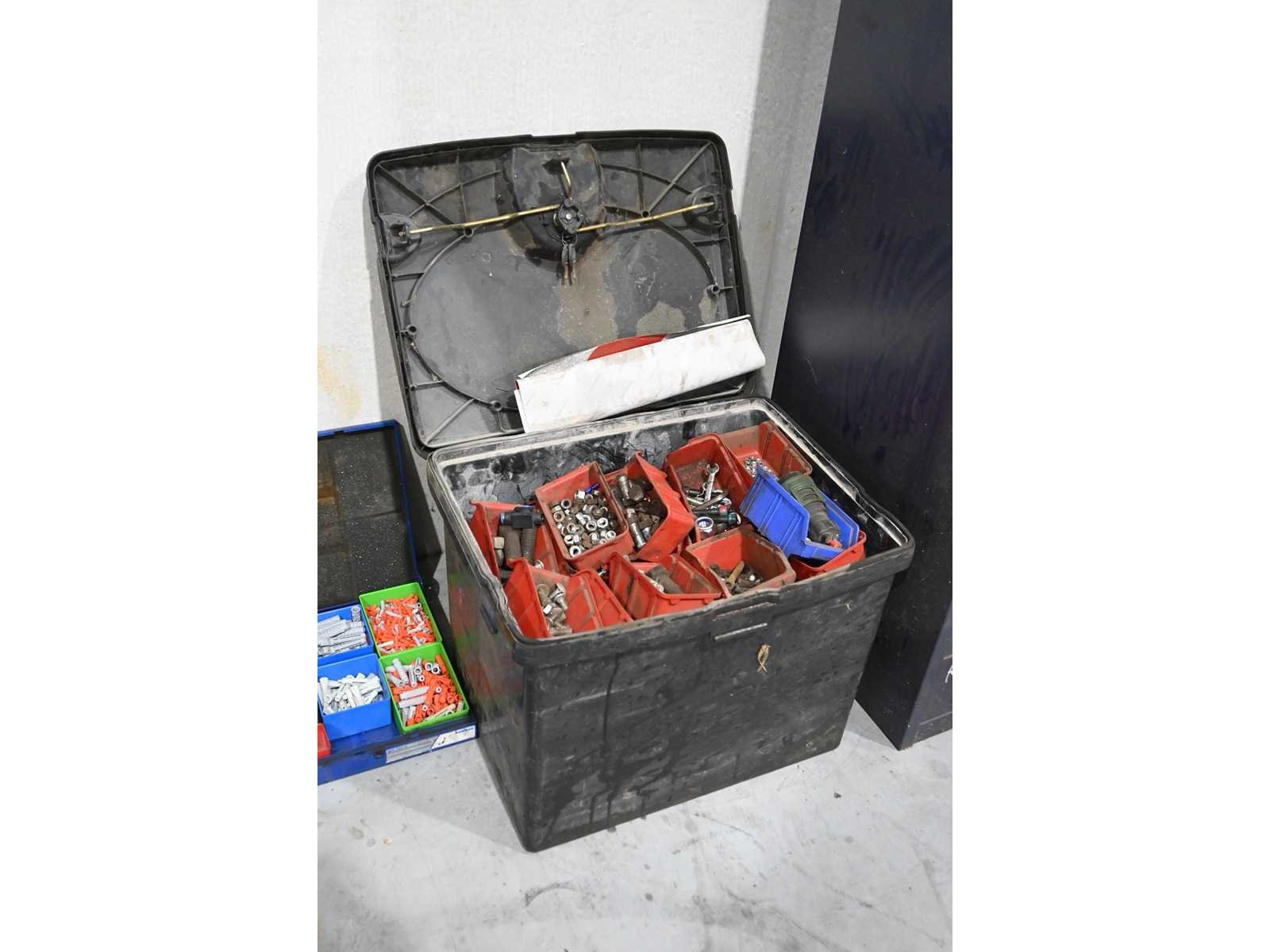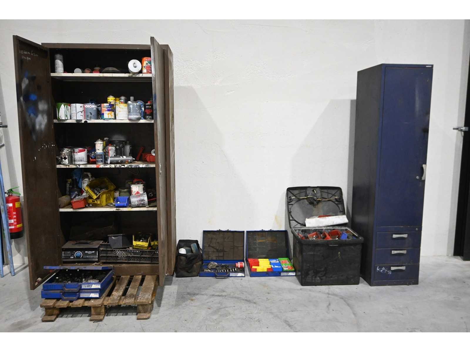 Diverse werkplaatskasten met (new holland) onderdelen en (sortimo) assortimentskisten