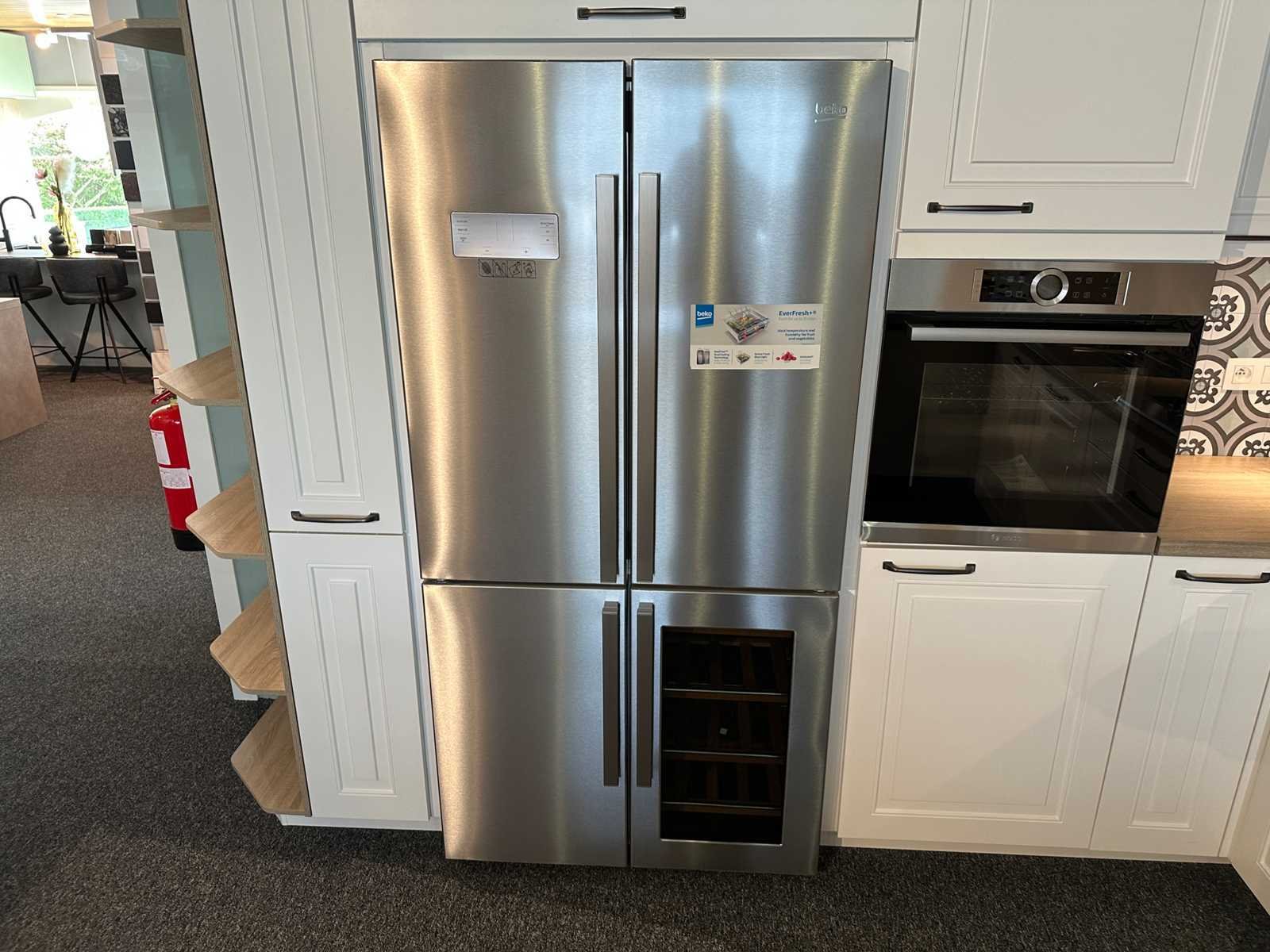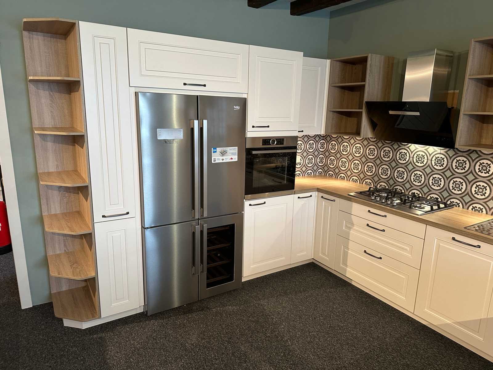 Afmetingen linkerdeel circa 280x60x295 cm; afmetingen rechterdeel circa 300x60x92 cm; reeds gedemonteerd en ingepakt op pallets. (afstapelen, omruilen of statiegeld per pallet); Pallets zijn niet inbegrepen; statiegeld betalen bij afhalen, of pallets afstapelen; werkblad niet ingepakt op pallets (25-CAMP-01708) Nee Merk: Van Camp Type keukenopstelling: Hoek Kraan: Ja Gootsteen: Ja Aanrechtblad: Hout Fornuis: Beko Koelkast: Beko GN1416233ZX Softclose: true Oven: Bosch HB6632BS1 Afzuigkap: Bosch HBDKNBUV Vaatwasser: Beko DIN28426 Kleur: Vanille