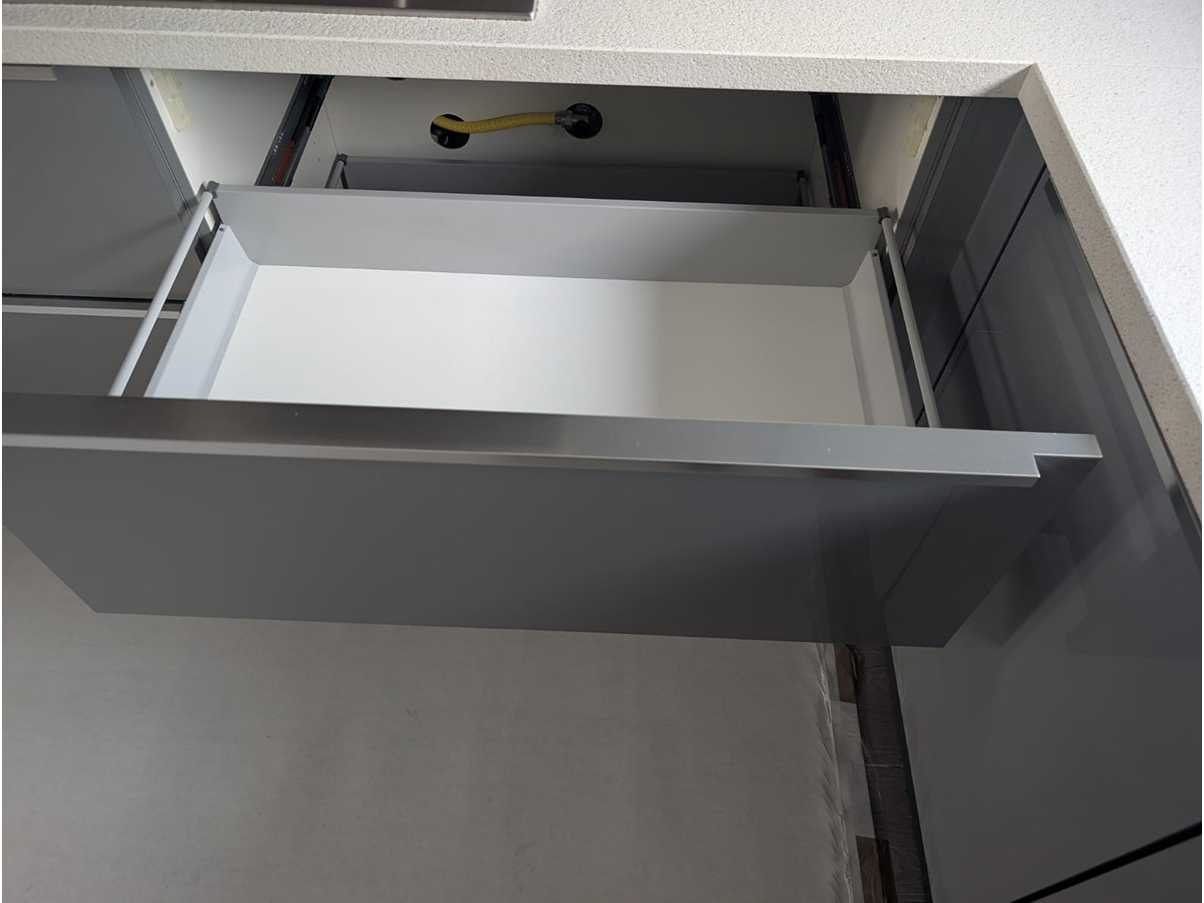 Conditie gebruikt; Afmetingen, LxB Linkerzijde ca. 250x60cm; rechterzijde ca. 300x60; hoogte kasten ca 175 cm; Reeds gedemonteerd en ingepakt op pallets. (afstapelen, omruilen of statiegeld per pallet); Pallets zijn niet inbegrepen; statiegeld betalen bij afhalen, of pallets afstapelen; werkblad niet ingepakt op pallets Nee Merk: Bruynzeel Type keukenopstelling: L keuken Aanrechtblad: Steen wit Fornuis: Pelgrim Koelkast: Liebherr Softclose: true Afzuigkap: Pelgrim Hoofdkleur: Grijs Blauw