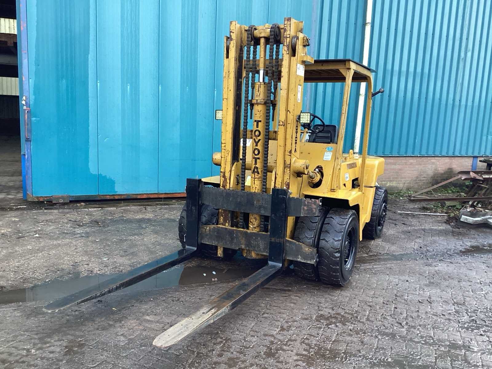 LPG Heftruck Toyota, 6 Cilinder motor, exclusief gasfles (fles kan wel gebruikt worden voor het opladen) Inclusief 6 extra goede banden. Nee Merk: Toyota Type: fg5 Brandstof: LPG Aantal wielen: 6 Afgelezen urenstand: 5850 Ruw terrein: true Duplex mast: true Hefvermogen: 5000kg Lepellengte: 1900mm Max. hefhoogte: 3000mm Luchtbanden: true Vol rubber banden: true Minimale doorrijhoogte: 2560mm Totale afmeting L: 5000mm Totale afmeting Breedte: 1800mm Totale afmeting Hoogte: 2560mm LPG: true