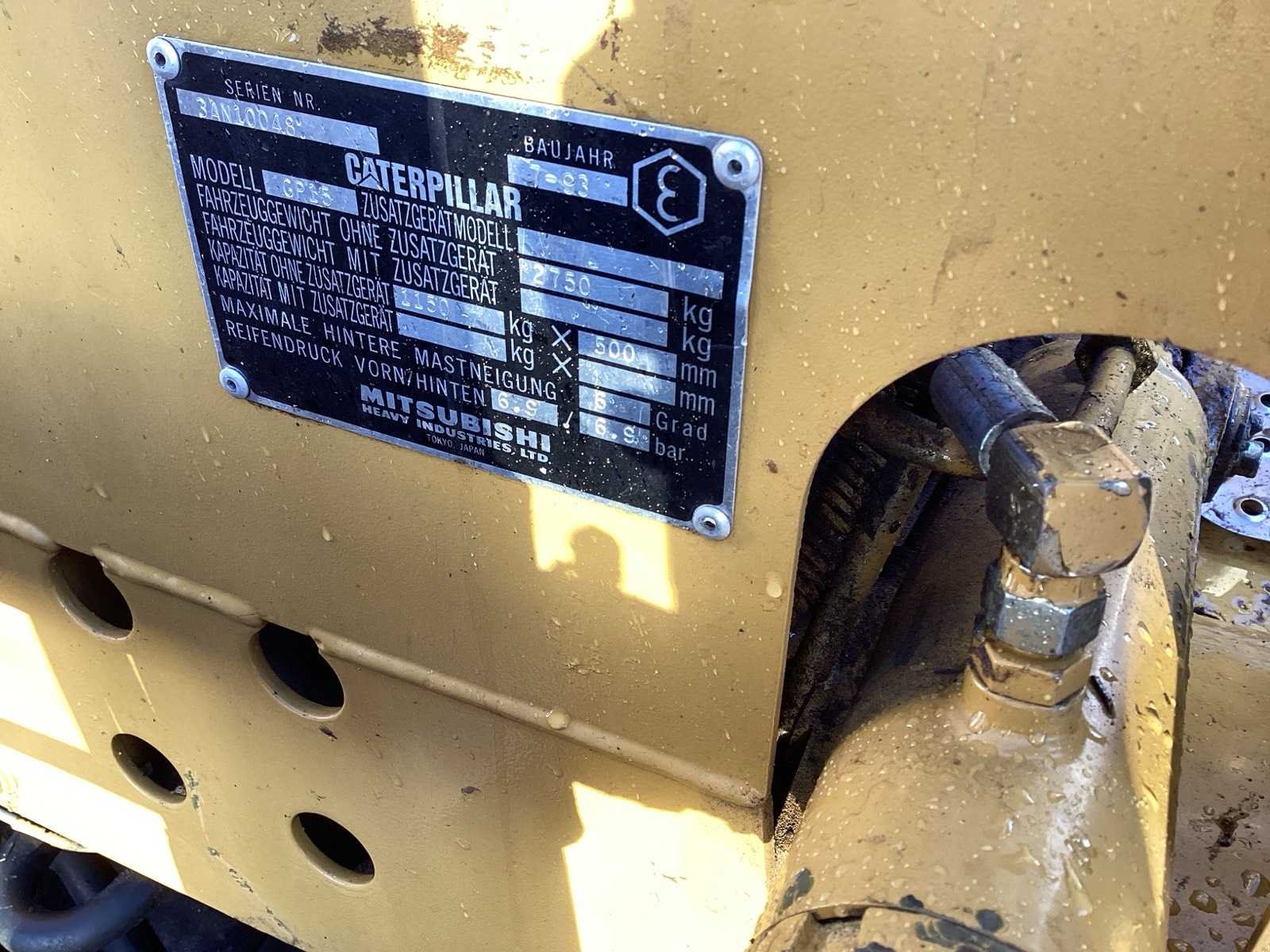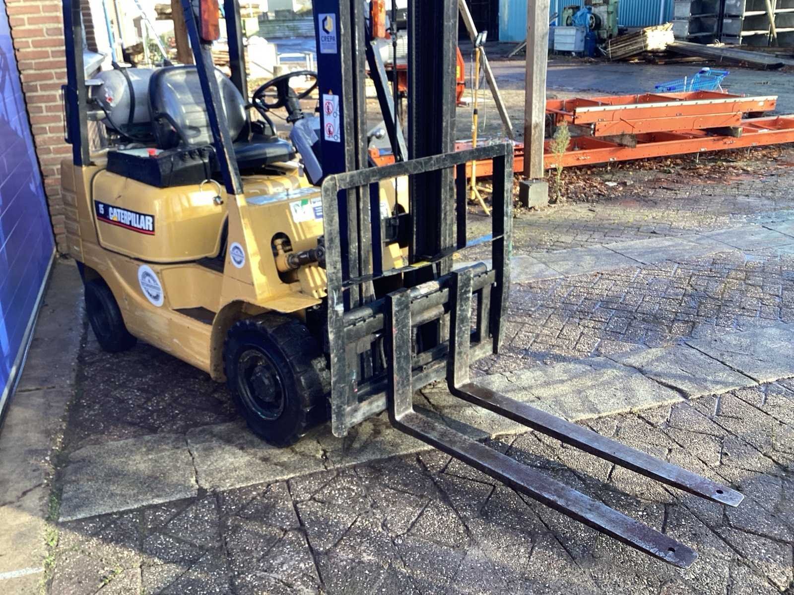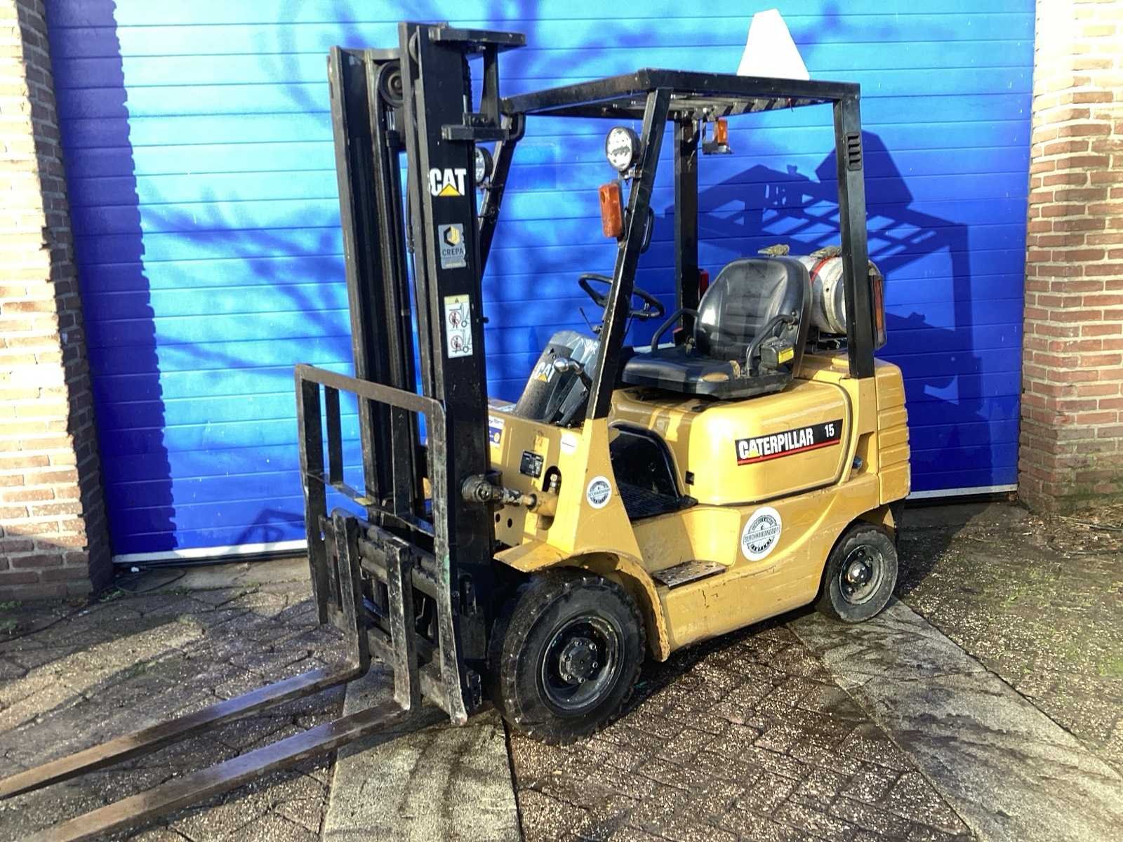 Joystick bediening, Dashboard kapot maar heftruck is functionerend, lichtsensor met led verlichting, flitslamp, mitsubishi motor 4g64, exclusief gasfles (fles kan wel gebruikt worden voor het laden op een vrachtauto of aanhanger). Extra hydrauliekfunctie voor op de heftruck voor bijvoorbeeld kiepbak of veger. Urenstand +-4600 uur, is onder de plakband zichtbaar) en kan licht oplopen. Nee Merk: Caterpillar Type: GP15 Brandstof: LPG Soort band: Massief Aantal wielen: 4 Afgelezen urenstand: 4600 Side-shift: true Hydraulisch verstelbare lepels: true Duplex mast: true Eigen gewicht: 2750kg Hefvermogen: 1500kg Max. hefhoogte: 3300mm Vol rubber banden: true Minimale doorrijhoogte: 2250mm Totale afmeting L: 3500mm Totale afmeting Breedte: 1100mm Totale afmeting Hoogte: 2250mm LPG: true