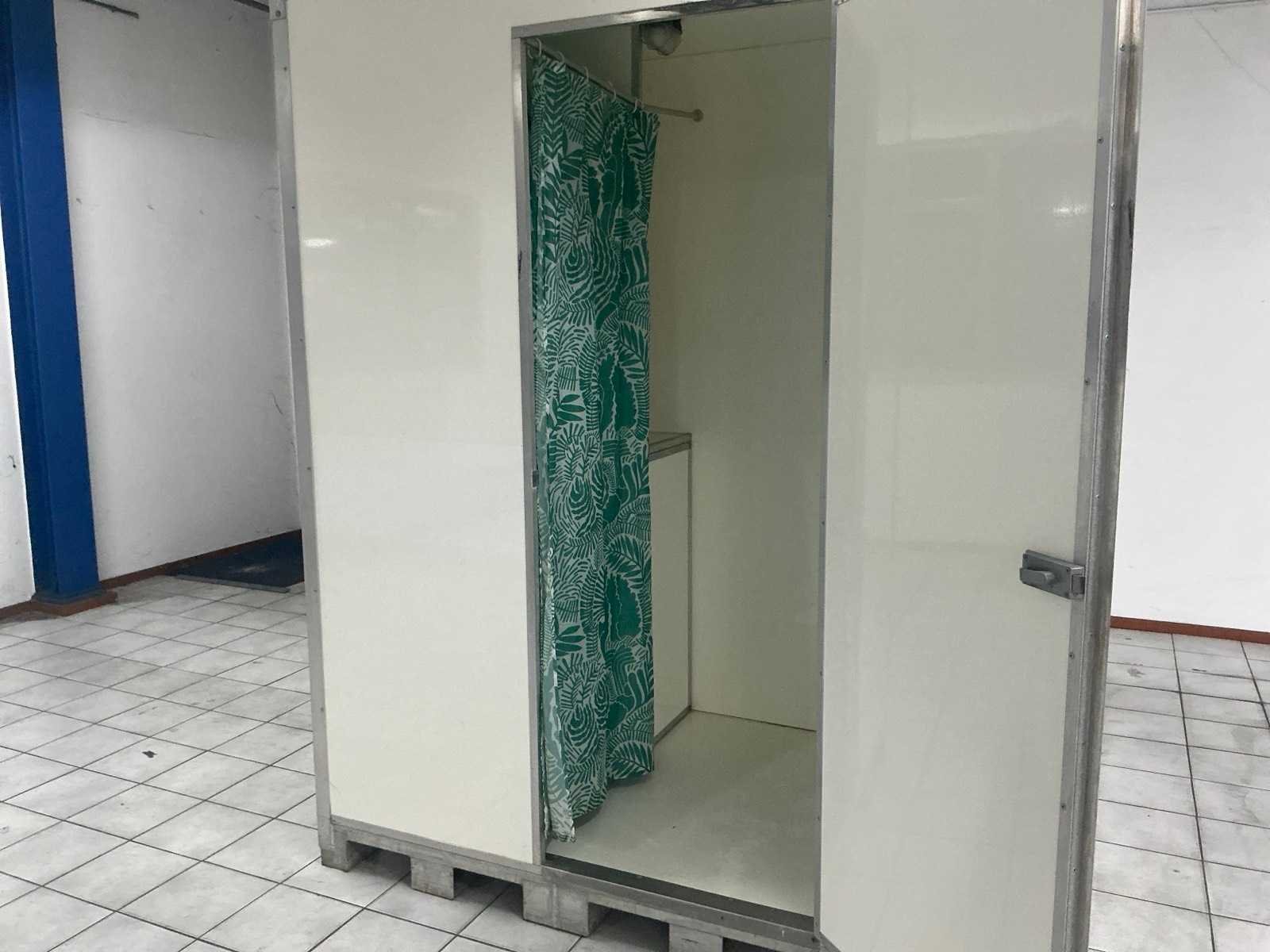 Voorzien van douchebak 70x70cm, douchekraan met douche, verlichting en extra stroompunt, Eurom verwarming en boiler. Nee Afmeting l: 1600mm Afmeting b: 1200mm Afmeting h: 2530mm Aantal douches: 1