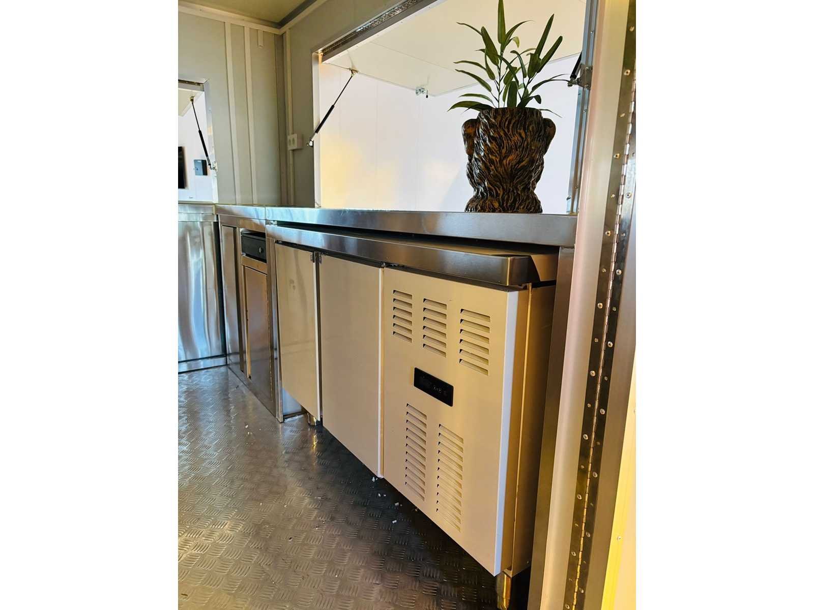Lengte: 280cm Breedte: 200cm Hoogte: 240cm Gewicht: 675kg Max: 750KG Dubbele wasbak kraan ,vuil/schoon watertank met opvoerpomp Aluminium antislip vloer Geaarde stopcontacten 230v (eu standaard) Zekeringkast Ledverlichting binnen Stablilisatie poten kassalade Koel/ vrieskast Afzuigkap Nieuw! Nee Merk: Tune Type: Boxtrailer Model: Foodtruck Bouwjaar: 2025 Aantal assen: 1