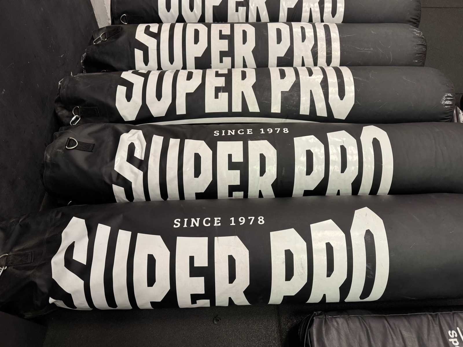 1 x SPINNINFIETS 2 x een set PADS en TRAPZAKKEN etc. 4 x identiek boksbeugel voor muurbevestiging met elk 5 bevestigingsgaten en een bijbehorende metalen lat voor zijwaartse stijfheid voor extra stevigheid 5 x BOKSZAKKEN van elk 45 kg van SUPER-PRO 15 x YOGA MATTEN DIVERSE BOKSHANDSCHOEN PAREN OVERIGEN SLEEP TRAINING ATTRIBUTEN SWISSBALL STORAGE plus 4 x SWISSBALL TUNTURI ROEI TRAINER VIPRs Nee