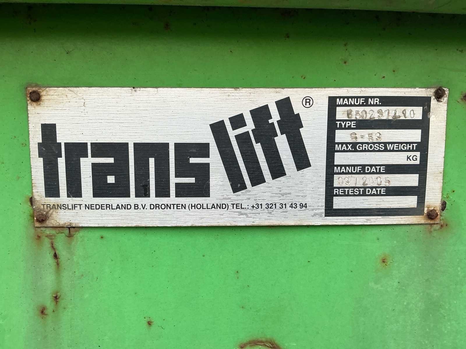 Nee Merk: Vernooy Type: S-53 Bouwjaar: 2005 Serienummer: 850231190 Totale afmeting L: 6100mm Totale afmeting Breedte: 2500mm Totale afmeting Hoogte: 2000mm