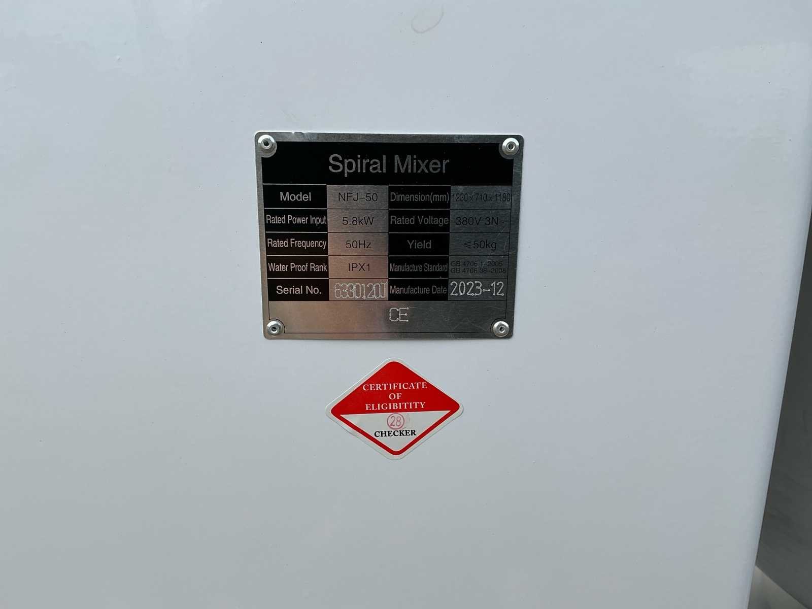 Ongebruikt No Merk: ADM Horeca Type: NFJ-50 spiraal Bouwjaar: 2023 Serienummer: 6330120J Capaciteit.: 50kg Aansluiting: 380V Totale afmeting L: 1230mm Totale afmeting Breedte: 710mm Totale afmeting Hoogte: 1180mm