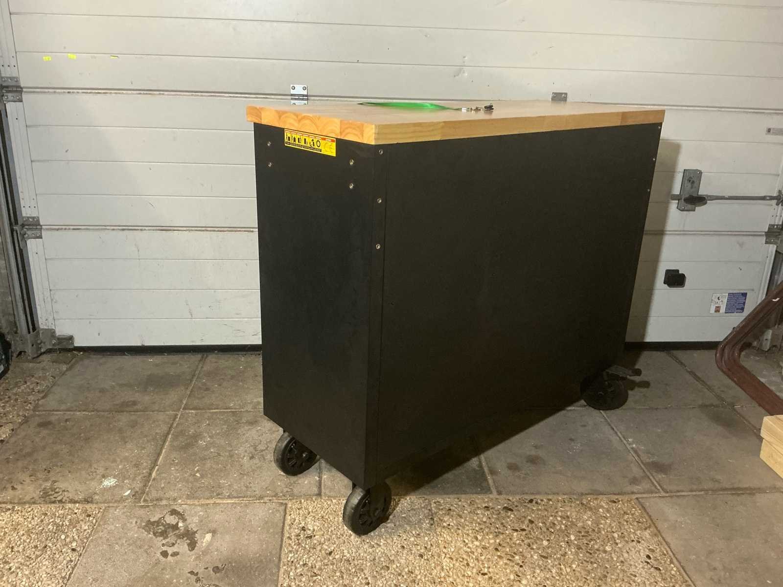 Schroevendraaierset, tangenset, dopsleutels en inbussleutels, torx, algemeen handgereedschap, doppenset, doppenset met bit, steeksleutelset en beugels. Staat: nieuw, nooit gebruikt. Nee Merk: Jungwille Model: Jw48XXL Type: Hockenheim Kleur: Zwart Lengte: 49cm Breedte: 122cm Hoogte: 106cm