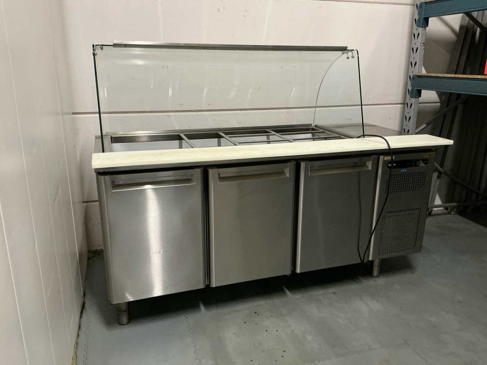 Werkend No Merk: Afinox Type: Thrym Materiaal: RVS Ingebouwde koelcompressor: true Rvs: true Aansluiting: 220V Totale afmeting L: 70cm Totale afmeting Breedte: 182cm Totale afmeting Hoogte: 85cm