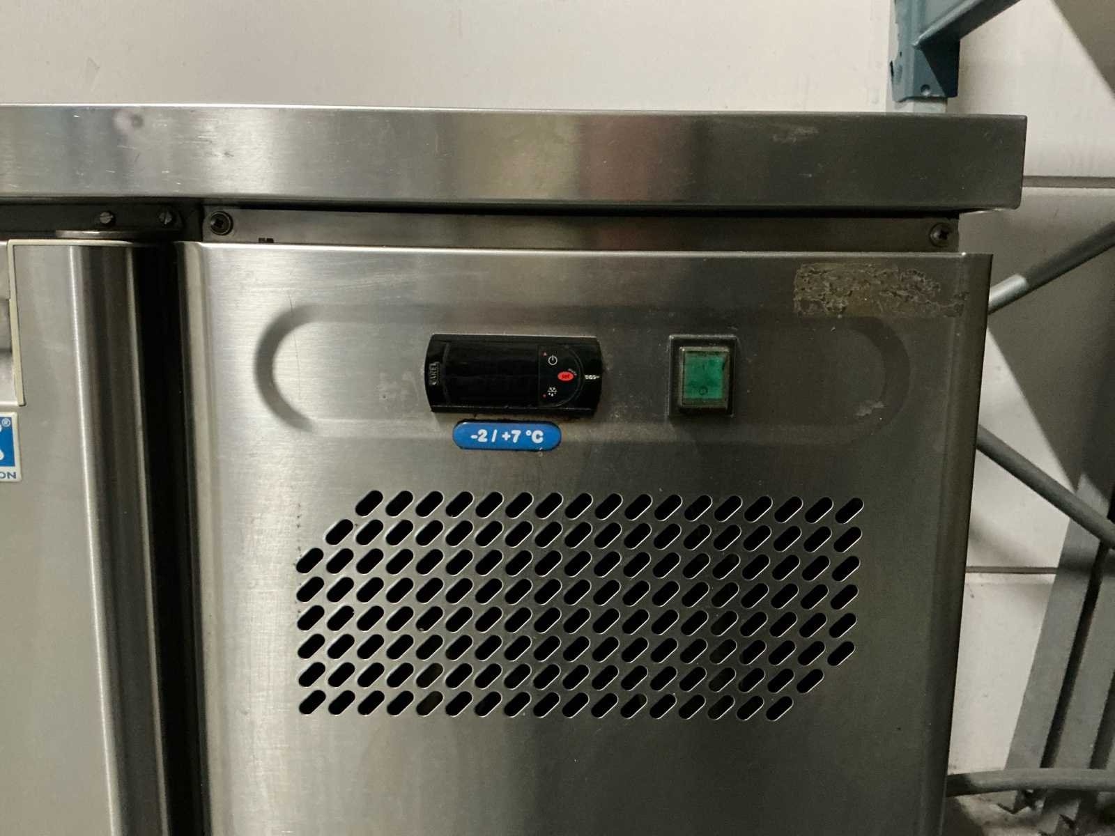 Werkend No Merk: Afinox Type: Bouter Totale afmeting L: 70cm Totale afmeting Breedte: 182cm Totale afmeting Hoogte: 84cm Materiaal: RVS Digitale uitlezing: true Temperatuurbereik min.: -2°c Ingebouwde koelcompressor: true Rvs: true Aansluiting: 220V Temperatuurbereik max.: 7°c Aantal laden: 3pcs