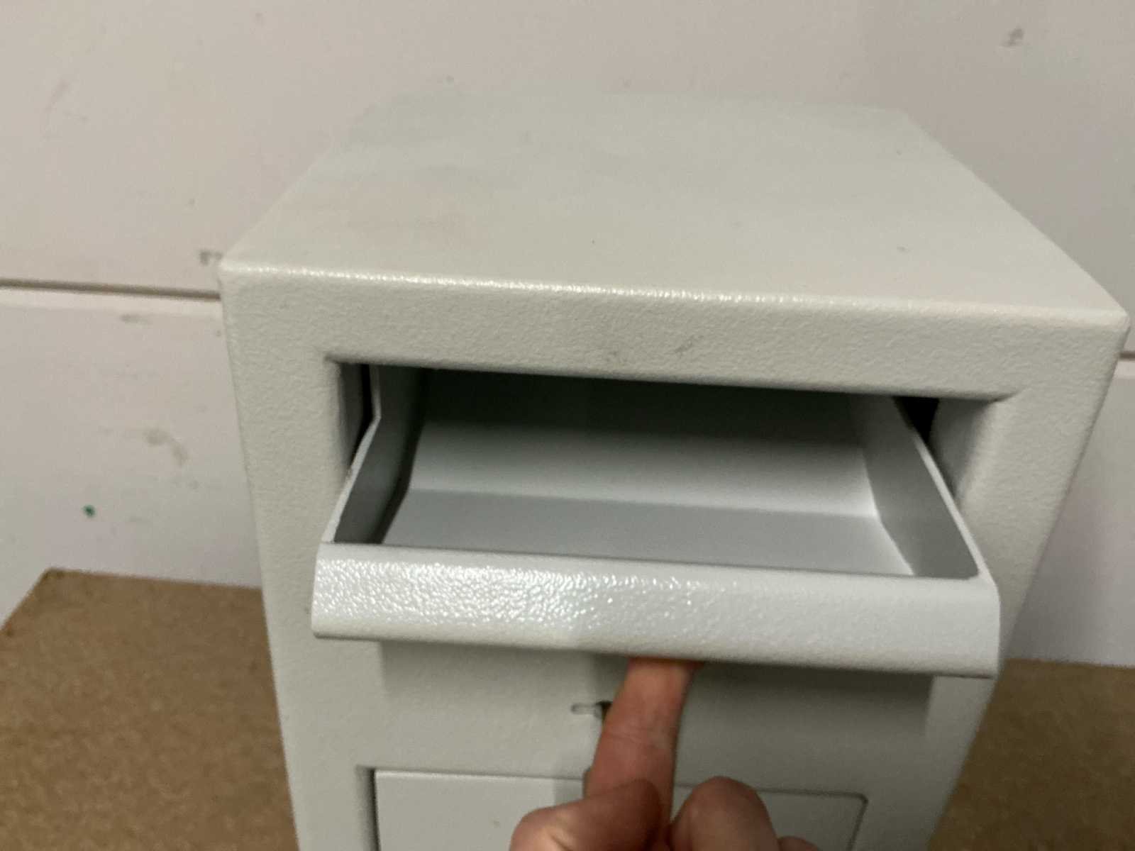 Volledig werkend, 2 sleutels aanwezig. No Model: Peine Product type: Kluis Gewicht: 27kg Materiaal: Staal