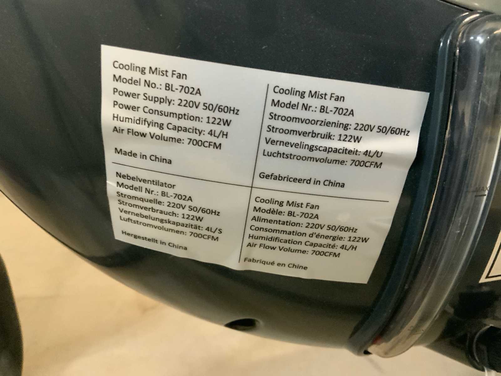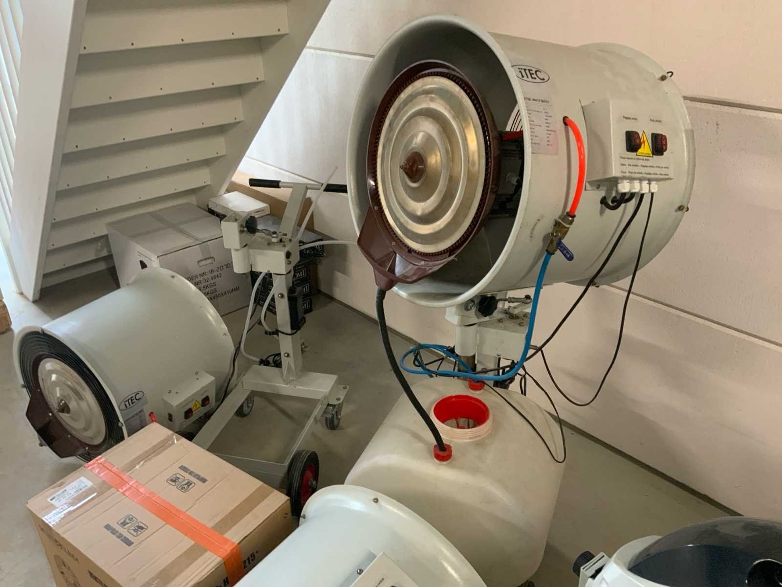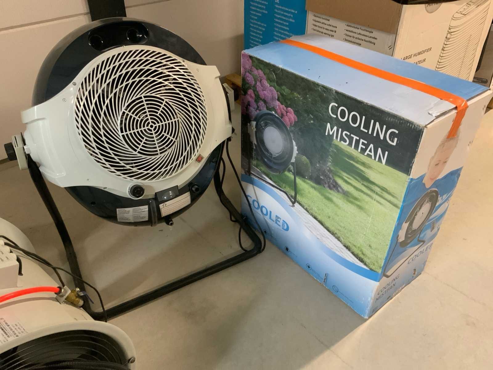 Bestaande uit 1x Pureairpro SC-LX-YD 220V 650 watt luchtbevochtiger zonder toebehoren * 2x Cooling mist fan BL-702A 220V 122 Watt terraskoeler (fogger) waarvan 1 in originele verpakking * 1x Mund Clima ventilator Nebulizador 26 inch * 2x Itec LLX-4 220V 650 Watt luchtbevochtiger voorzien van verrijdbaar onderstel en 1x watertank Nee Leveringsvoorwaarden: Gratis op vrachtwagen