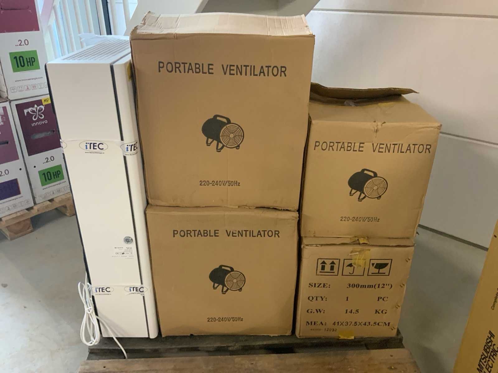 Bestaande uit 1x Mitsubishi Electric VL-50ES2-E, 1x Sharp KC-G4EU-W, 1x Vents Micra 200, 2x Duux Bright Smart luchtreiniger, 1x Duux Motion, 2x Airbi Refresh luchtreiniger, 1x Airbi Respire luchtreiniger, 1x Stadler from Oskar en 1x big, 4x Stadler Form Anton, 1x Air Exchange 150-T, 1x Airbi EVO wifi, 1x Boneco W200, 4x buisventilator * producten zijn niet gecontroleerd en kunnen beschadigd zijn deels is minimaal gebruikt deels is ongebruikt * alles op en inclusief 2 pallets Nee Leveringsvoorwaarden: Gratis op vrachtwagen