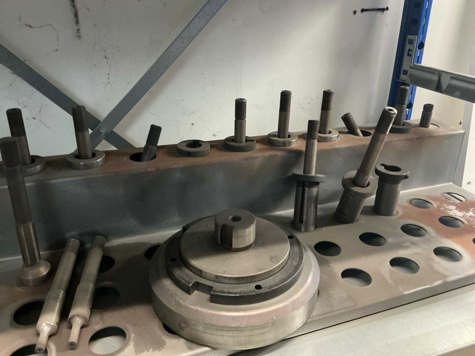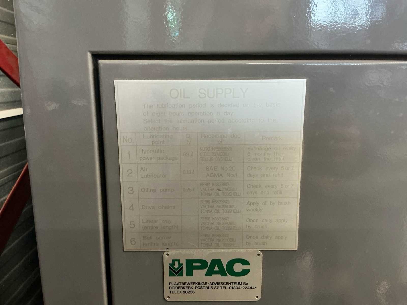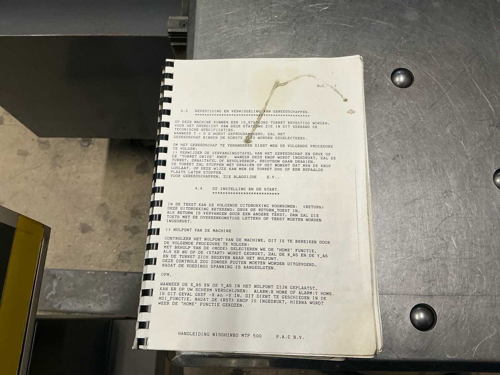 Voorzien van originele handeiding en verschillende maten ponsen. Nee Merk: Nisshinbo Type: MTP-500 Bouwjaar: 1987 Serienummer: 87085 Capaciteit.: 20t Max. plaat afm. l: 500mm Max. plaat afm. b: 1000mm Max. plaatdikte: 6mm Max. plaatgewicht: 170kg Machinegewicht: 5000kg Afmeting l: 4000mm Afmeting b: 4000mm Afmeting h: 2000mm