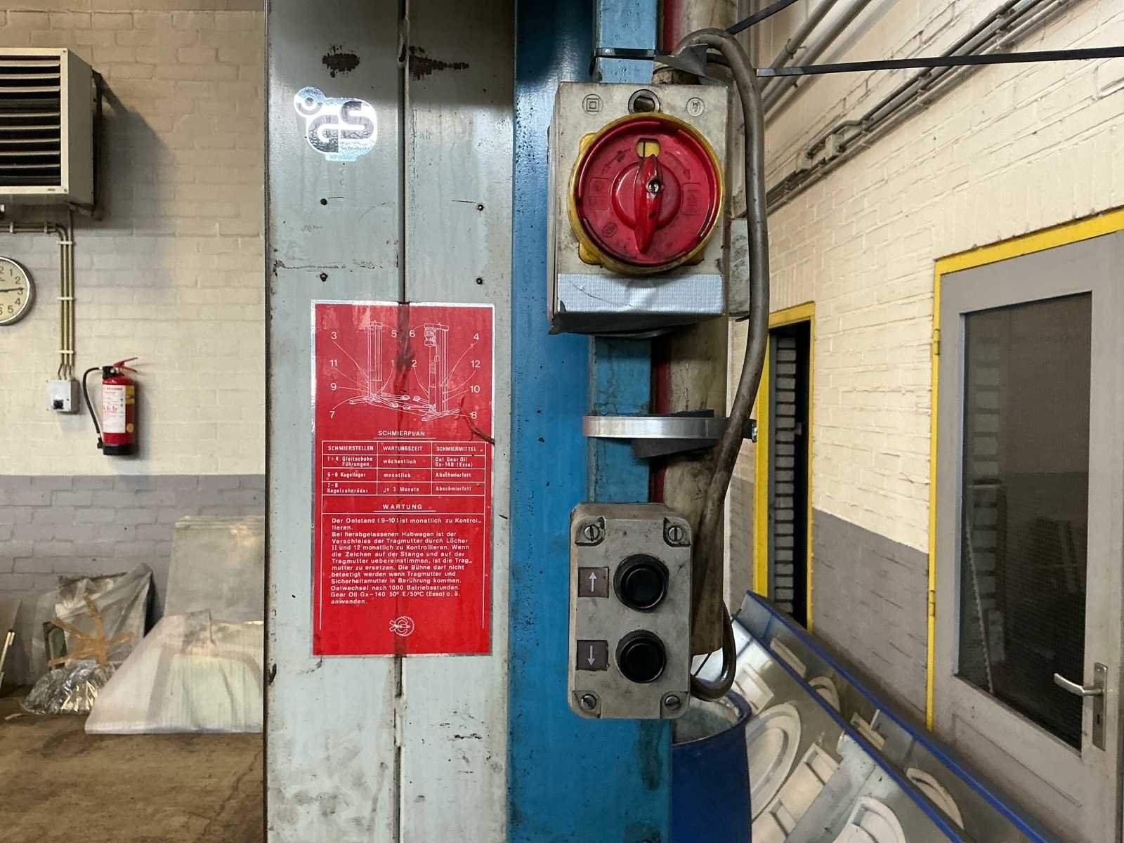 Voorzien van: knikarm Nee Merk: Ravaglioli Type: KP 123D Bouwjaar: 1980 Serienummer: 42300–22381 2-koloms: true Capaciteit.: 2000kg Baanbreedte: 2400mm Aansluiting: 380V Totale afmeting L: 1600mm Totale afmeting Breedte: 3000mm Totale afmeting Hoogte: 2600mm