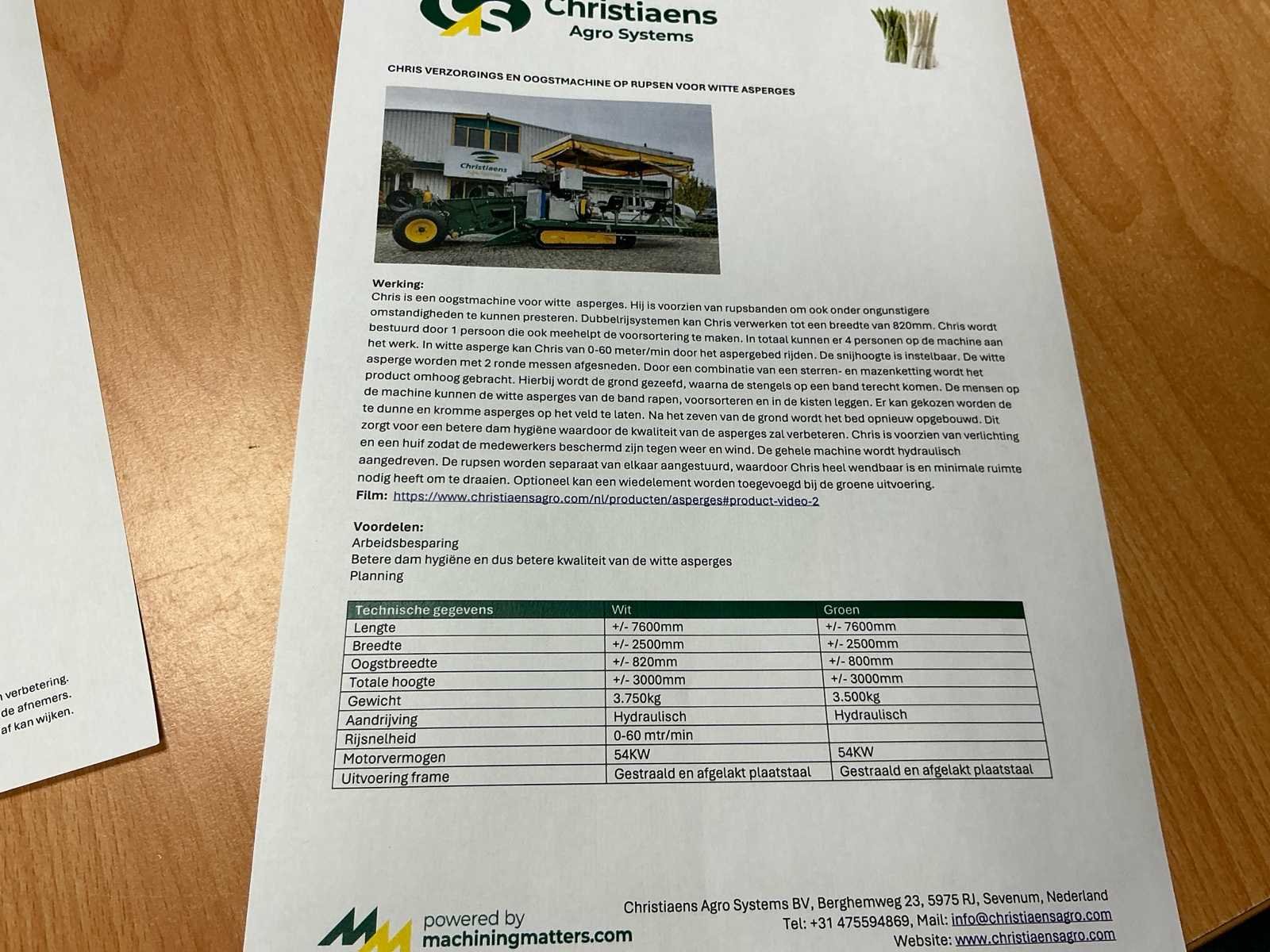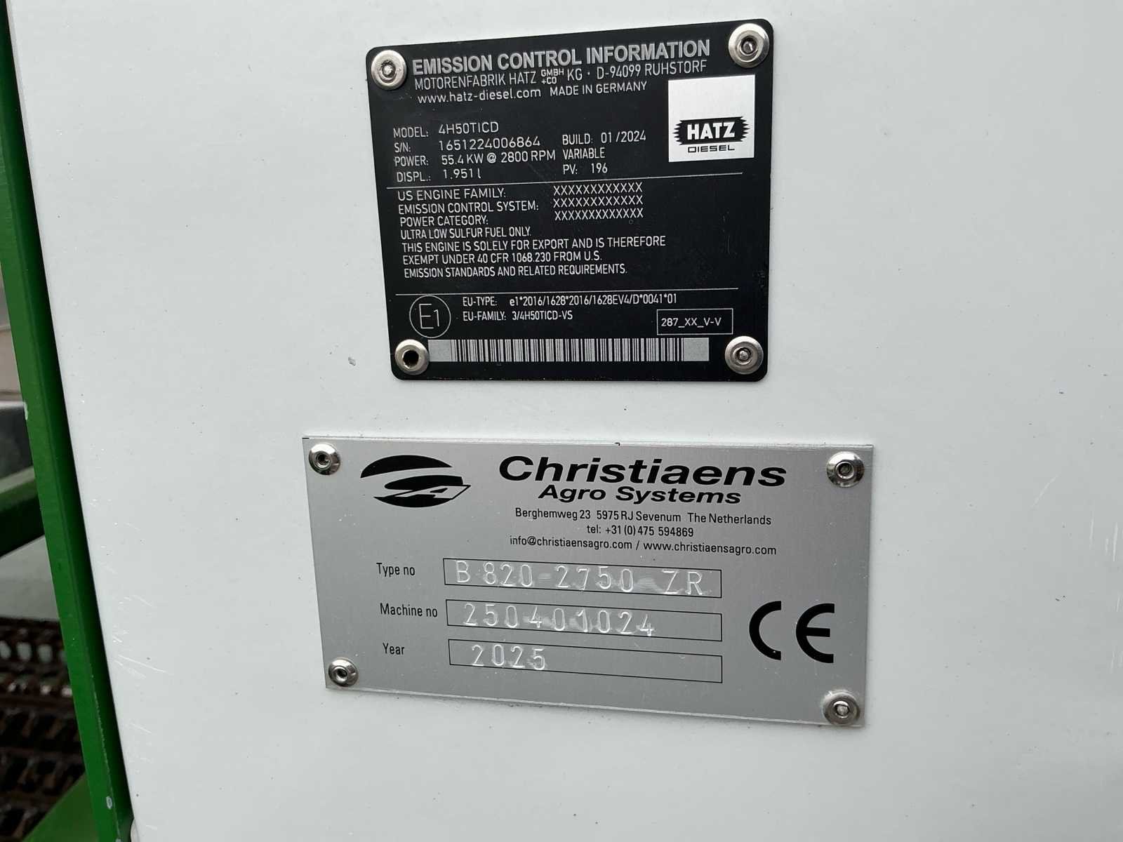 Voorzien van Hatz motor, rupsbanden, LED verlichting, in hoogte verstelbare snijinrichting, 4 zitplaatsen, ingebouwde opbouwploeg, geschikt voor 10 hectare asperges oogst, Nee Merk: Christiaens Type: B 820 2750 ZR Bouwjaar: 2025 Serienummer: 250401024 Vermogen (kW): 54 Werkbreedte: 8200 Afgelezen urenstand: 144 Max. snelheid: 4 Eigen gewicht: 3750kg Totale afmeting L: 6200mm Totale afmeting Breedte: 2450mm Totale afmeting Hoogte: 2600mm