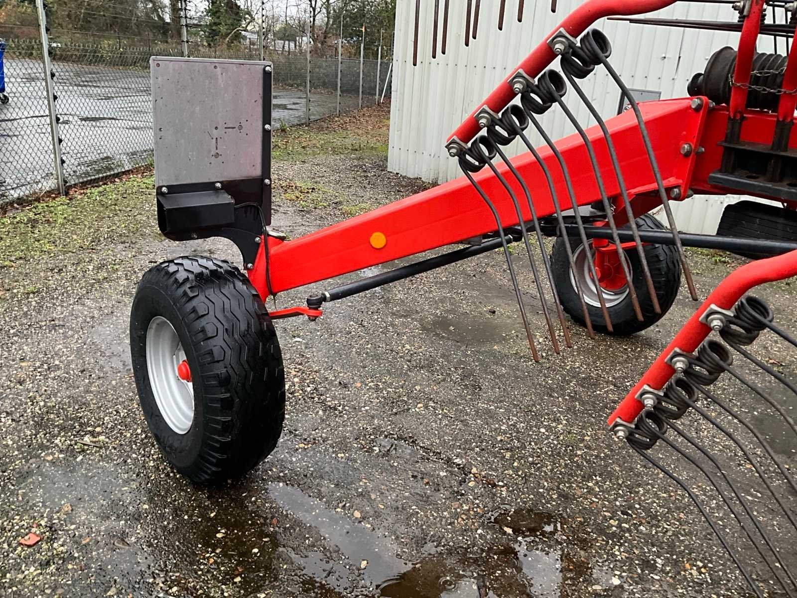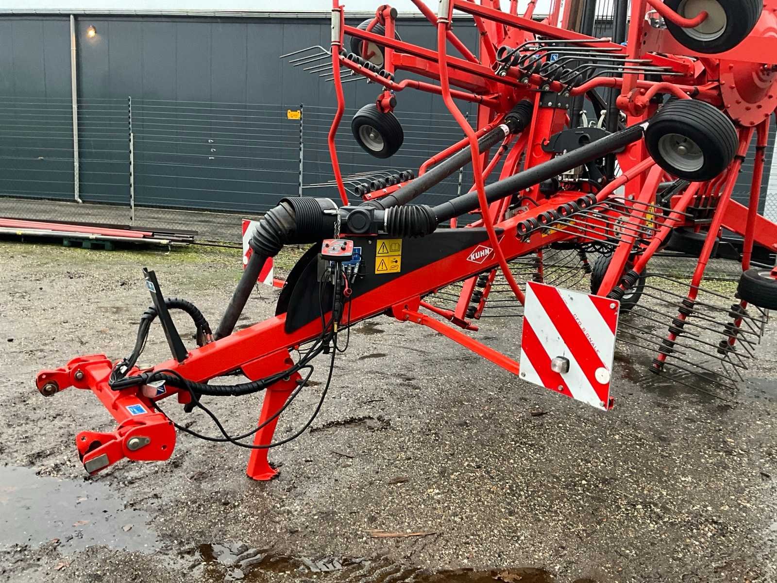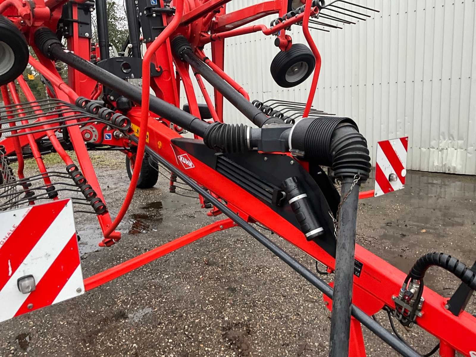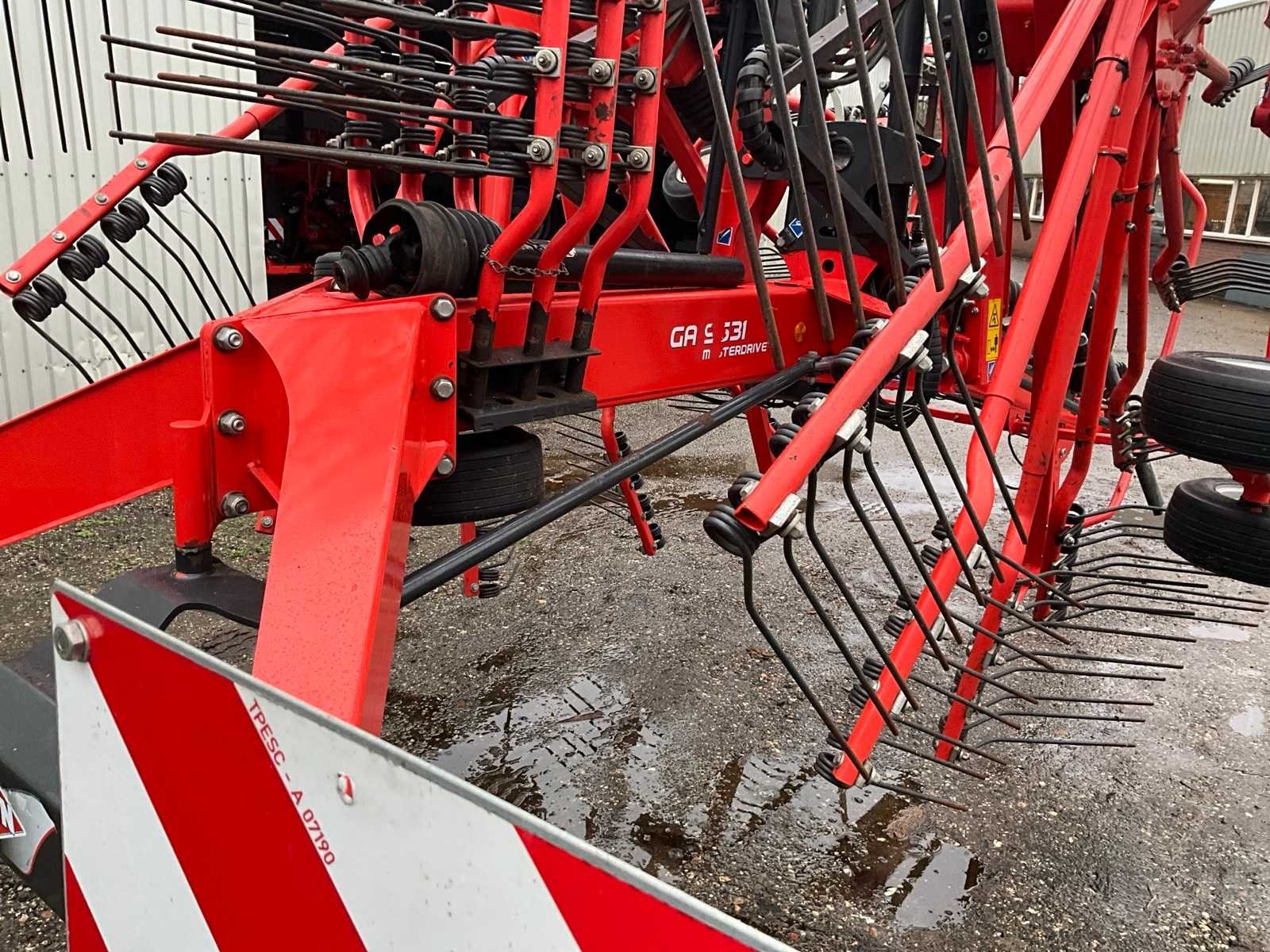 Getrokken uitvoering; Midden-afleg; Tandbeveiliging; Hydr.opklapbaar; Naloop-inrichting; Tandem; Mech.gestuurde transportwielen; 15 tandarmen met elk 4 tanden; Hydraulische werkbreedte verstelling; Hydraulische werkdiepte instelling; 6 wielen onder de rotor; Fusee besturing; Nee Merk: Kuhn Type: GA 9531 Bouwjaar: 2014 Serienummer: A1066 Eigen gewicht: 2450kg Werkbreedte: 9500mm