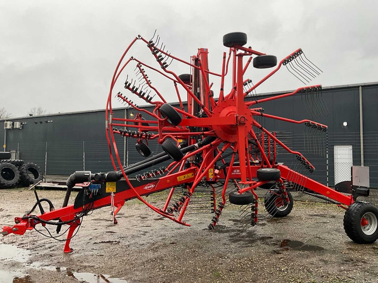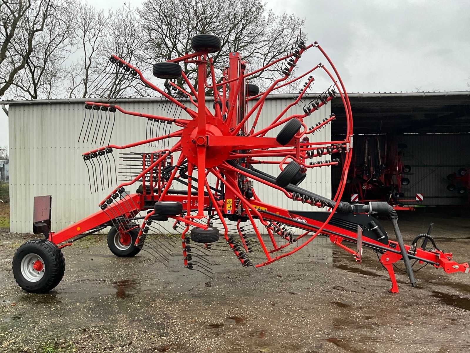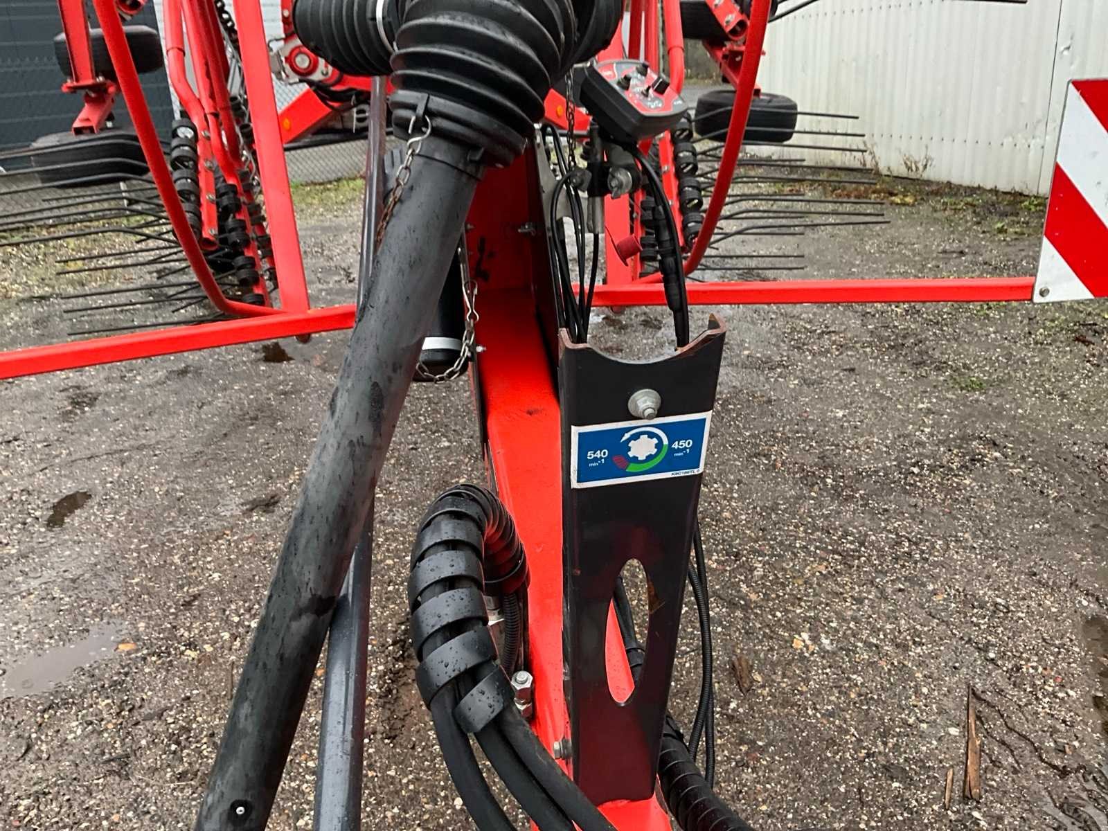 Getrokken uitvoering; Midden-afleg; Tandbeveiliging; Hydr.opklapbaar; Naloop-inrichting; Tandem; Mech.gestuurde transportwielen; 15 tandarmen met elk 4 tanden; Hydraulische werkbreedte verstelling; Hydraulische werkdiepte instelling; 6 wielen onder de rotor; Fusee besturing; Nee Merk: Kuhn Type: GA 9531 Bouwjaar: 2014 Serienummer: A1066 Eigen gewicht: 2450kg Werkbreedte: 9500mm