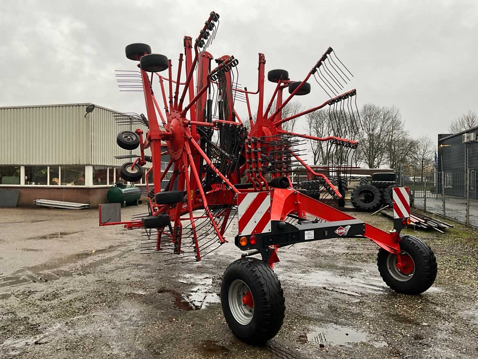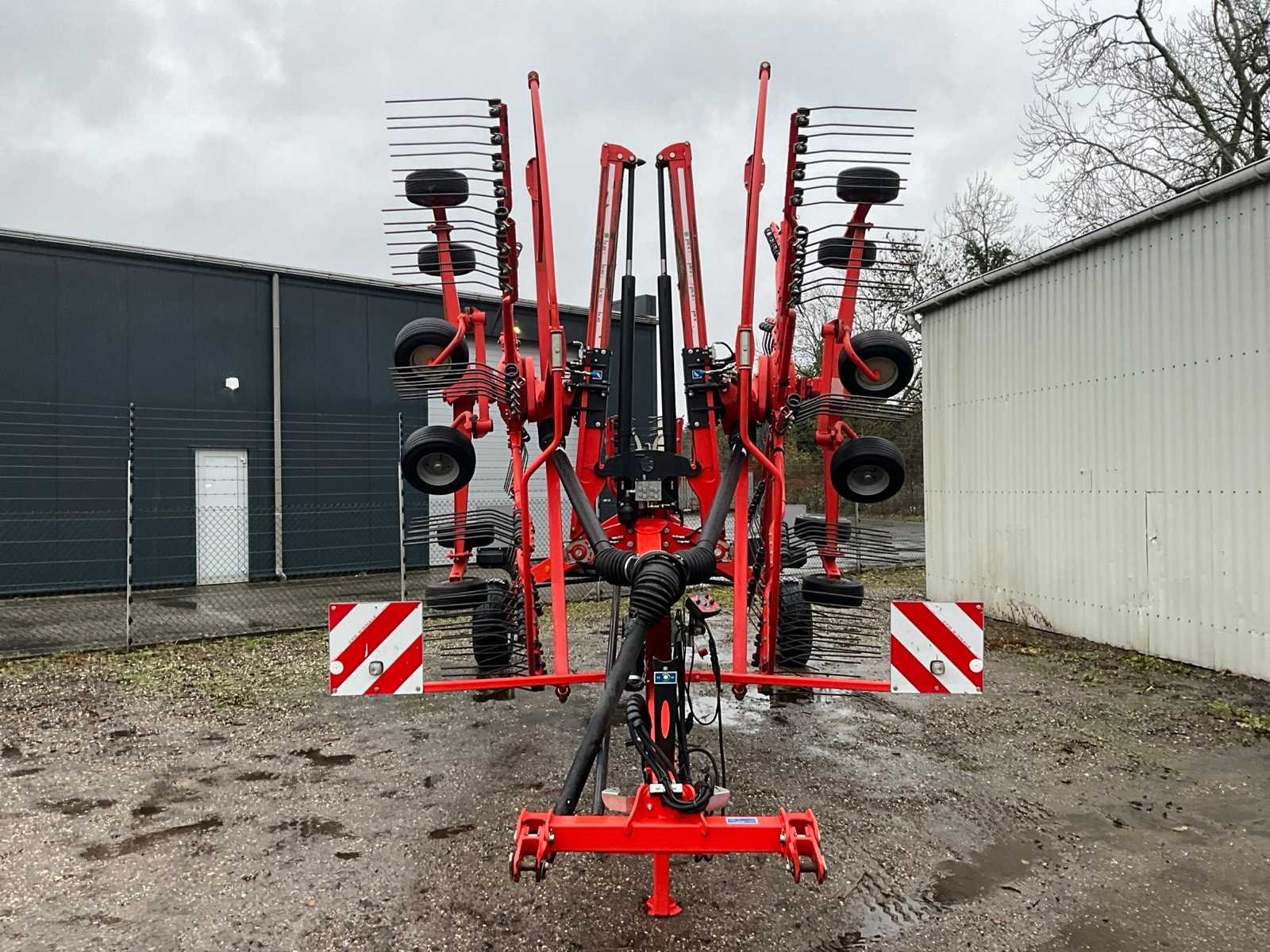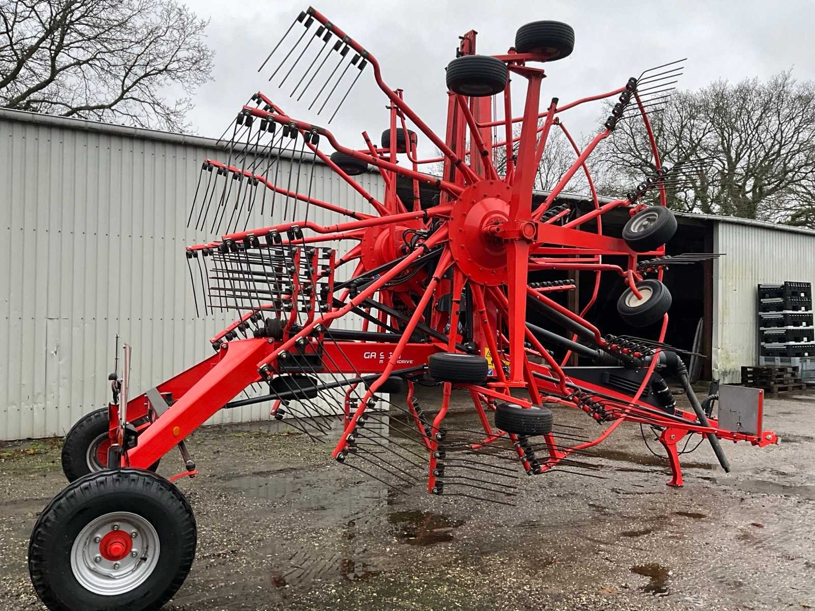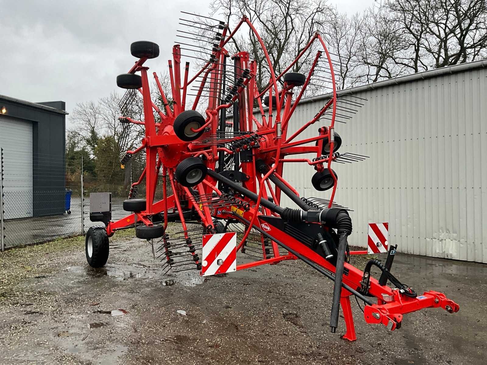 Getrokken uitvoering; Midden-afleg; Tandbeveiliging; Hydr.opklapbaar; Naloop-inrichting; Tandem; Mech.gestuurde transportwielen; 15 tandarmen met elk 4 tanden; Hydraulische werkbreedte verstelling; Hydraulische werkdiepte instelling; 6 wielen onder de rotor; Fusee besturing; Nee Merk: Kuhn Type: GA 9531 Bouwjaar: 2014 Serienummer: A1066 Eigen gewicht: 2450kg Werkbreedte: 9500mm