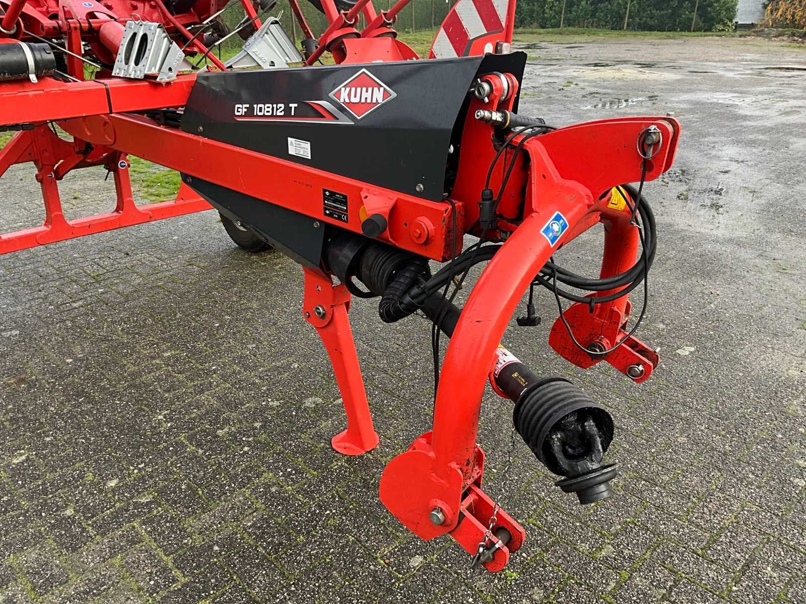 Gedragen uitvoerin; Portaalbok; Tandbeveiliging; Hydr.opklapbaar; Naloop-inrichting; Hydr.schudhoek-verstelling; 10 elementen met elk 6; tandarmen; Hydraulische kopakkerlift; Hydraulische schuinstelling; Antiwikkelkappen; Verlichting met borden Nee Merk: Kuhn Type: GF 10812 T Bouwjaar: 2018 Serienummer: A0092 Eigen gewicht: 2080kg Werkbreedte: 10800mm