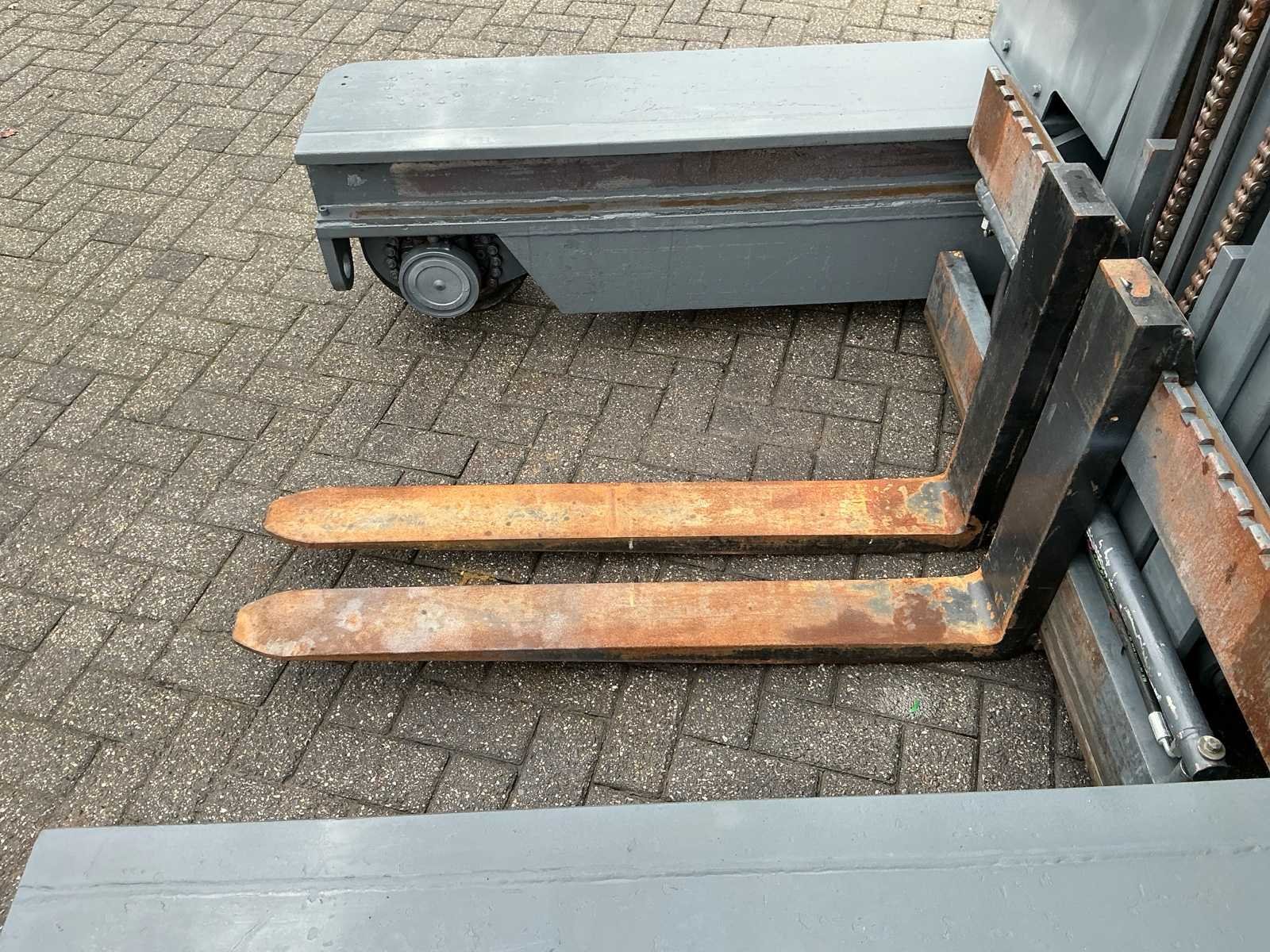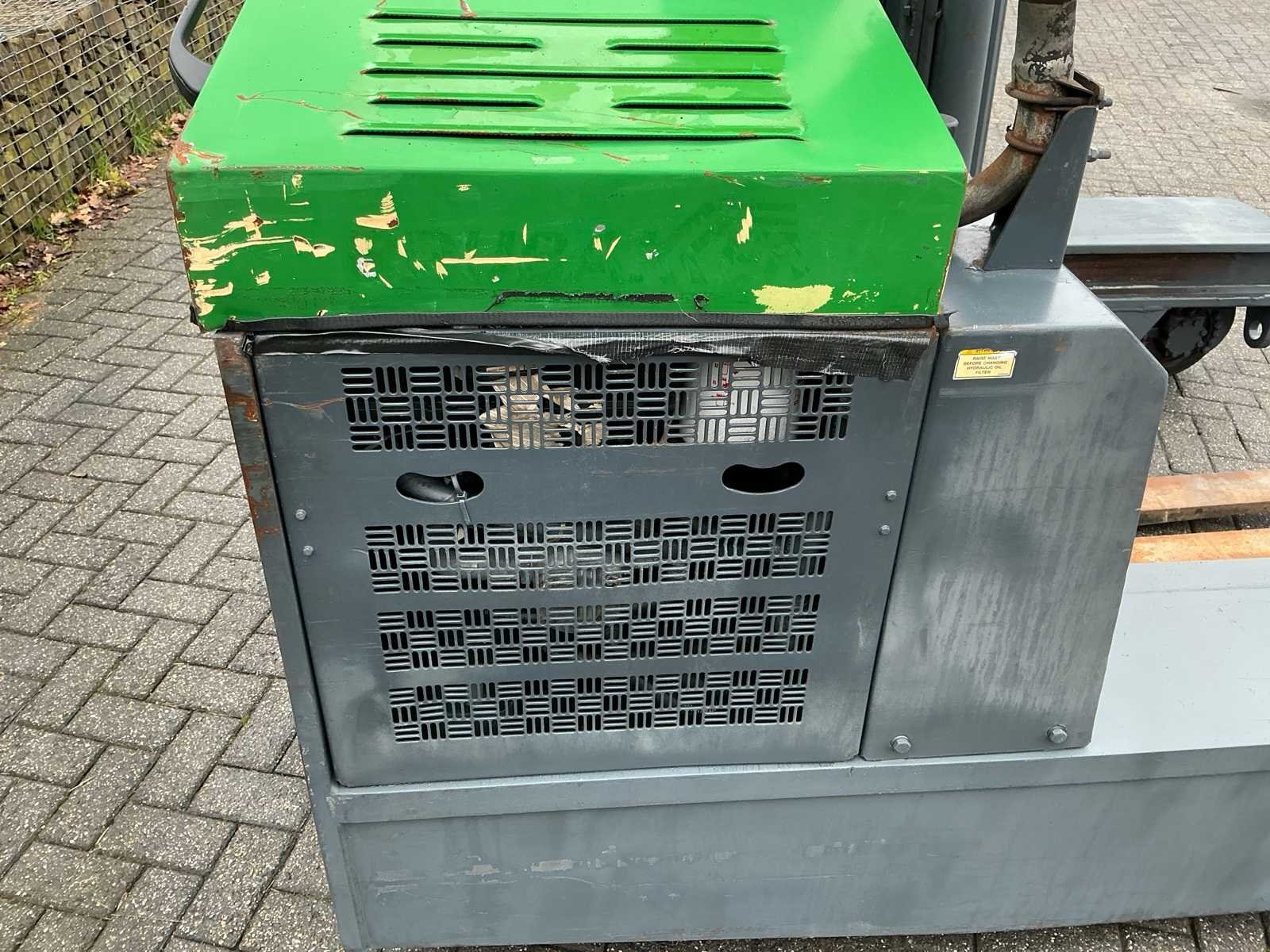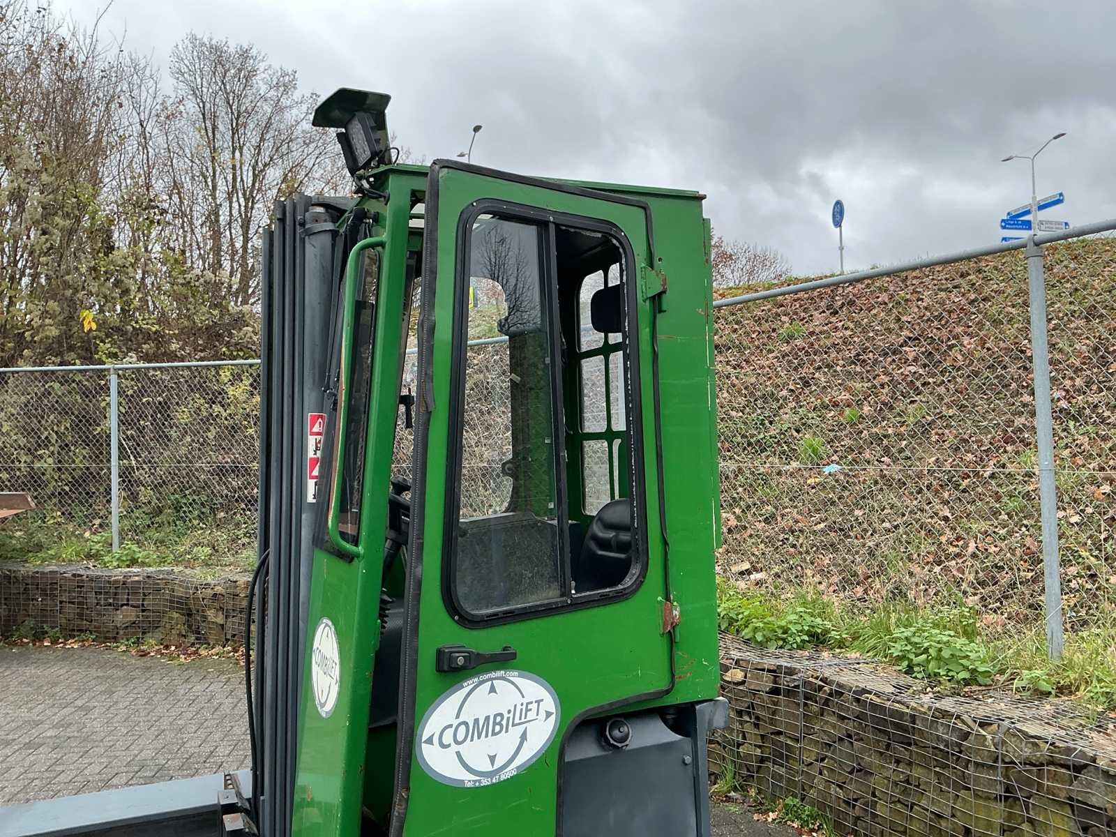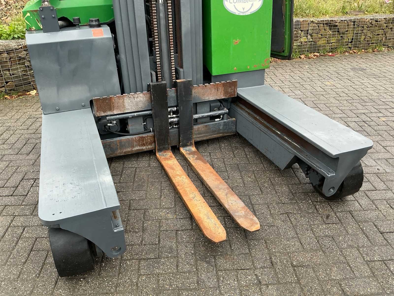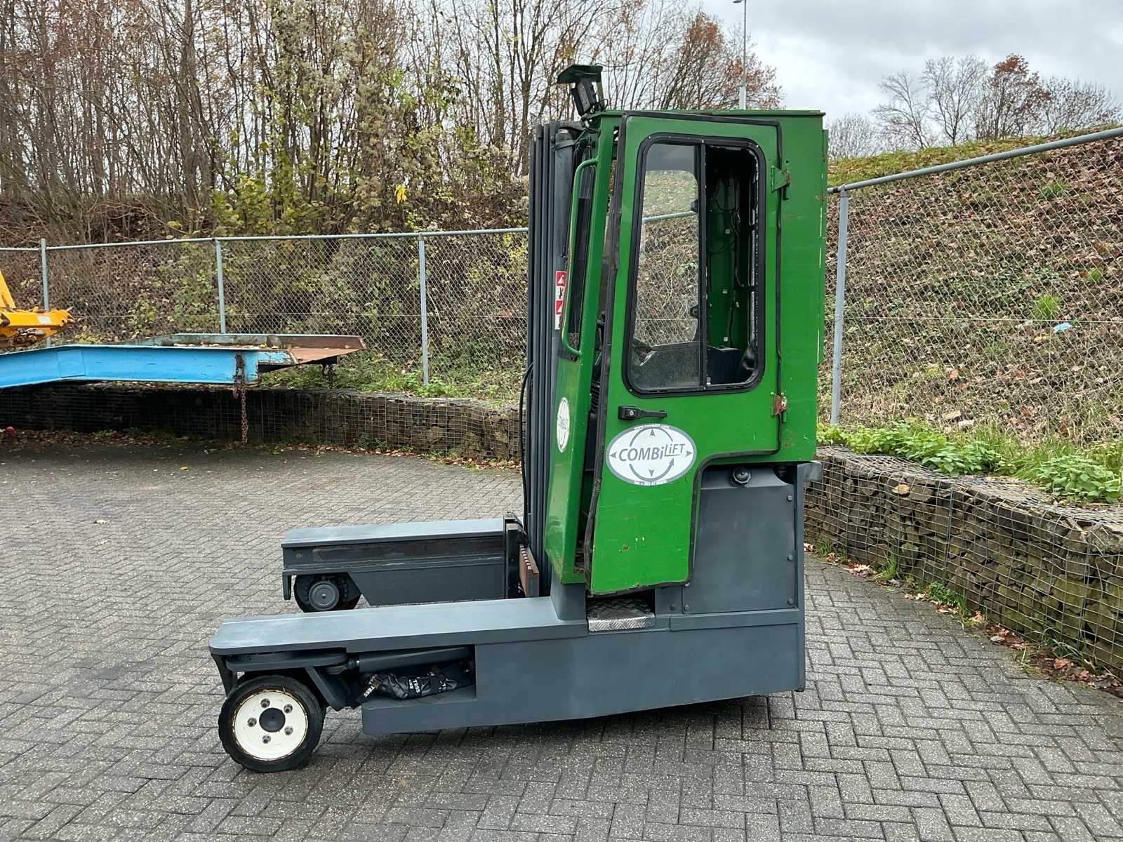 Voorzien van: cabine met rubberbevestiging, multidirectionele bediening, hydrostatische aandrijving op 3 wielen, stuurinrichting met lastdetectie, 4-weg hendel voor wielpositionering, hydraulische oliekoeler, hefhoogte 4040 mm, max. (mast geheven) 4760 mm, kubota V1505-T diesel 32kW. No Merk: Combilift Type: C3000 Bouwjaar: 2007 Serienummer: 8600 Diesel: true Hefvermogen: 3000kg Hefhoogte: 4000mm Lepellengte: 1150mm Afgelezen urenstand: 2369 Eigen gewicht: 4900kg Totale afmeting L: 2250mm Totale afmeting Breedte: 1930mm Totale afmeting Hoogte: 2655mm