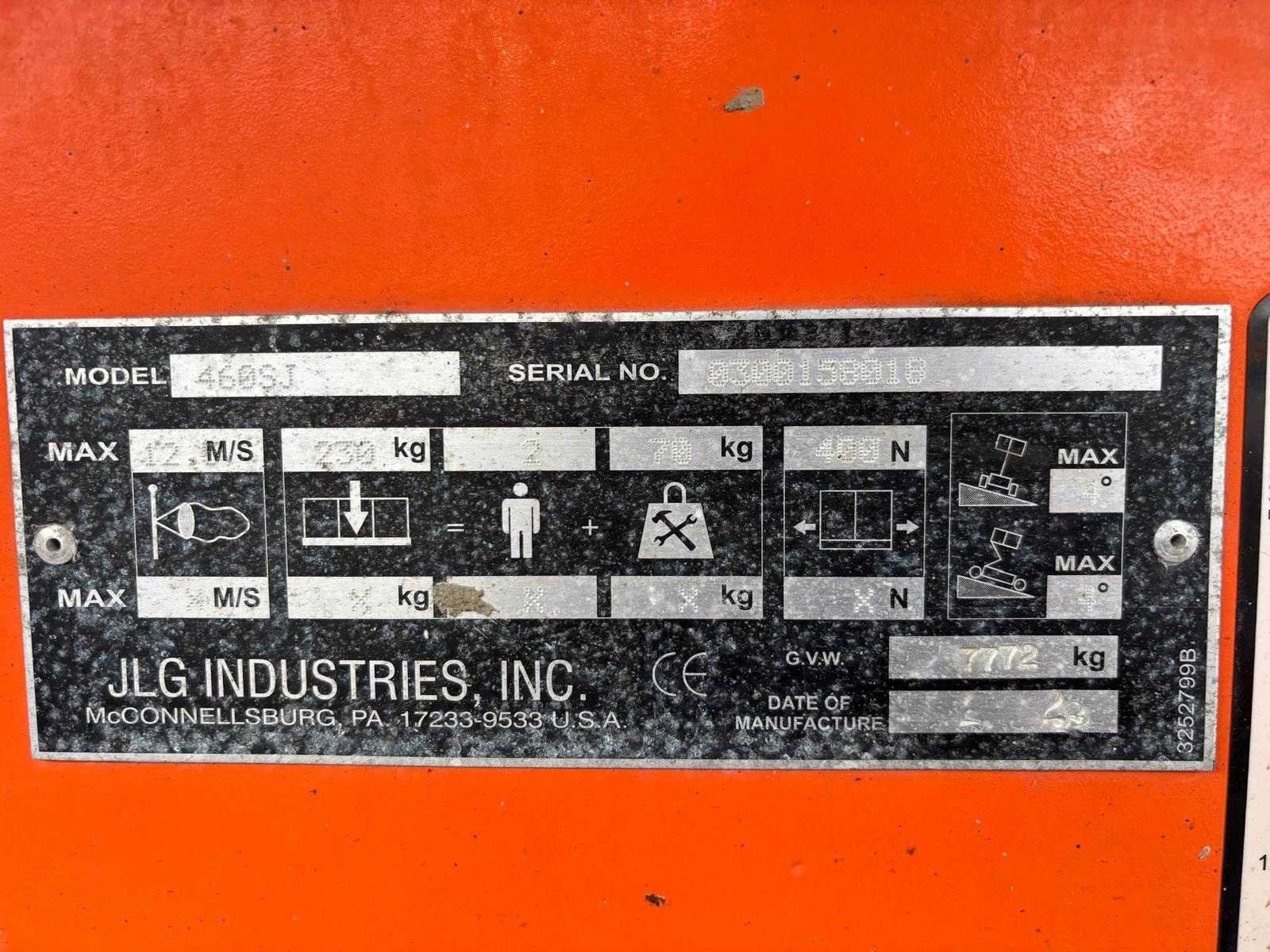 Aandrijving 4x4 * Nee Merk: LJG Type: 460SJ Bouwjaar: 2012 Serienummer: 0300158018 Diesel: true Telescoop hoogwerker: true Werkhoogte: 16090mm Horizontale rijkwijdte: 12400mm Plateau afm. l: 1830mm Plateau afm. b: 760mm Platform capaciteit: 250kg Afgelezen urenstand: 2869 Eigen gewicht: 7960kg Totale afmeting L: 8910mm Totale afmeting Breedte: 2740mm Totale afmeting Hoogte: 2310mm Leveringsvoorwaarden: Niet gefundeerd - onverpakt
