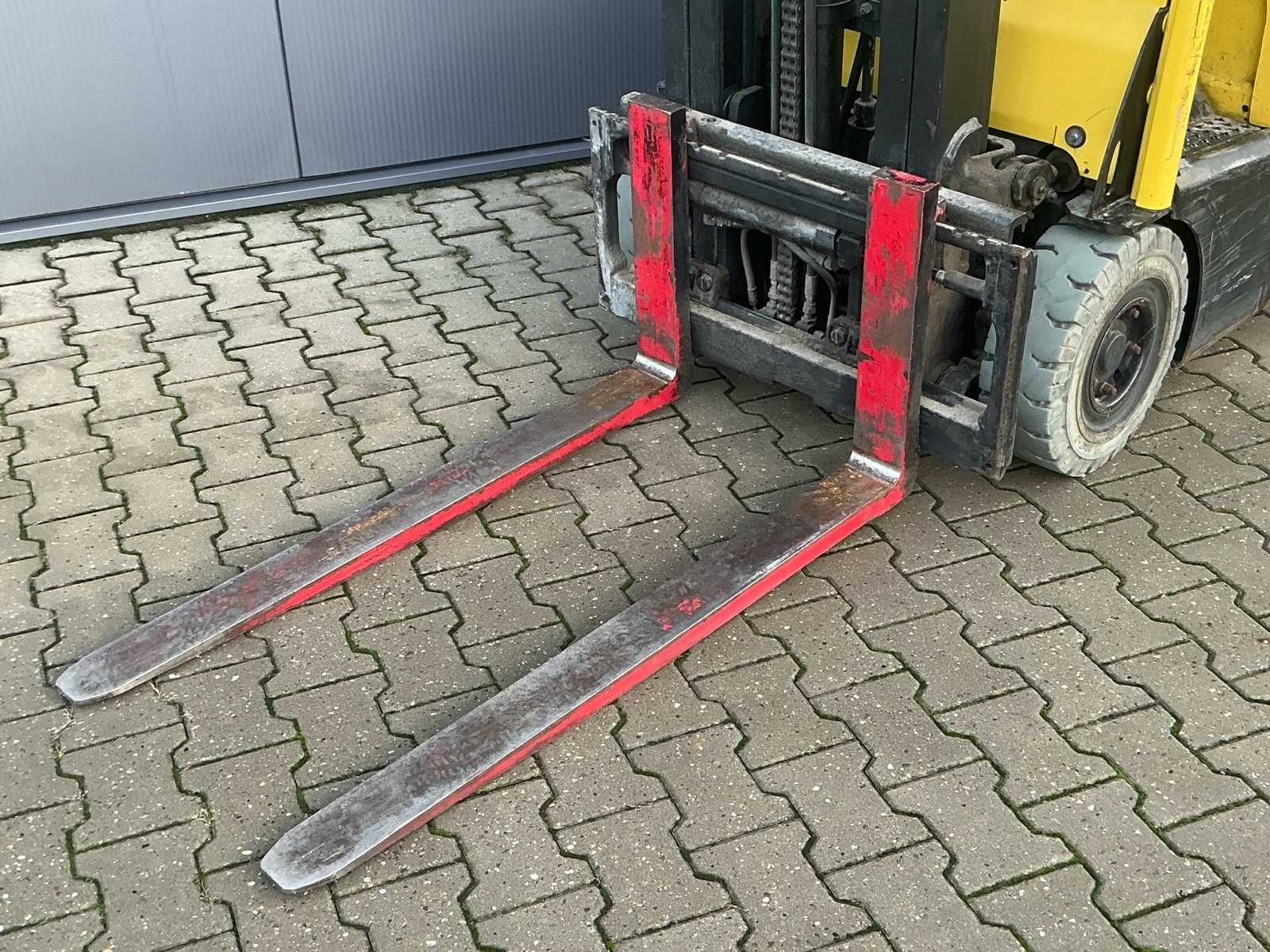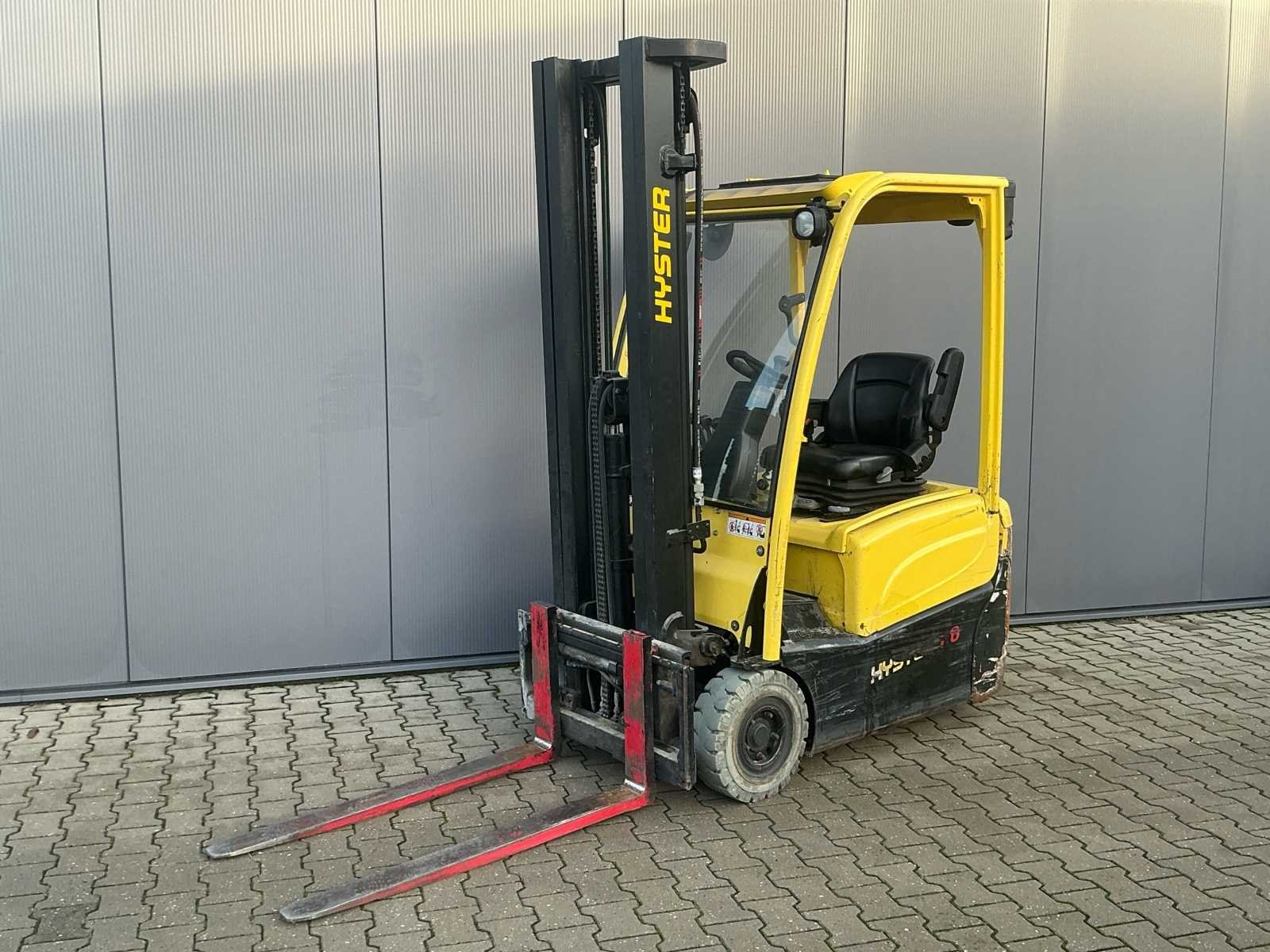 2 deuren aanwezig. Nee Merk: Hyster Type: J1.6XNT SWB Bouwjaar: 2012 Brandstof: Elektrisch Mast: Triple Soort band: Massief Aantal wielen: 4 Accu lader: true Free-lift: true Side-shift: true Triple mast: true Eigen gewicht: 3410kg Hefvermogen: 1500kg Lepellengte: 1200mm Hefhoogte: 4900mm Vol rubber banden: true Totale afmeting L: 3000mm Totale afmeting Breedte: 1060mm Totale afmeting Hoogte: 2420mm