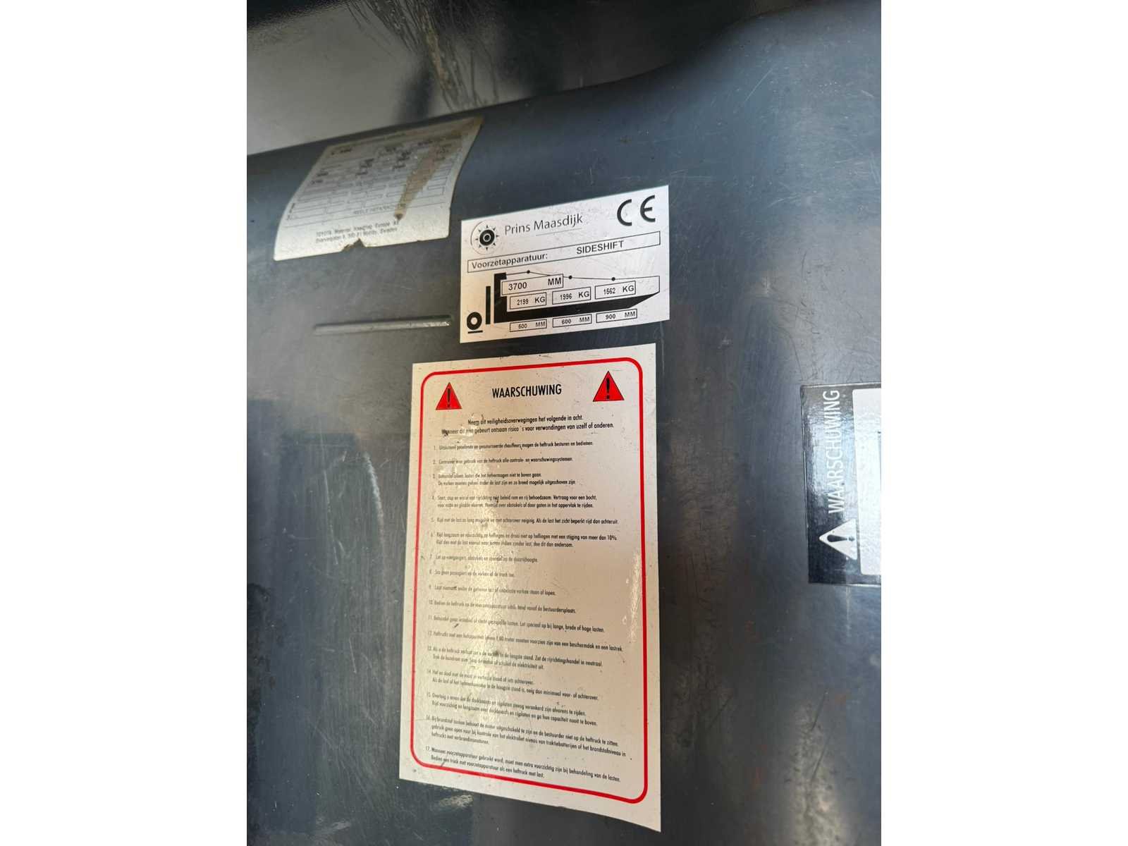 Voorzien van: Acculader, side-shift, accumulator (t.b.v. demping te tillen gewicht), werkverlichting voorzijde, Autofill systeem. Extra valbeveiliging op dak kan gedemonteerd worden. In 2024 nieuwe accu geplaatst, waarvan het testrapport aanwezig is. Nee Merk: Toyota Type: 8FBMT25 Bouwjaar: 2013 Serienummer: 8FBMT25-10050 Brandstof: Elektrisch Mast: Duplex Soort band: Volrubber banden Aantal wielen: 4 Afgelezen urenstand: 2567 Accu lader: true Side-shift: true Duplex mast: true Eigen gewicht: 5103kg Hefvermogen: 2500kg Lepellengte: 1000mm Max. hefhoogte: 3700mm Hefhoogte: 3700mm Vol rubber banden: true Minimale doorrijhoogte: 2620mm Totale afmeting L: 3500mm Totale afmeting Breedte: 1200mm Totale afmeting Hoogte: 2620mm