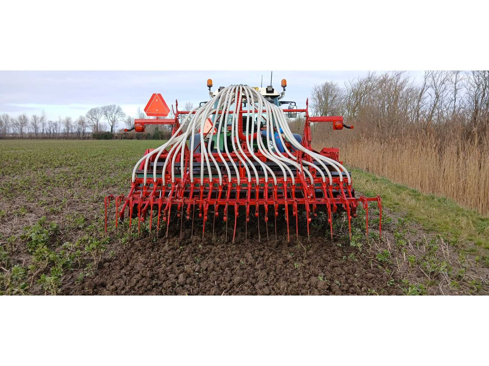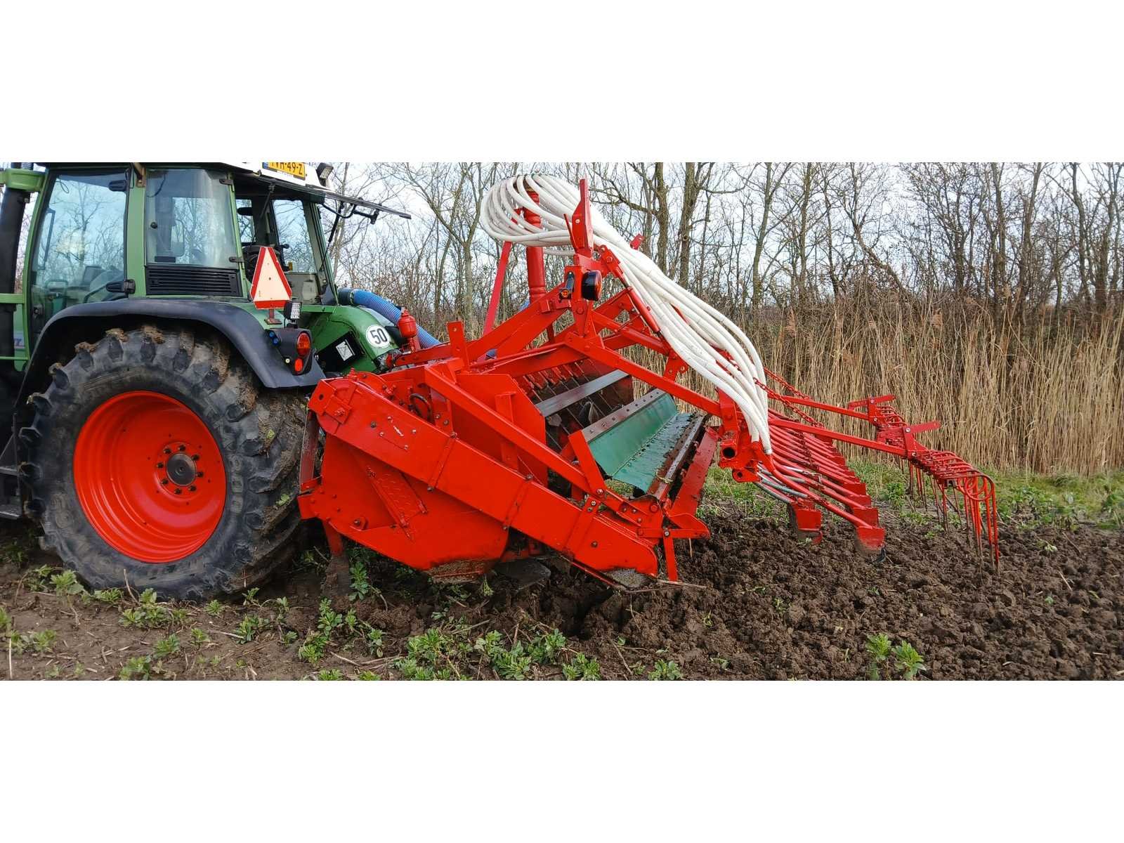 Voorzien van: hydraulisch verstelbare freesas, zware klei uitvoering met schrapers, pneumatische zaaimachine van Kverneland, 24 zaaipijpen met zaageg, rijverlichting Nee Merk: Farmax Type: LRP300 Werkbreedte: 3200mm Totale afmeting Breedte: 3300mm Totale afmeting Hoogte: 2450mm