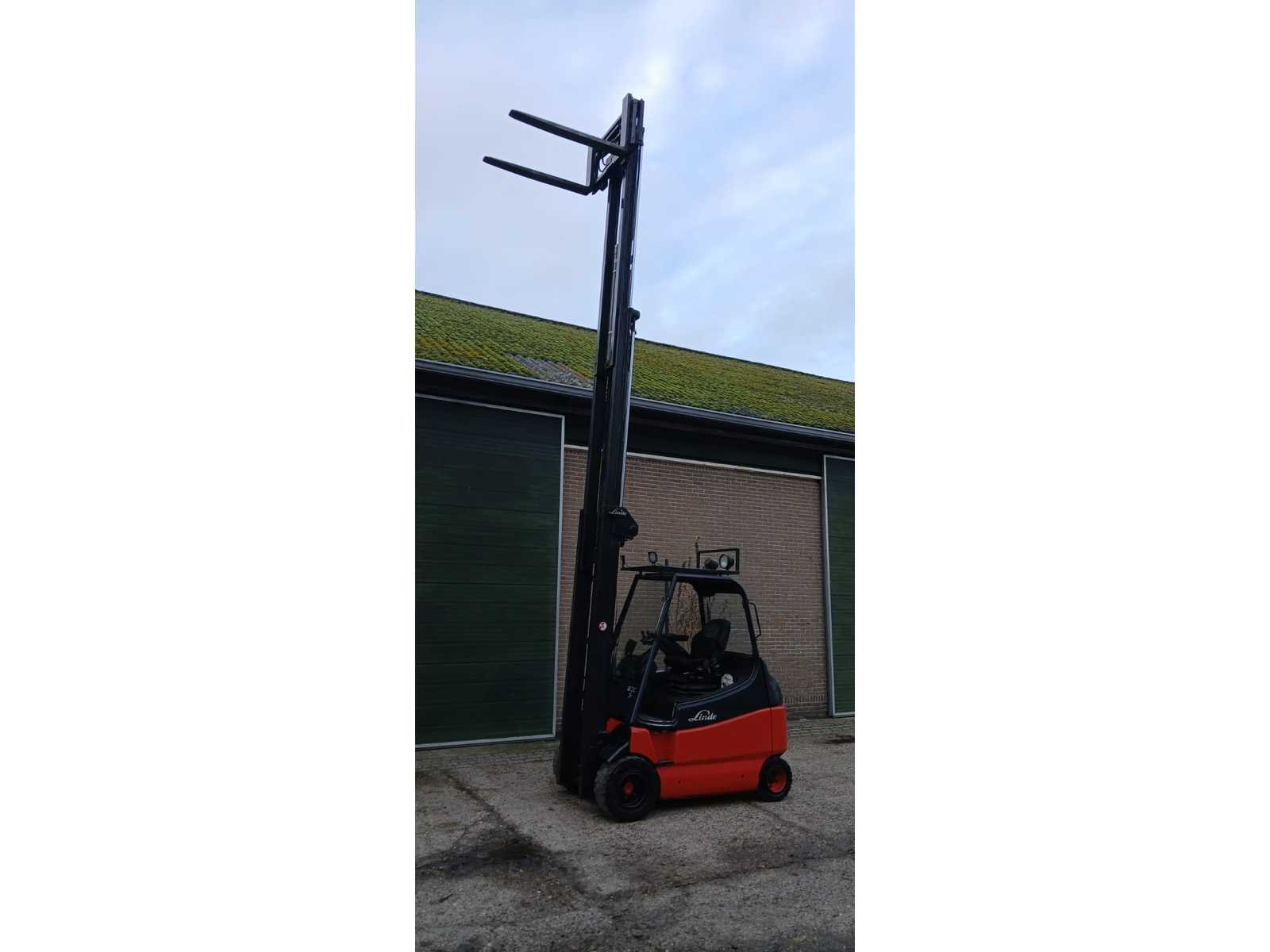 Voorzien van: triplo mast, werkverlichting, sideshift en acculader Nee Merk: Linde Type: E30 Bouwjaar: 2006 Serienummer: G1X336T50398 Brandstof: Elektrisch Soort band: Volrubber banden Aantal wielen: 4 Accu lader: true Free-lift: true Side-shift: true Triple mast: true Eigen gewicht: 4925kg Hefvermogen: 3000kg Lepellengte: 1000mm Hefhoogte: 6500mm Vol rubber banden: true Totale afmeting Breedte: 1170mm