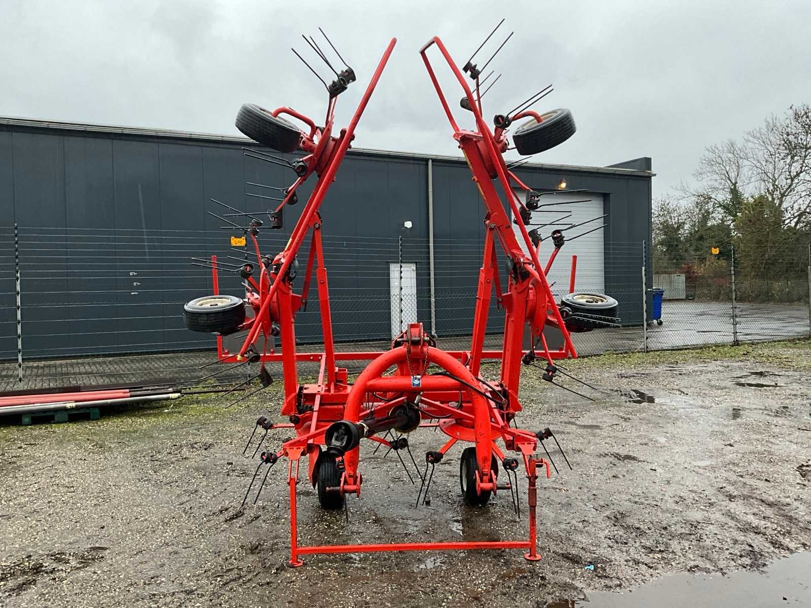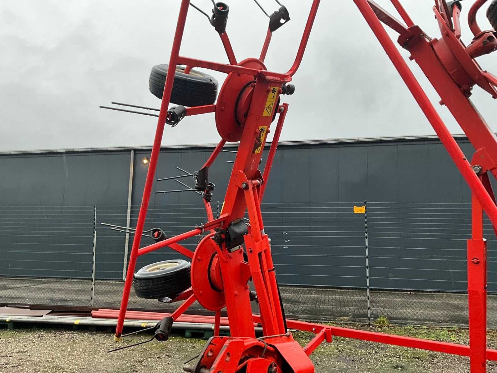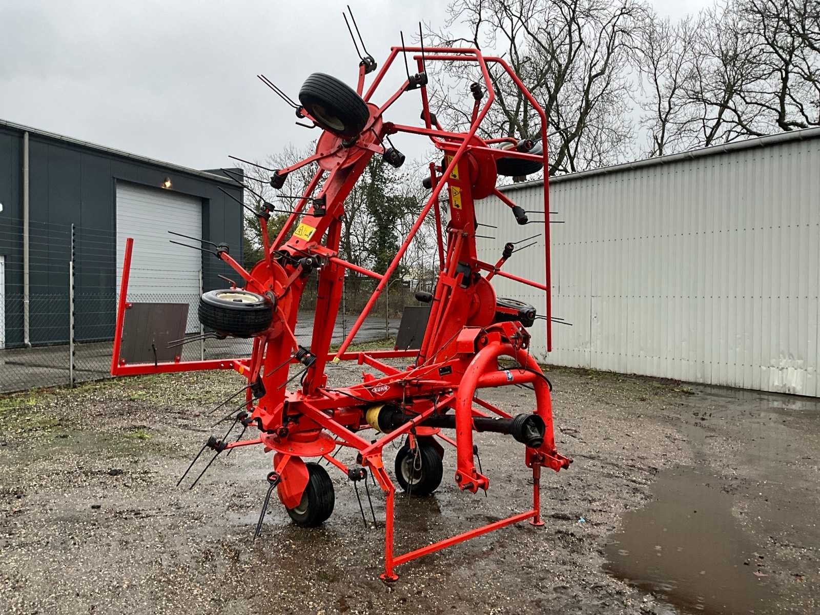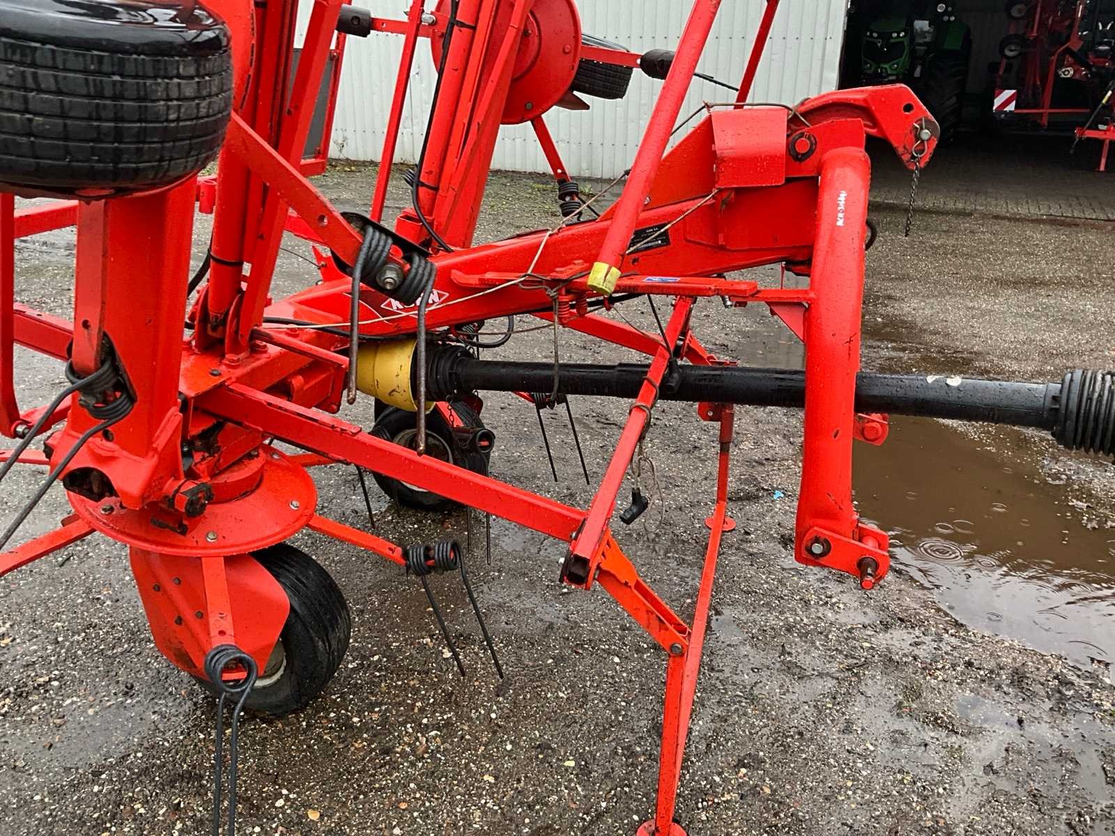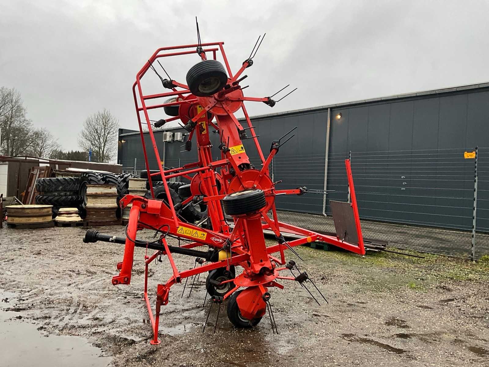 Gedragen uitvoering; Portaalbok; Hydr.opklapbaar; Naloop-inrichting; 6 elementen met elk 6 tandarmen; Mechanische schuinstelling; Verlichting met borden Nee Merk: Kuhn Type: GS 6502 Serienummer: C0406 Eigen gewicht: 890kg Werkbreedte: 6500mm