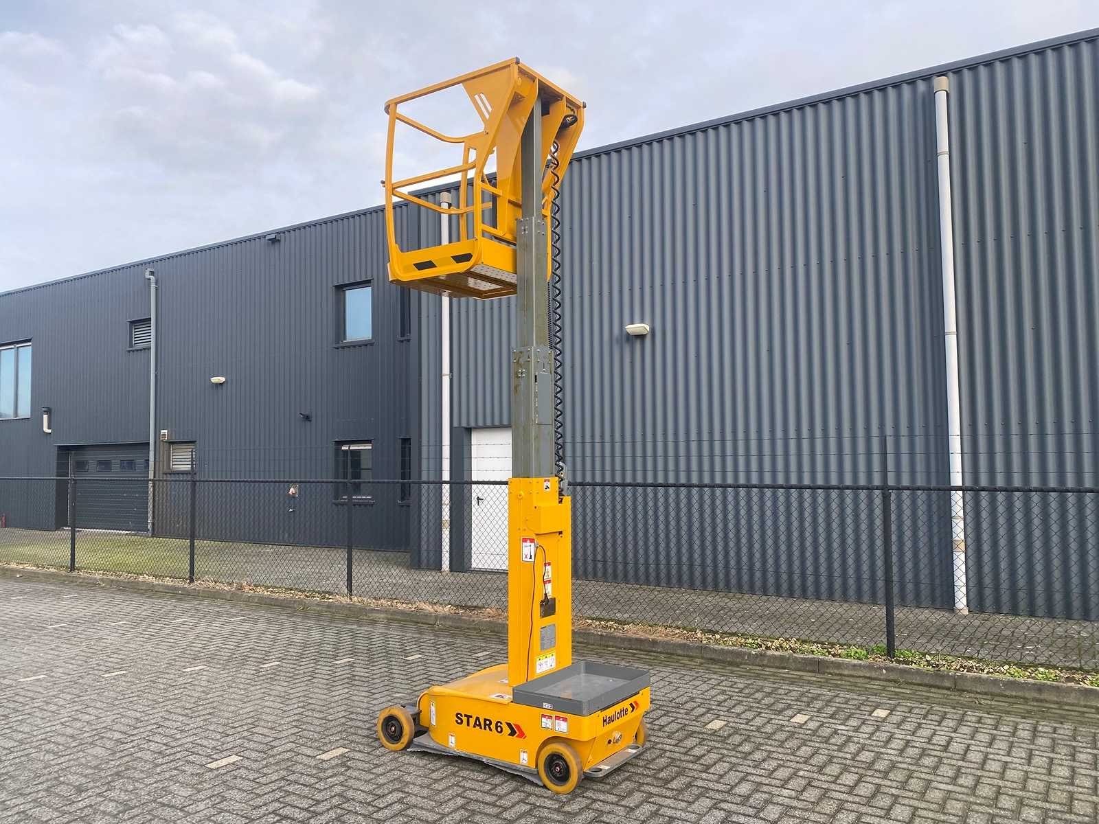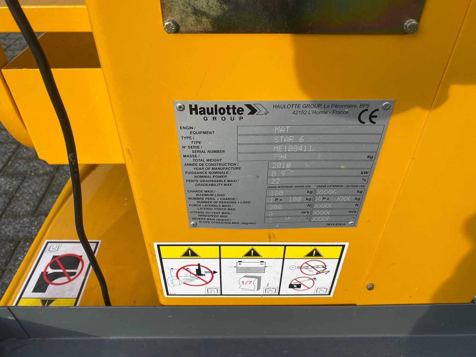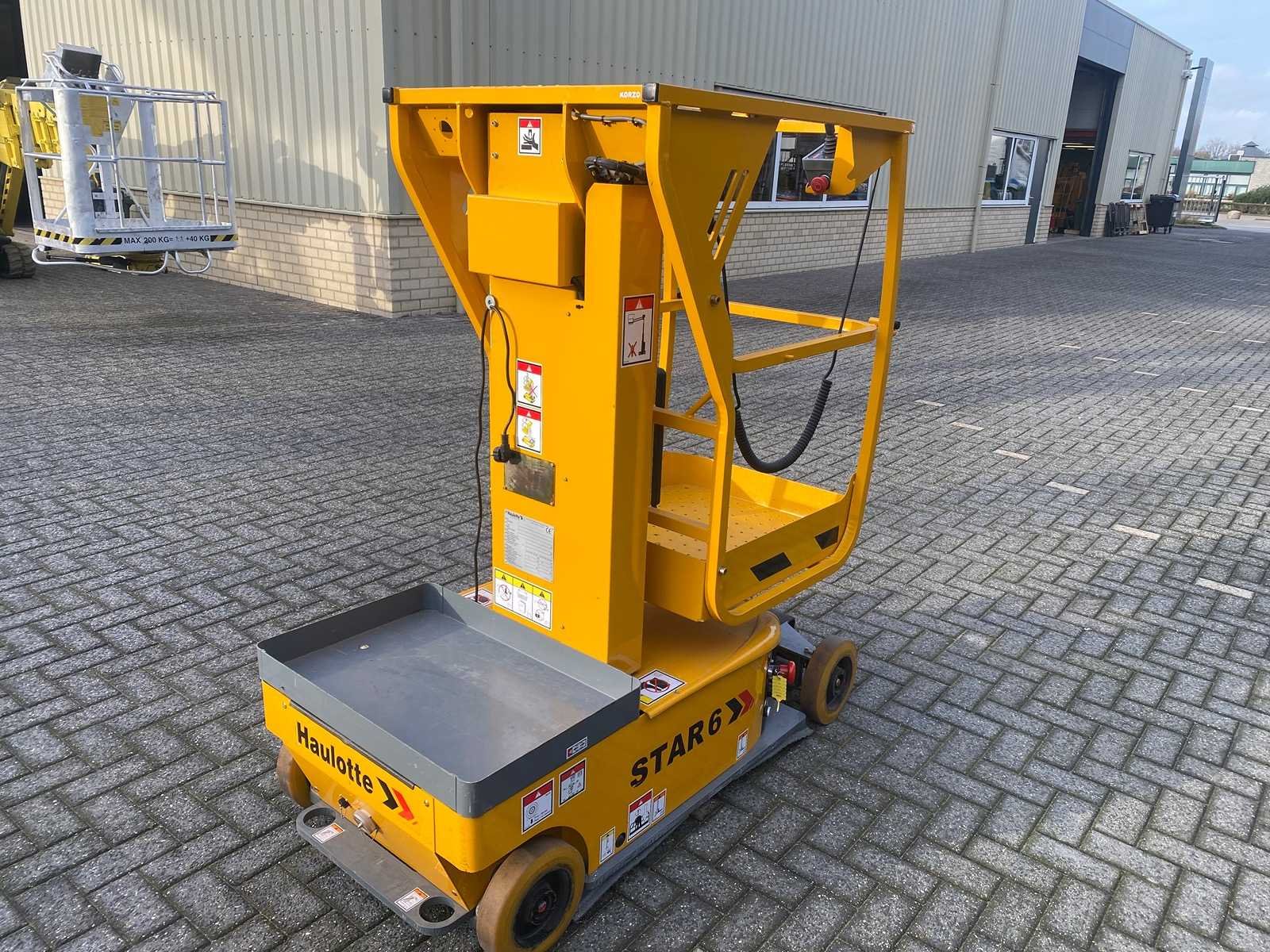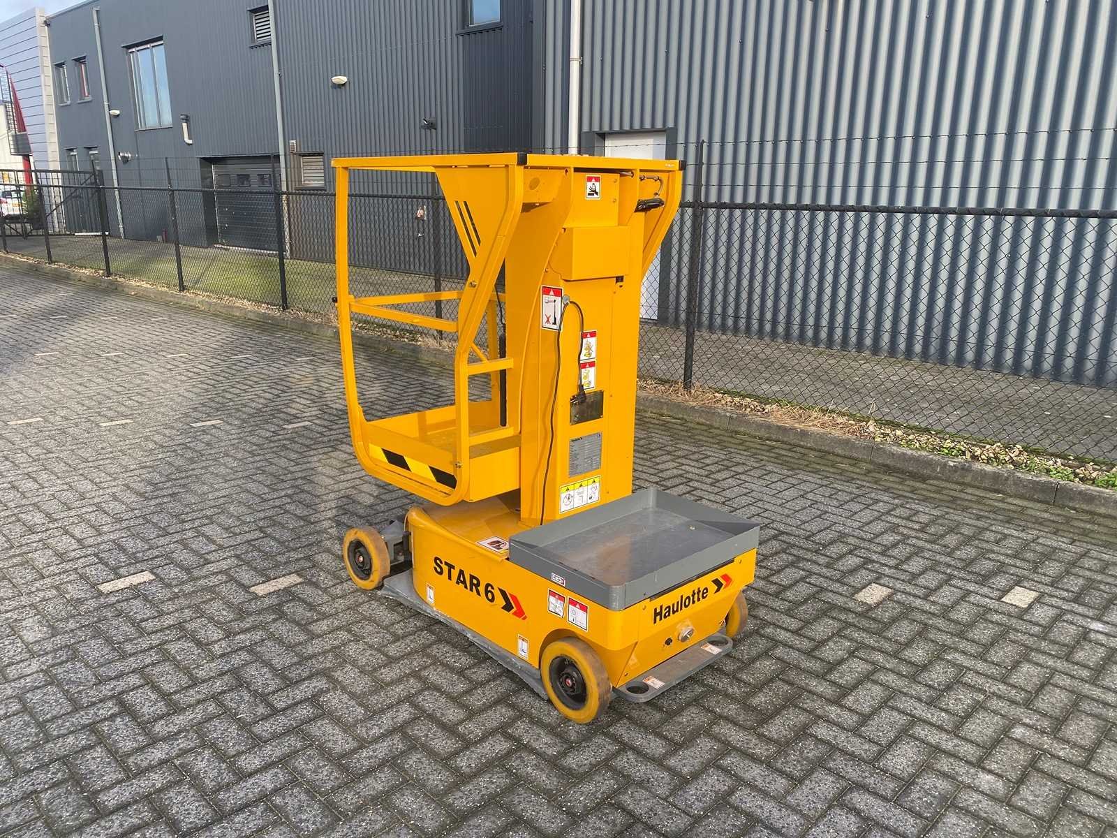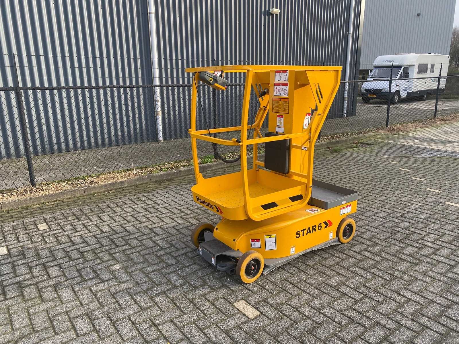 Ingebouwde acculader Nee Merk: Haulotte Type: Star 6 Bouwjaar: 2010 Serienummer: ME108411 Elektrisch: true Masthoogwerker: true Werkhoogte: 6000mm Horizontale rijkwijdte: 1000mm Plateau afm. l: 950mm Plateau afm. b: 800mm Platform capaciteit: 180kg Accu lader: true Afgelezen urenstand: 203 Eigen gewicht: 794kg Totale afmeting L: 1400mm Totale afmeting Breedte: 770mm Totale afmeting Hoogte: 1700mm