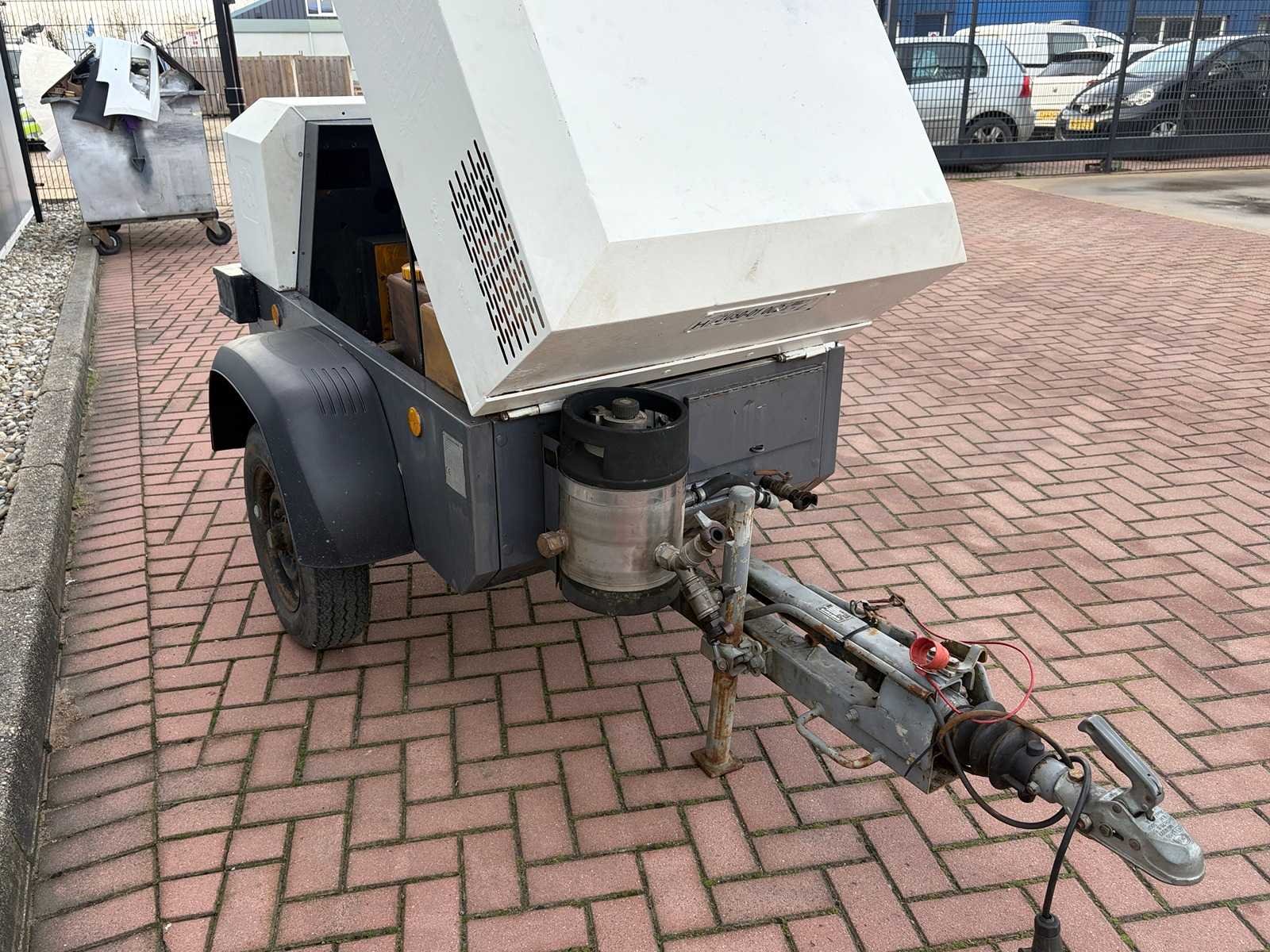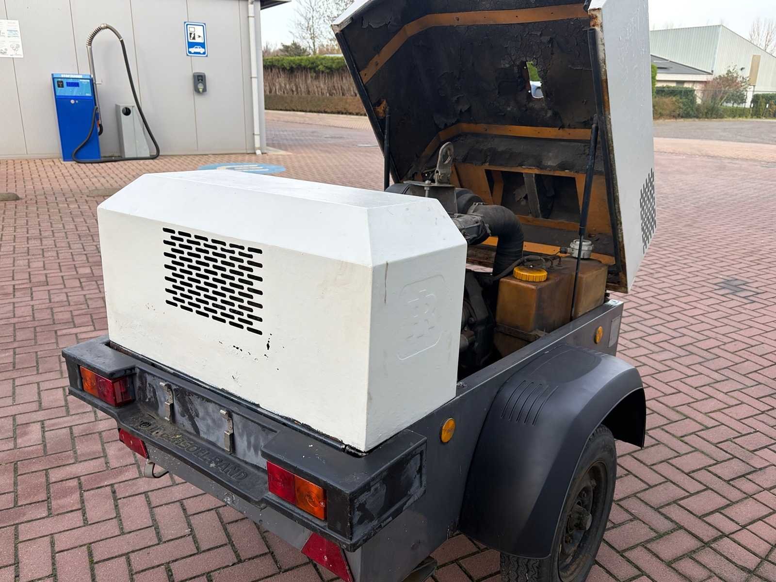 Start en loop, bouwt druk op No Merk: Ingersoll Rand Type: Mobiele Compressor Serienummer: 206461 Capaciteit.: 8.6bar Luchtstroom: 2800l/min Vermogen: 20.5kW Afgelezen urenstand: 4708 Eigen gewicht: 728kg Totale afmeting L: 3300mm Totale afmeting Breedte: 1400mm Totale afmeting Hoogte: 140mm