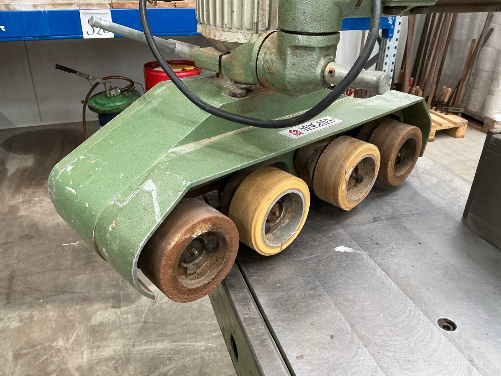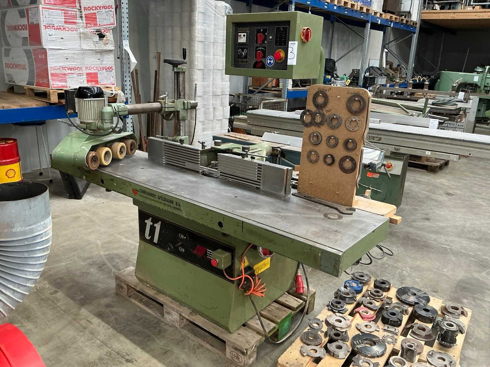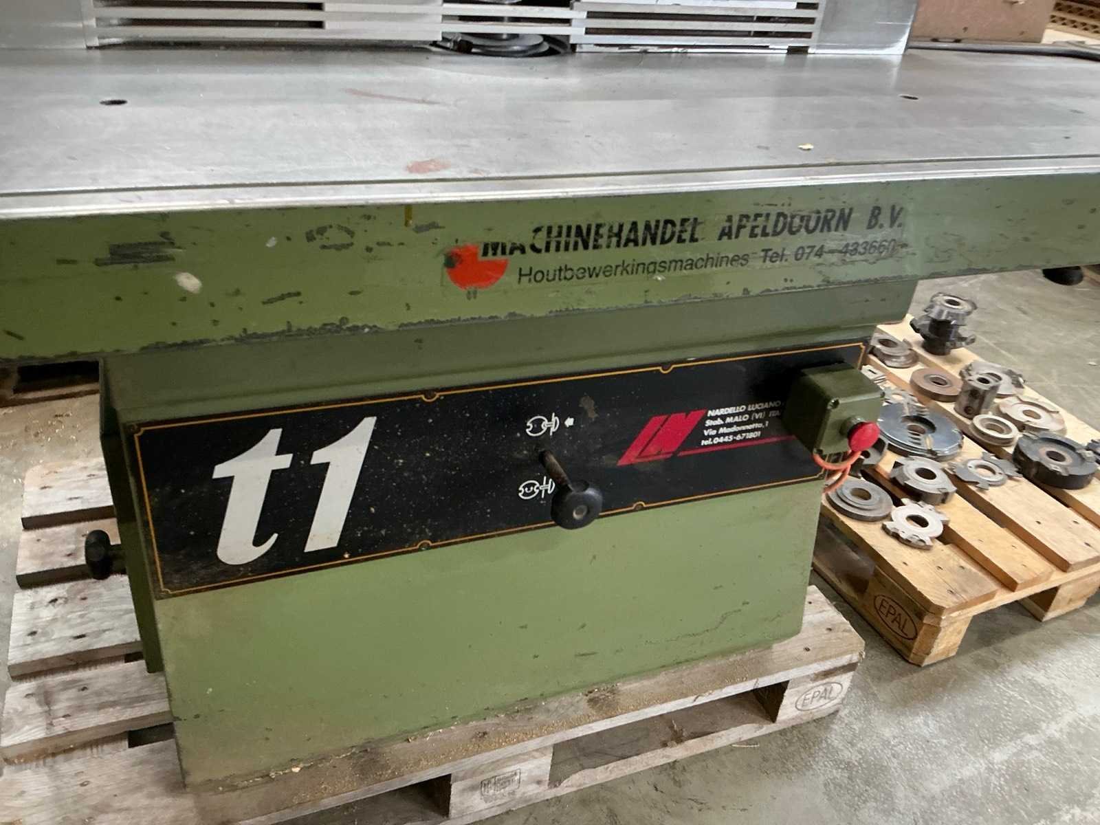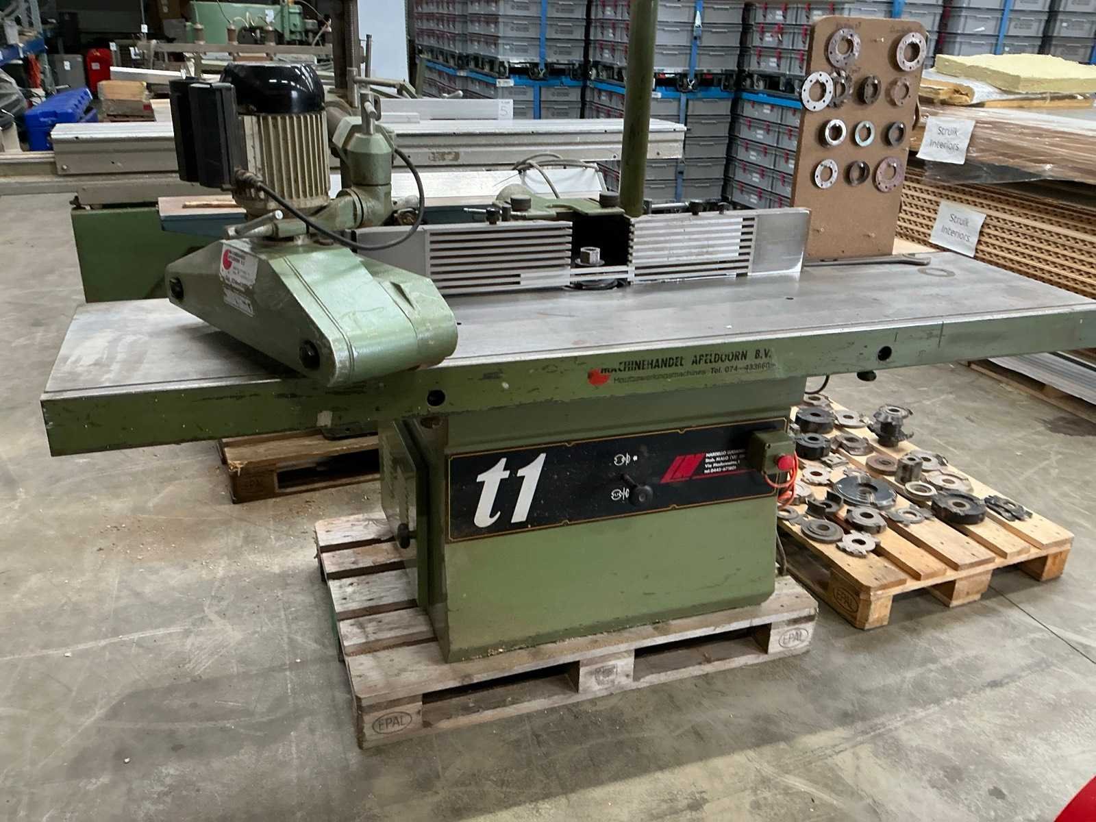 Voorzien van Magma doorloop apparaat en 1 pallet met diverse frezen en toebehoren. Nee Merk: Nardello Luciano Type: T1 P Prolungato Bouwjaar: 1990 Serienummer: 893 Spil Ø: 40mm Motorvermogen (kW): 6kW Aansluiting: 400V Afmeting l: 2200mm Afmeting b: 1160mm Afmeting h: 1900mm