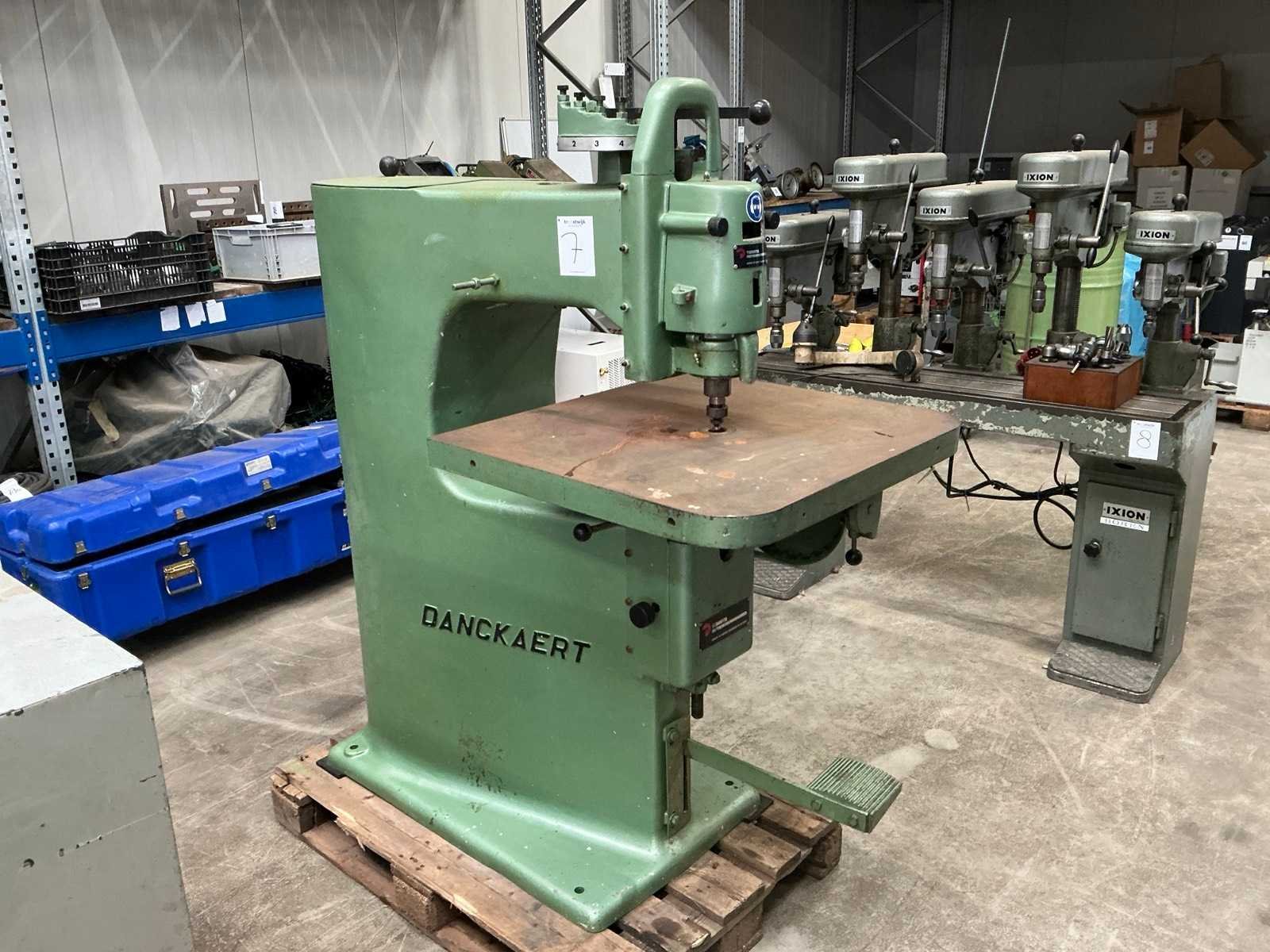 Voorzien van schuin instelbare tafel Nee Merk: Danckaert Type: E520 Serienummer: S32167 Tafel afmeting l: 750mm Tafel afmeting b: 700mm Aansluiting: 400V Afmeting l: 1450mm Afmeting b: 830mm Afmeting h: 1600mm