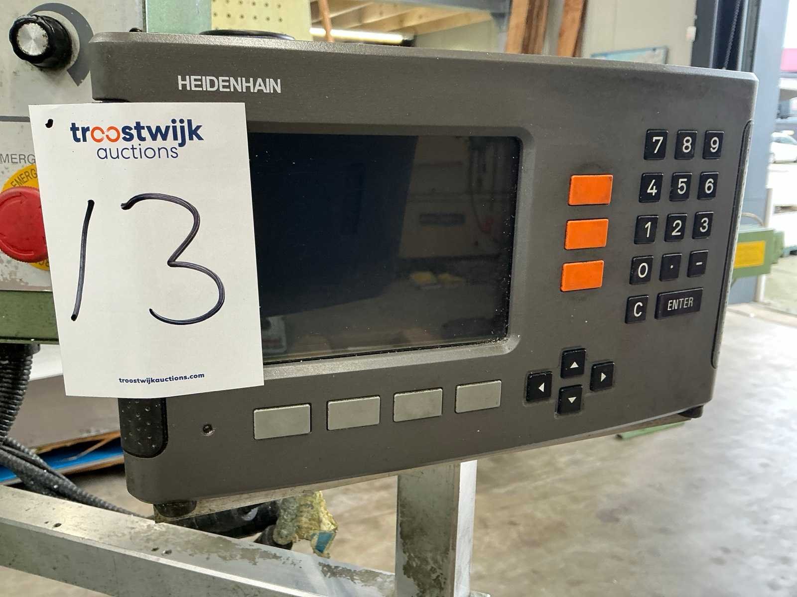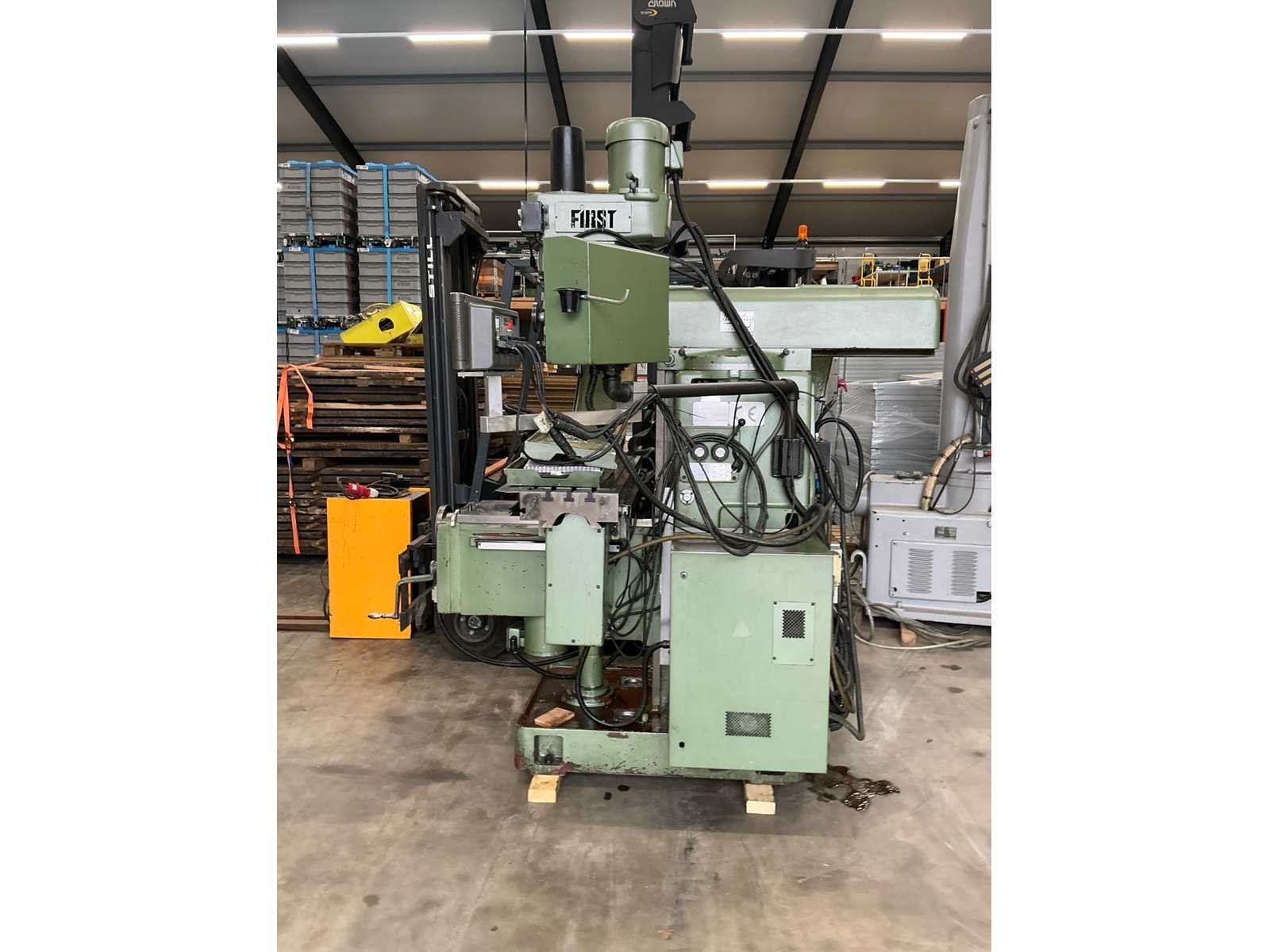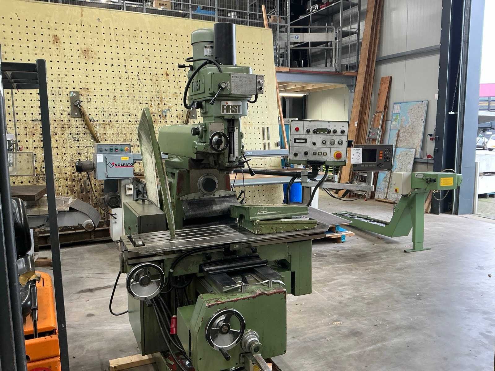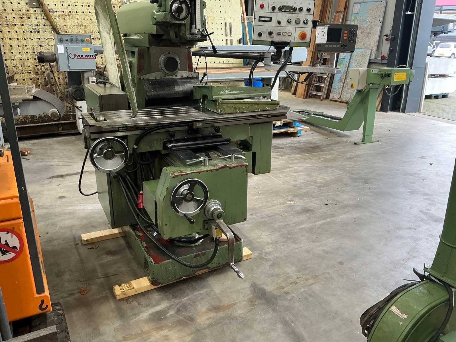Voorzien van Heidenhain digitale X-Y-Z uitlezing Nee Merk: Huvema Type: First LC 205VHD Serienummer: 70700179 Aantal snelheden: 30 Snelheid van n =: 60rpm Snelheid tot n =: 2500rpm T-gleuf opspantafelafmeting L: 1300mm T-gleuf opspantafelafmeting B: 300mm Aansluiting: 400V Afmeting l: 1500mm Afmeting b: 2400mm Afmeting h: 2600mm