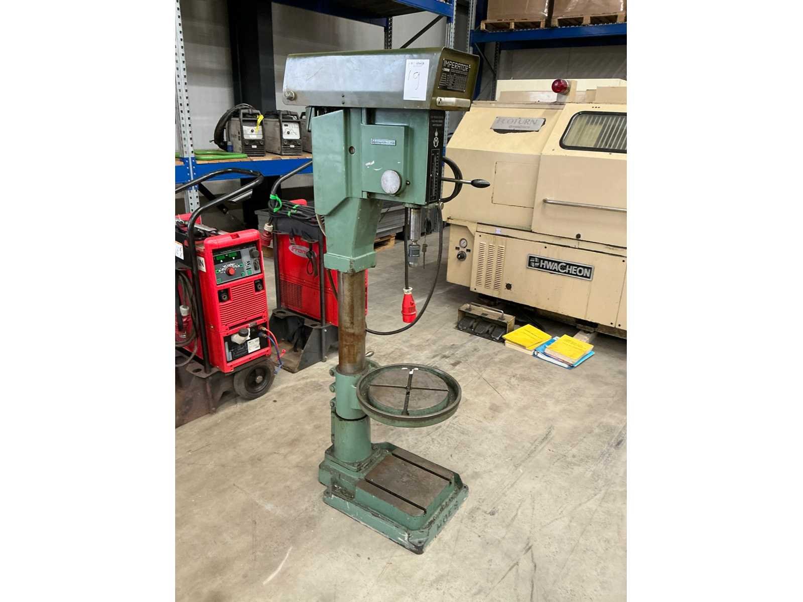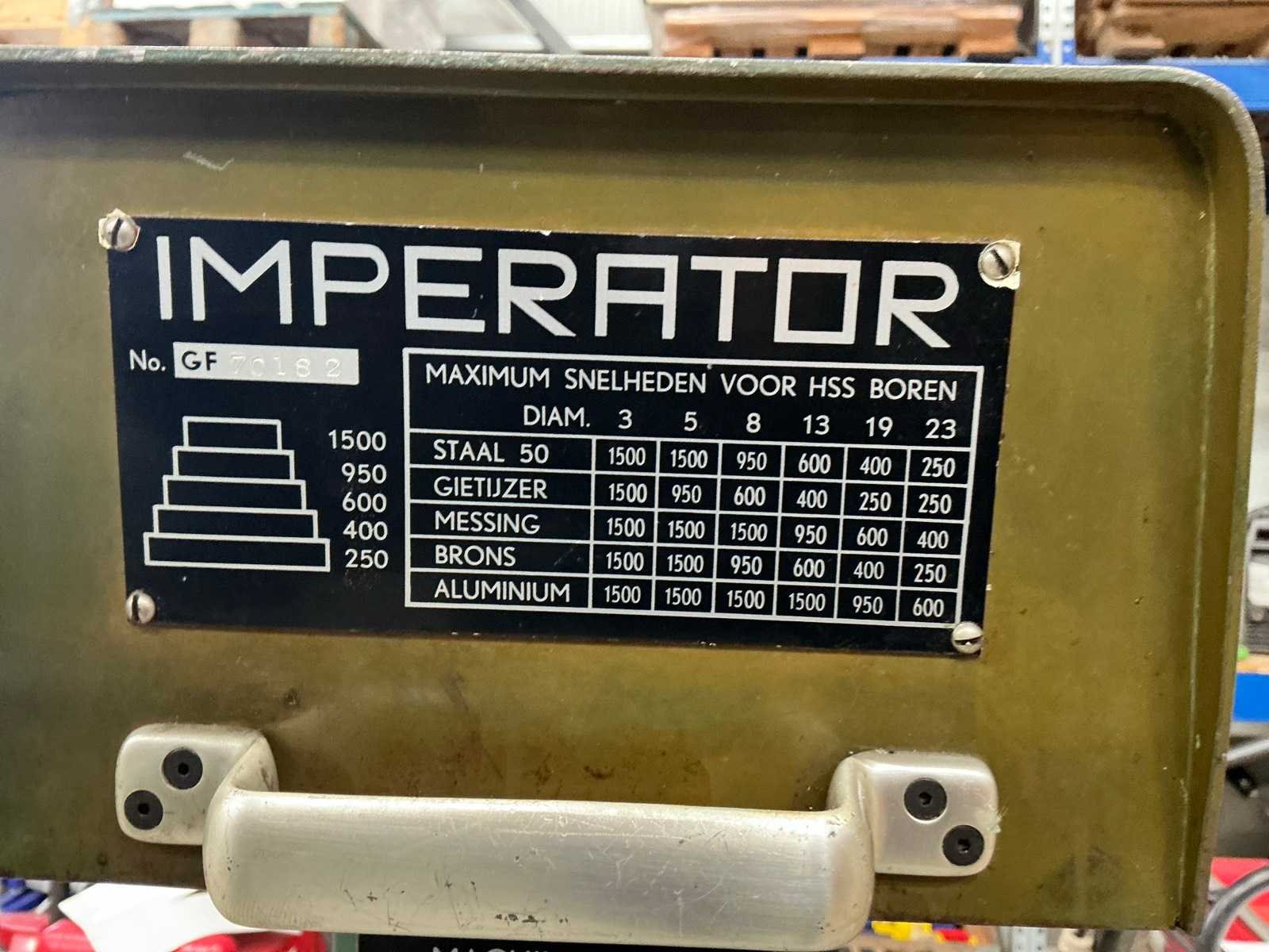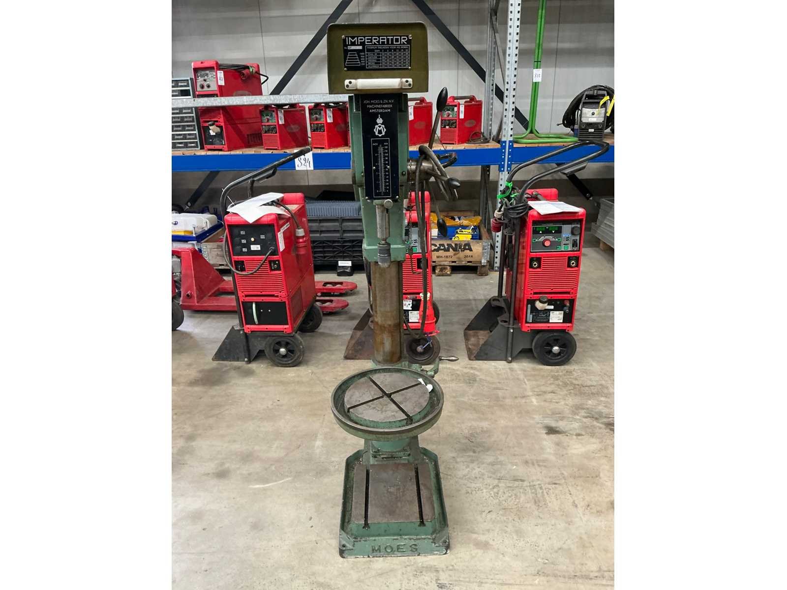 No Merk: Moes Type: Imperator Serienummer: GF70102 Aantal snelheden: 5 Spindelsnelheid van n =: 250rpm Spindelsnelheid tot n =: 1500rpm Boordiepte: 120mm Uitlading: 230mm Tafel afmeting l: 310mm Tafel afmeting b: 310mm Aansluiting: 400V Afmeting l: 800mm Afmeting b: 500mm Afmeting h: 1850mm