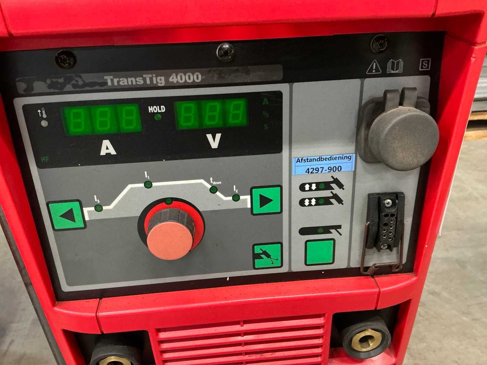 Voorzien van ondergebouwde Fronius FK4000 waterkoeling, Zonder lastoorts/kabels Nee Merk: Fronius Type: Transtig 4000 G/F Aansluiting: 400V Afmeting l: 700mm Afmeting b: 630mm Afmeting h: 1330mm