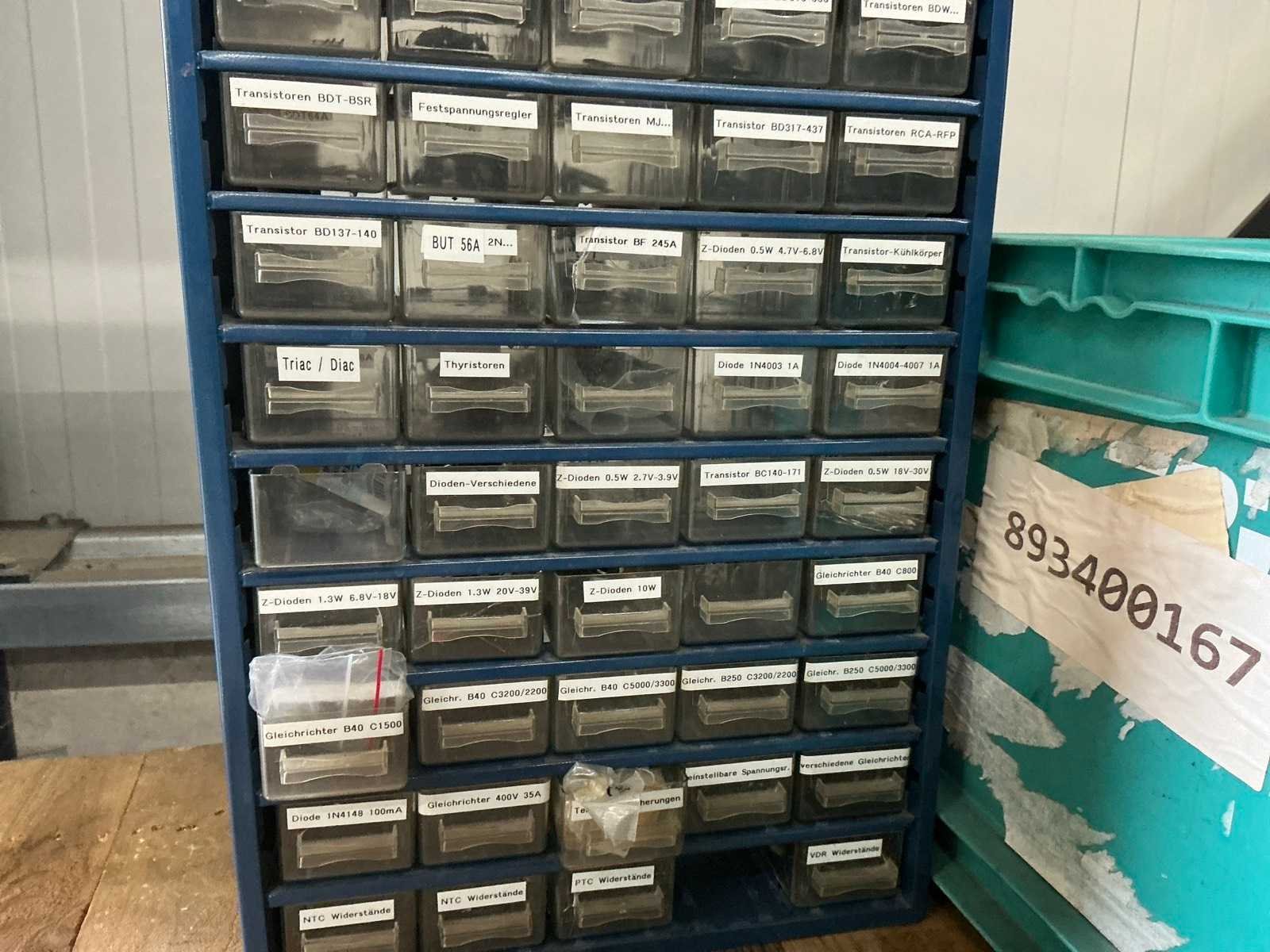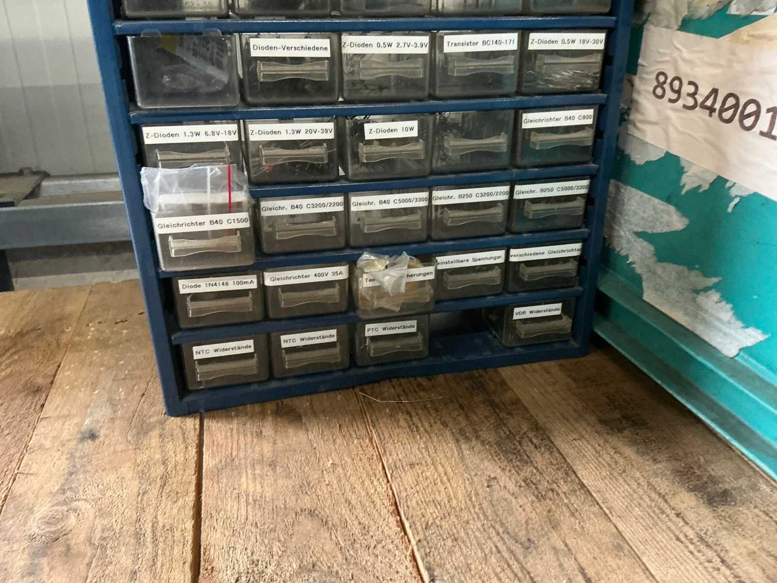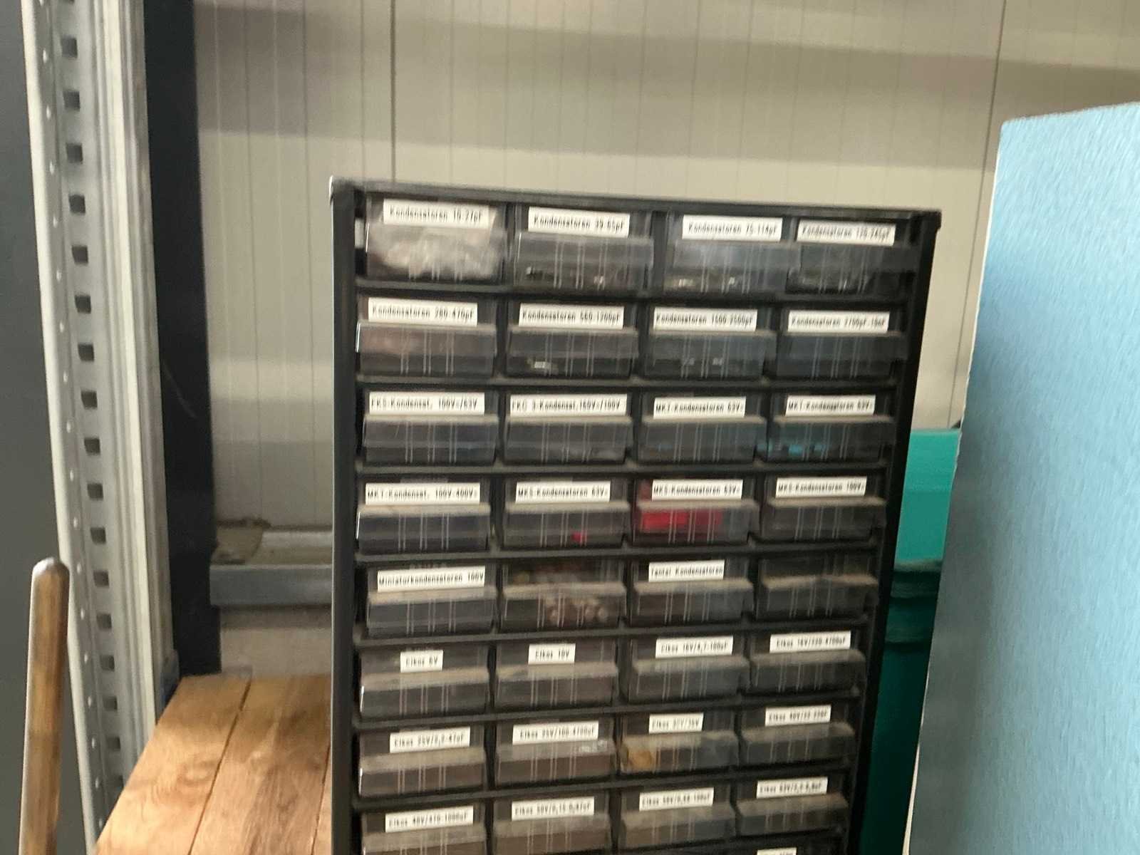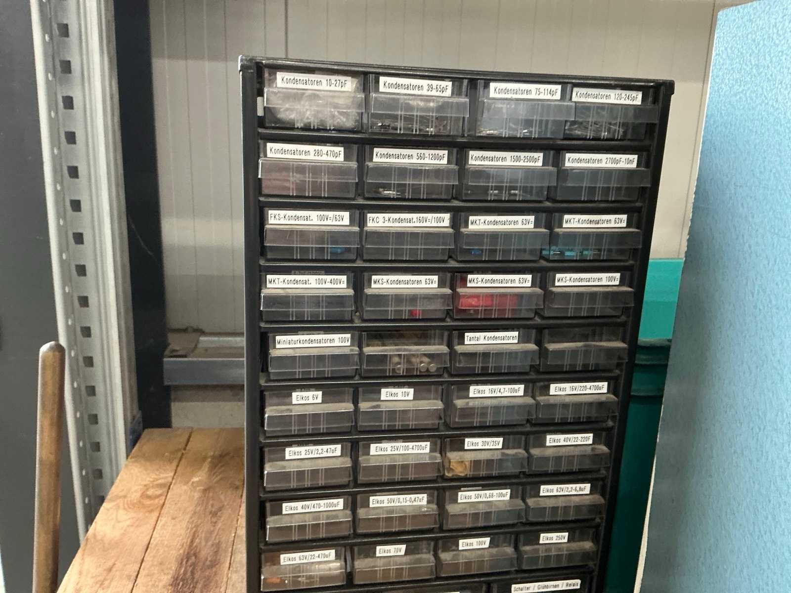Inhoud bestaande uit onder andere condensatoren, weerstanden, transistoren, diodes, etcetera Nee
